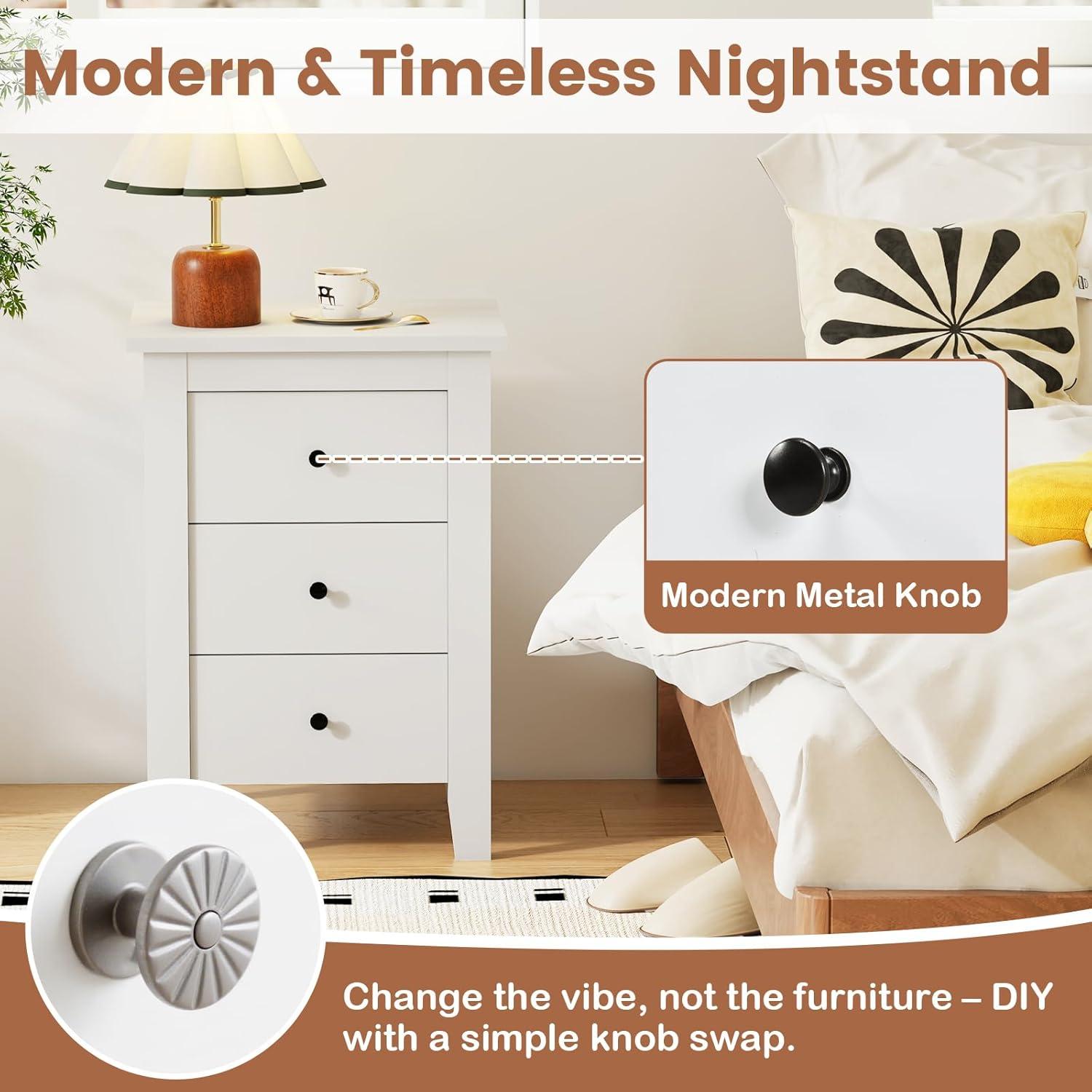 Single-Hole Design for Easy DIY: The wooden night stand comes with sleek single-hole metal handles which can be easily replaced with ceramic, brass, or vintage knobs. They not only add a modern touch to your furniture, but also offer a budget-friendly yet effective way to personalize your own room style