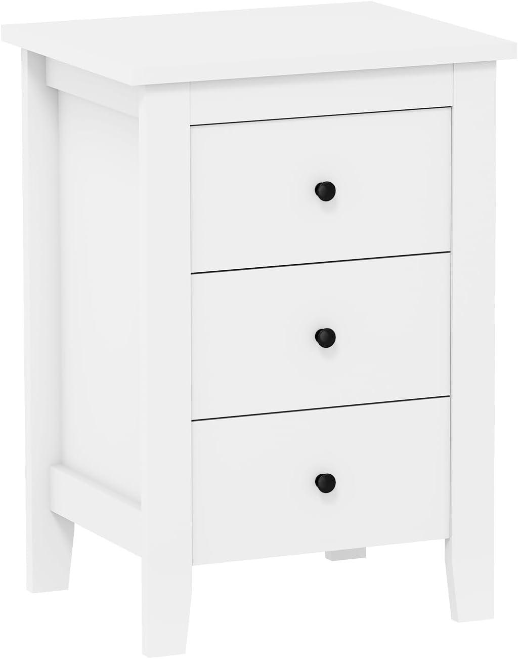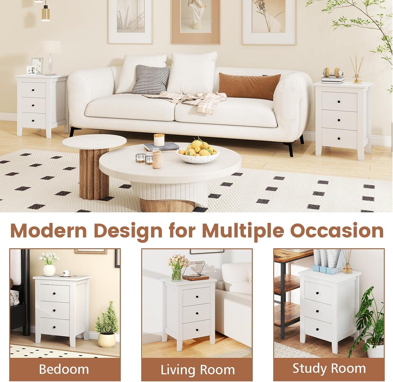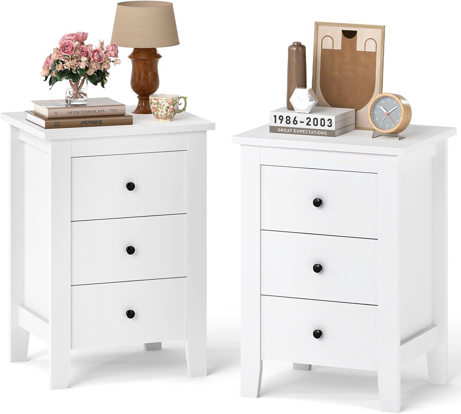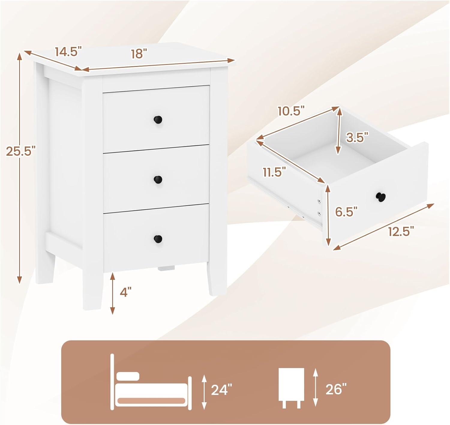 Giantex Nightstands Set of 2 with 3 Drawers, Wood Walnut Night Stand Bedside Table w/Storage Drawer & Round Metal Knobs, Vintage End Side Table for Dorm Bedroom Small Spaces, 14.5" D x 18" W x 26" H(White)