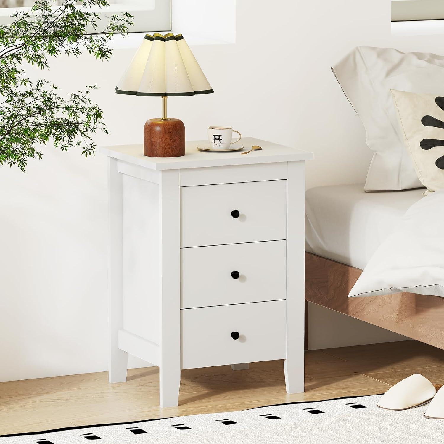 Giantex Nightstands Set of 2 with 3 Drawers, Wood Walnut Night Stand Bedside Table w/Storage Drawer & Round Metal Knobs, Vintage End Side Table for Dorm Bedroom Small Spaces, 14.5″ D x 18″ W x 26″ H(White)