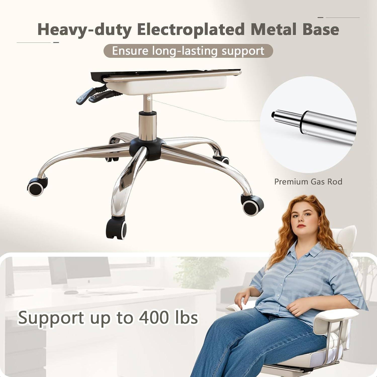 [Heavy-duty Office Chair]: To achieve smooth movement, the executive chair features 5 universal wheels. Meantime, its SGS gas rod and 5-claw strong supporting metal base, all tested over 100,000 times and certified for safety and quality, which will provide a substantial load capacity of 400 lbs. BIFMA certified.