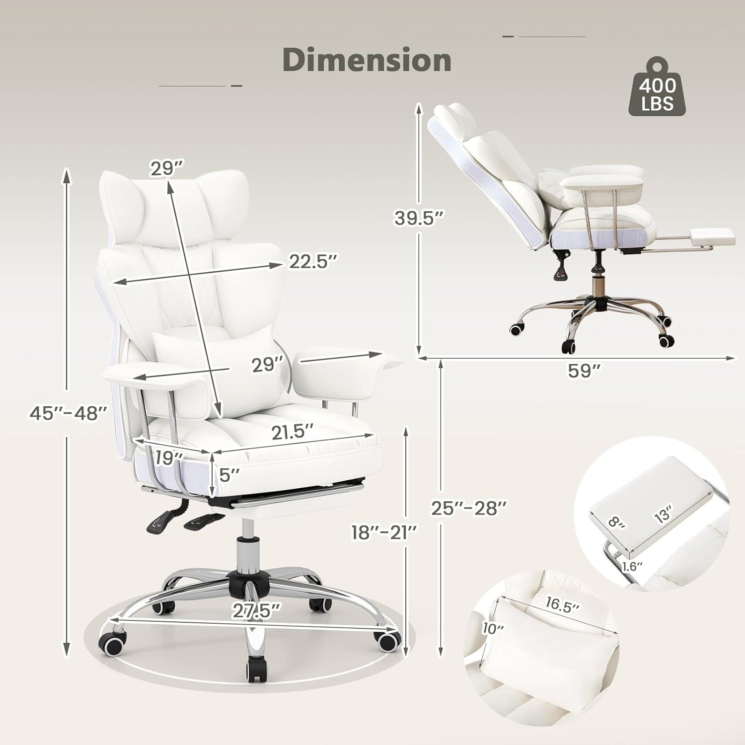 [Ergonomic Wide Chair]: Take comfort to the next level with the padded armrests and 11.5” retractable footrest. No matter if you want to sit back for relaxation or engage in deeper thinking, the big and tall executive chair provides you with ultimate in comfort and support.