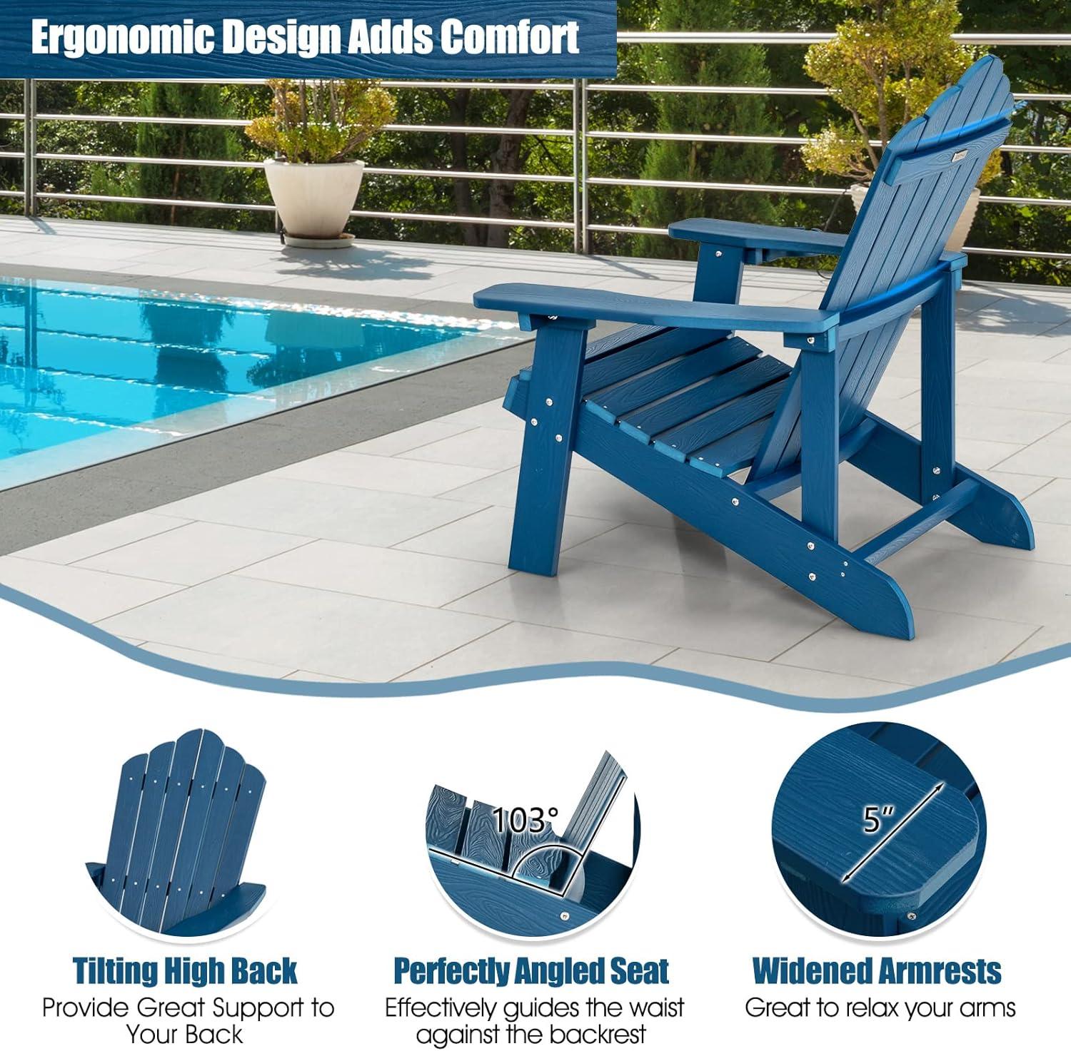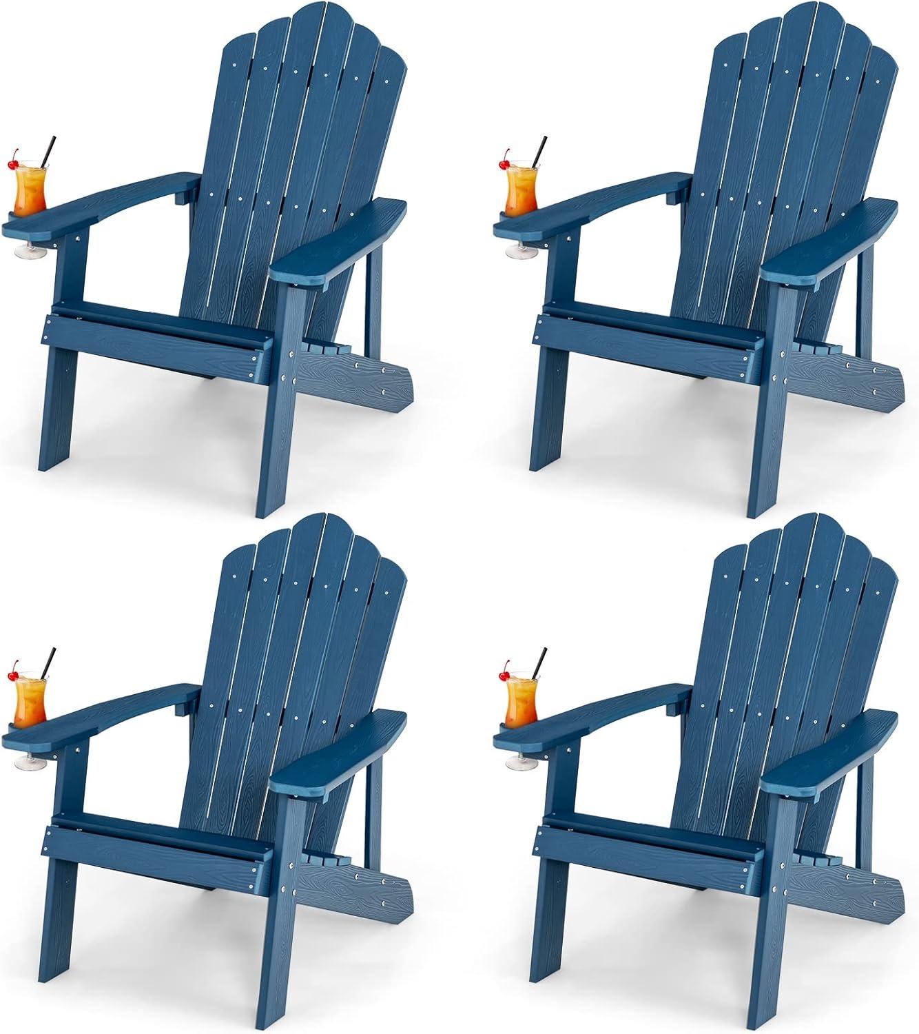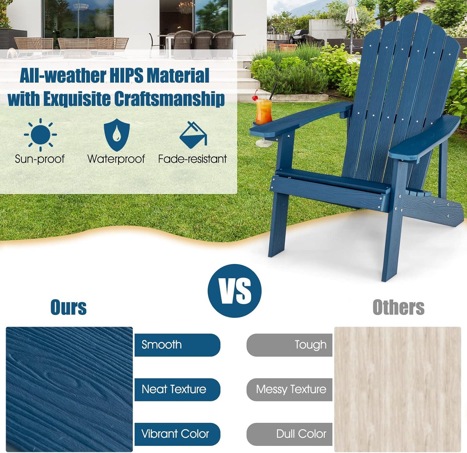 Giantex Outdoor Adirondack Chair - Oversized Patio Chairs w/Hidden Cup Holder, Realistic Wood Grain, 380 LBS Weight Capacity, Weather Resistant Firepit Chairs for Backyard, Garden (1, Yellow)(Navy)