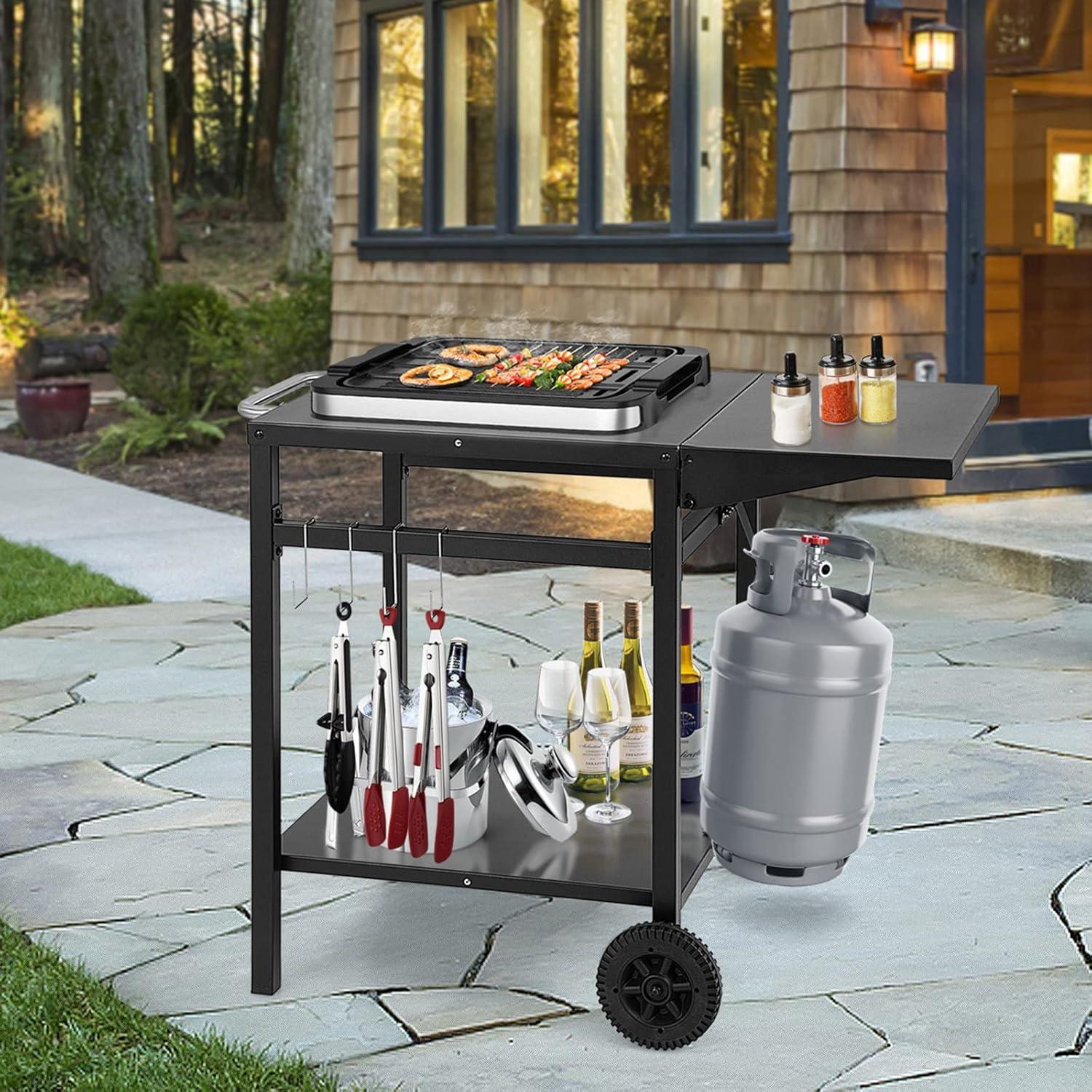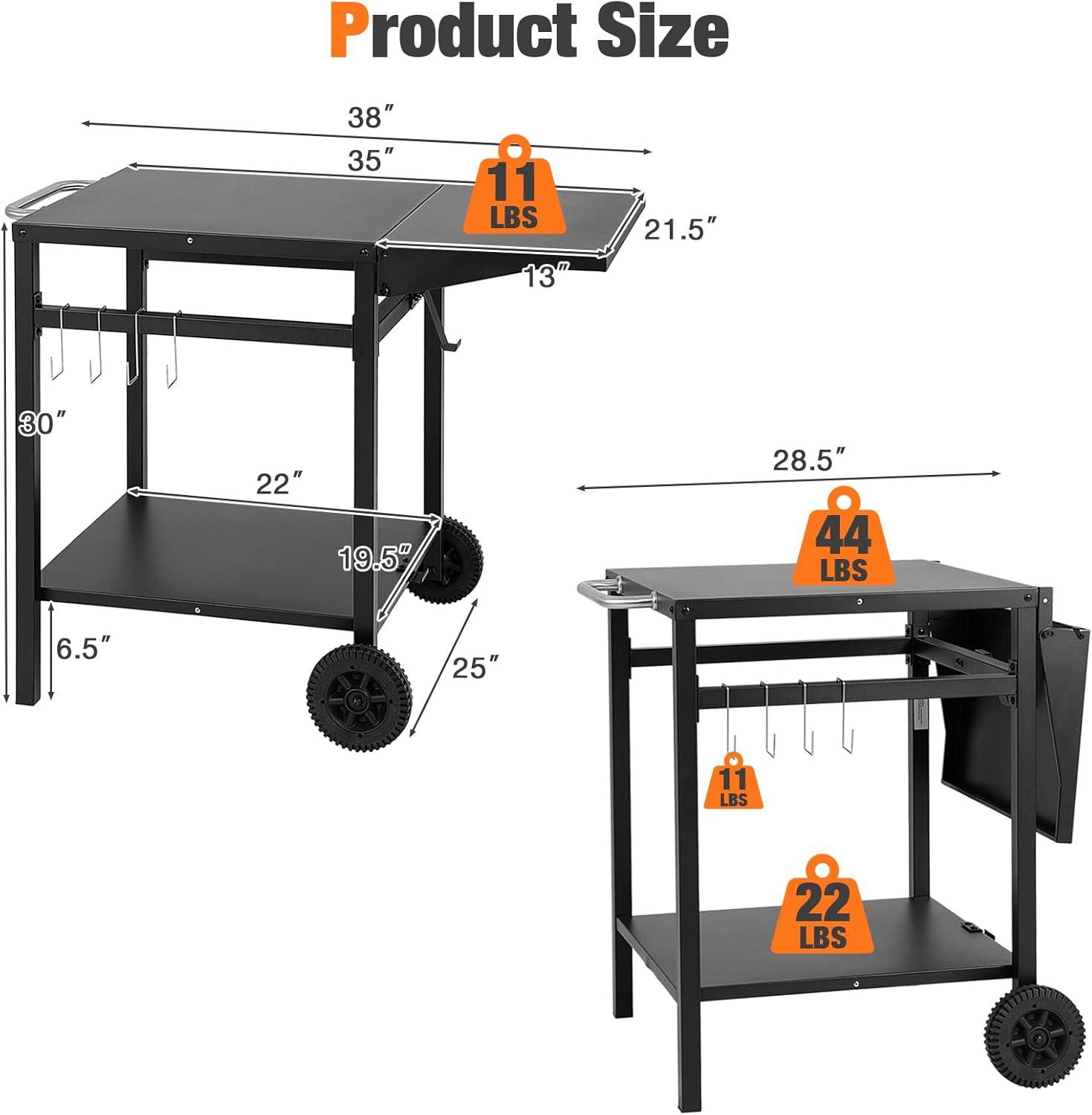 【Functional Grilling Table】: The practical worktable can be used as a potting table, food preparation table, grill table or pizza oven stand, fulfilling your different needs of outdoor cooking activities. Besides, made of weather-resistant steel material, this dining cart is suitable for outdoor use, serving you and your family for years.