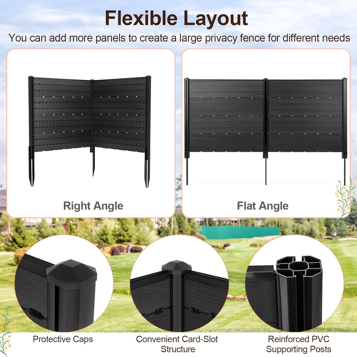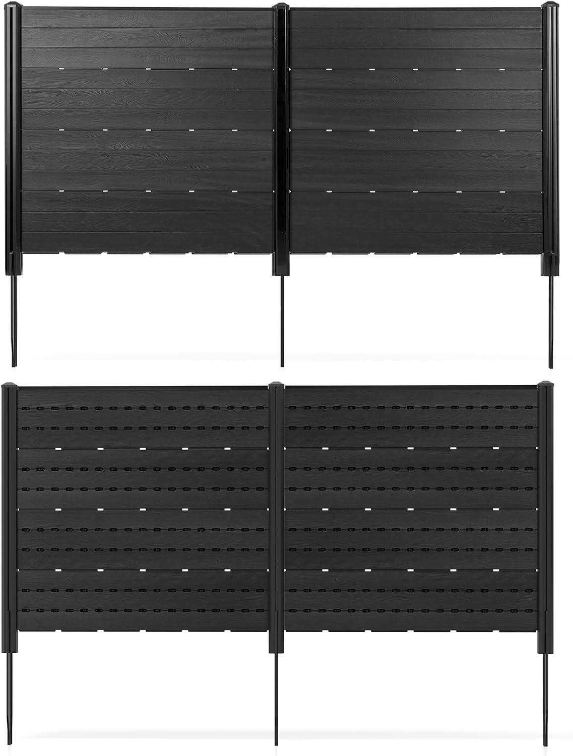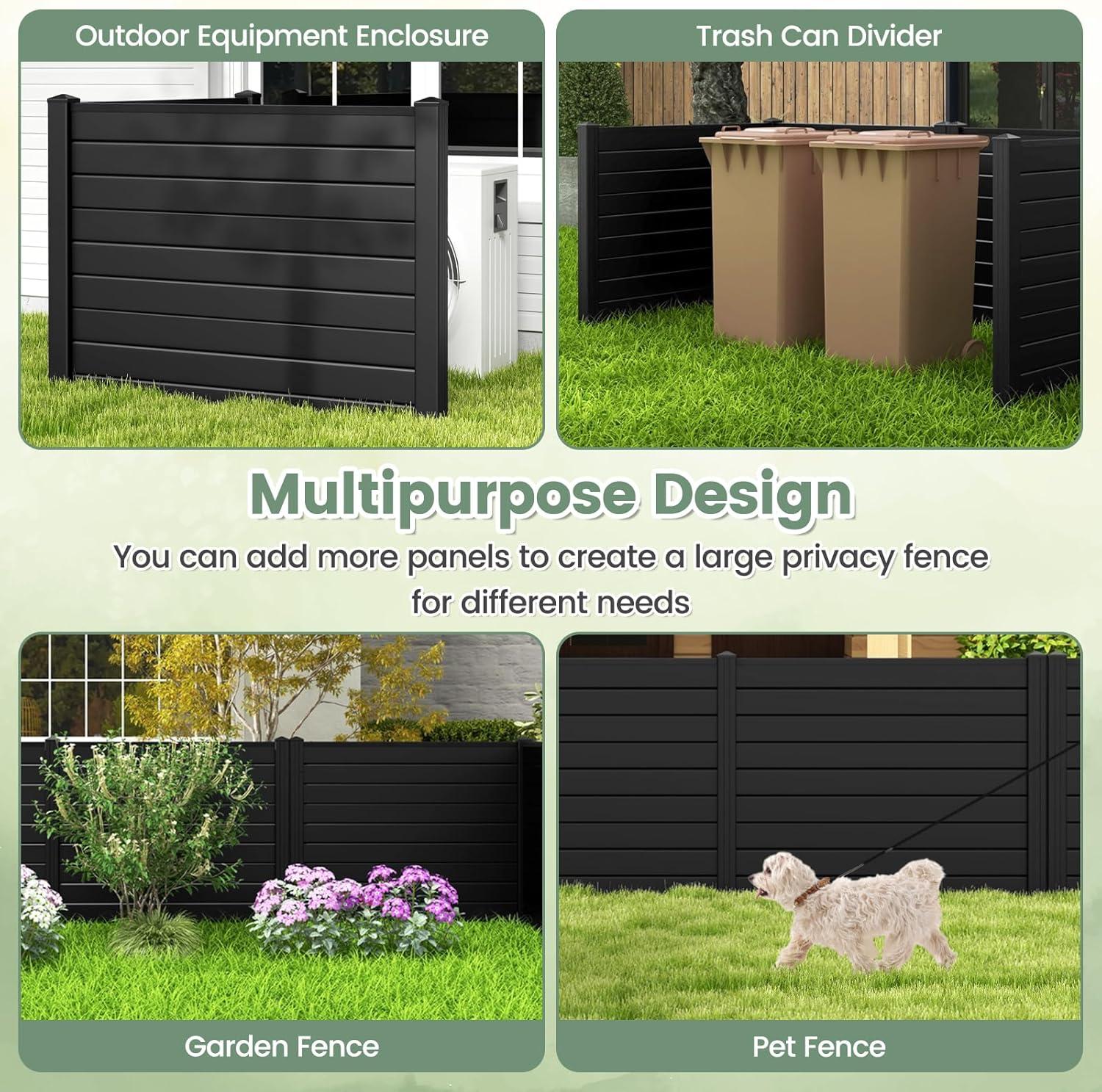 Giantex Outdoor Privacy Screen 2 Panels, 48''W x 48''H Decorative Air Conditioner Fence Trash Can Enclosure with 3 Stakes, Easy Assembly, PVC Vinyl Picket Fences for Garden Patio Lawn, White(Black)