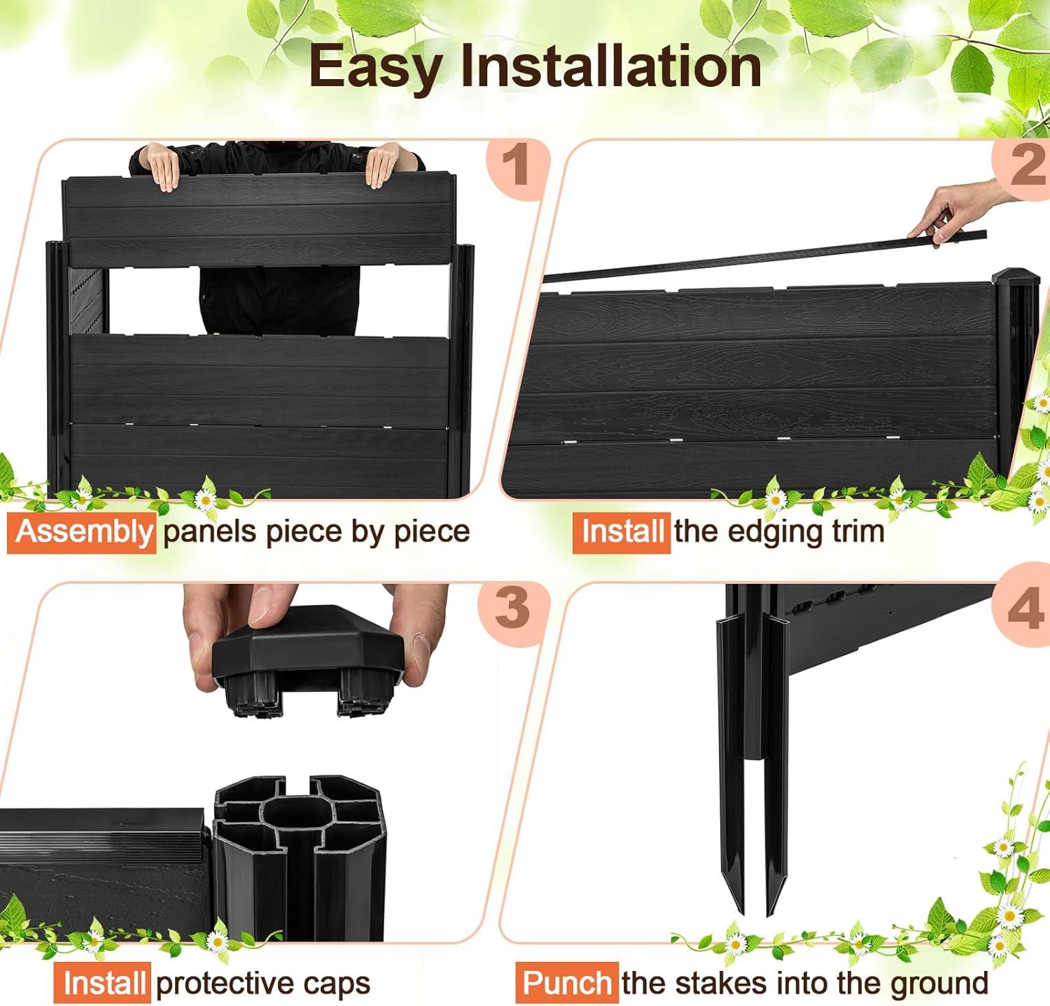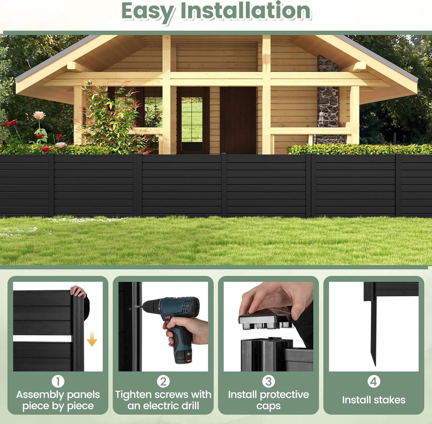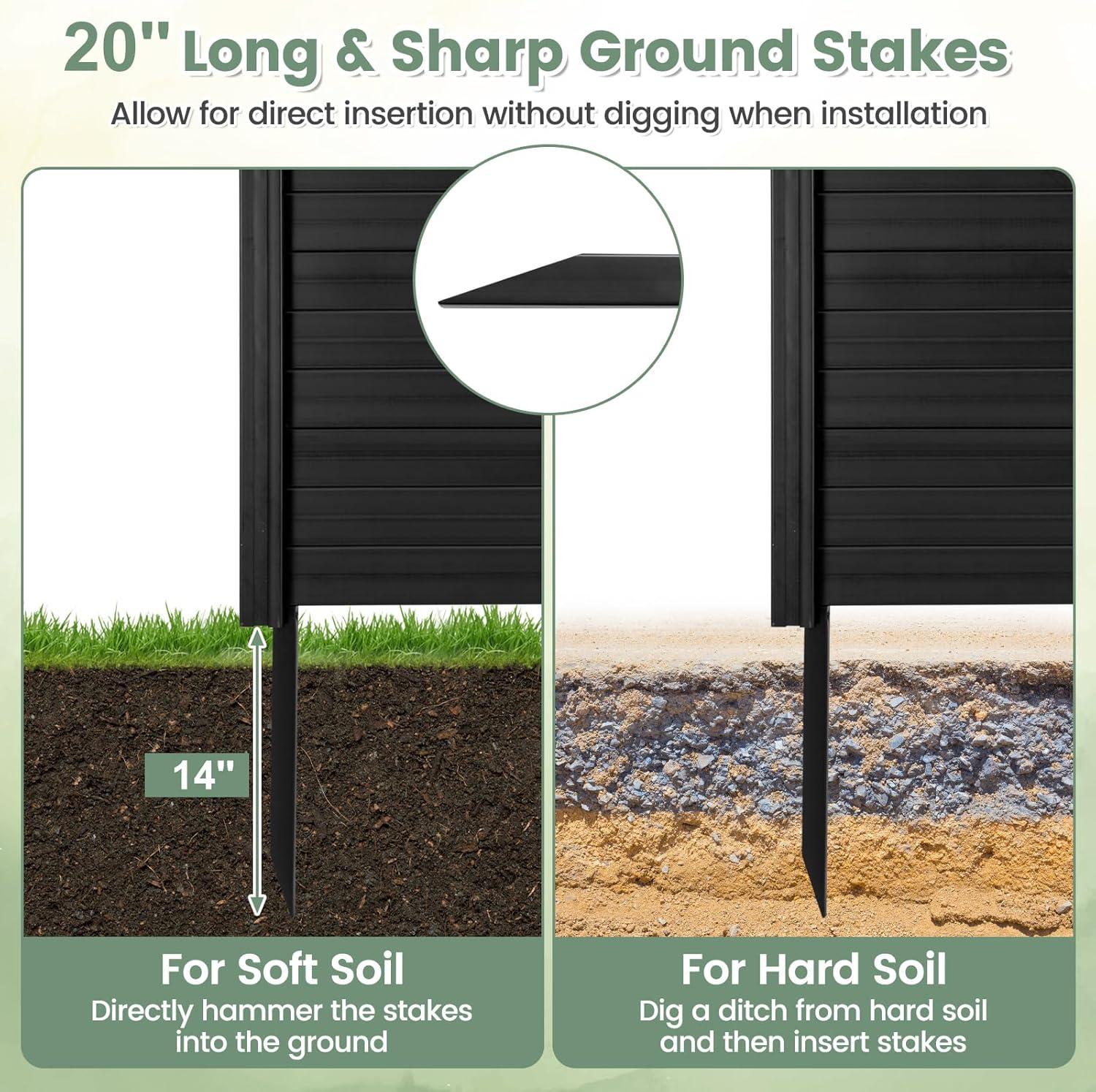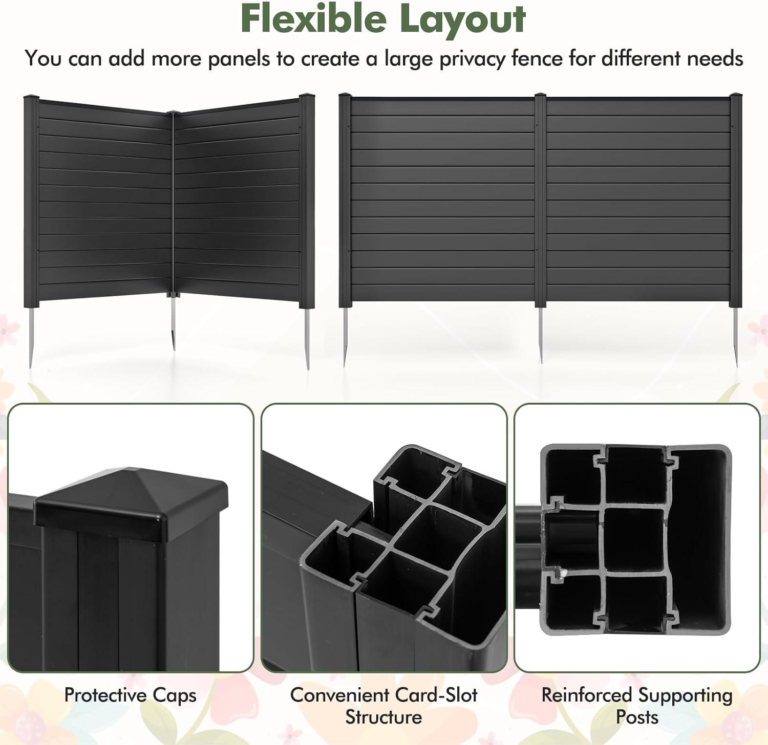 Giantex Outdoor Privacy Screen 2 Panels, 48''W x 48''H Decorative Air Conditioner Fence Trash Can Enclosure with 3 Stakes, Easy Assembly, PVC Vinyl Picket Fences for Garden Patio Lawn, White(Black)