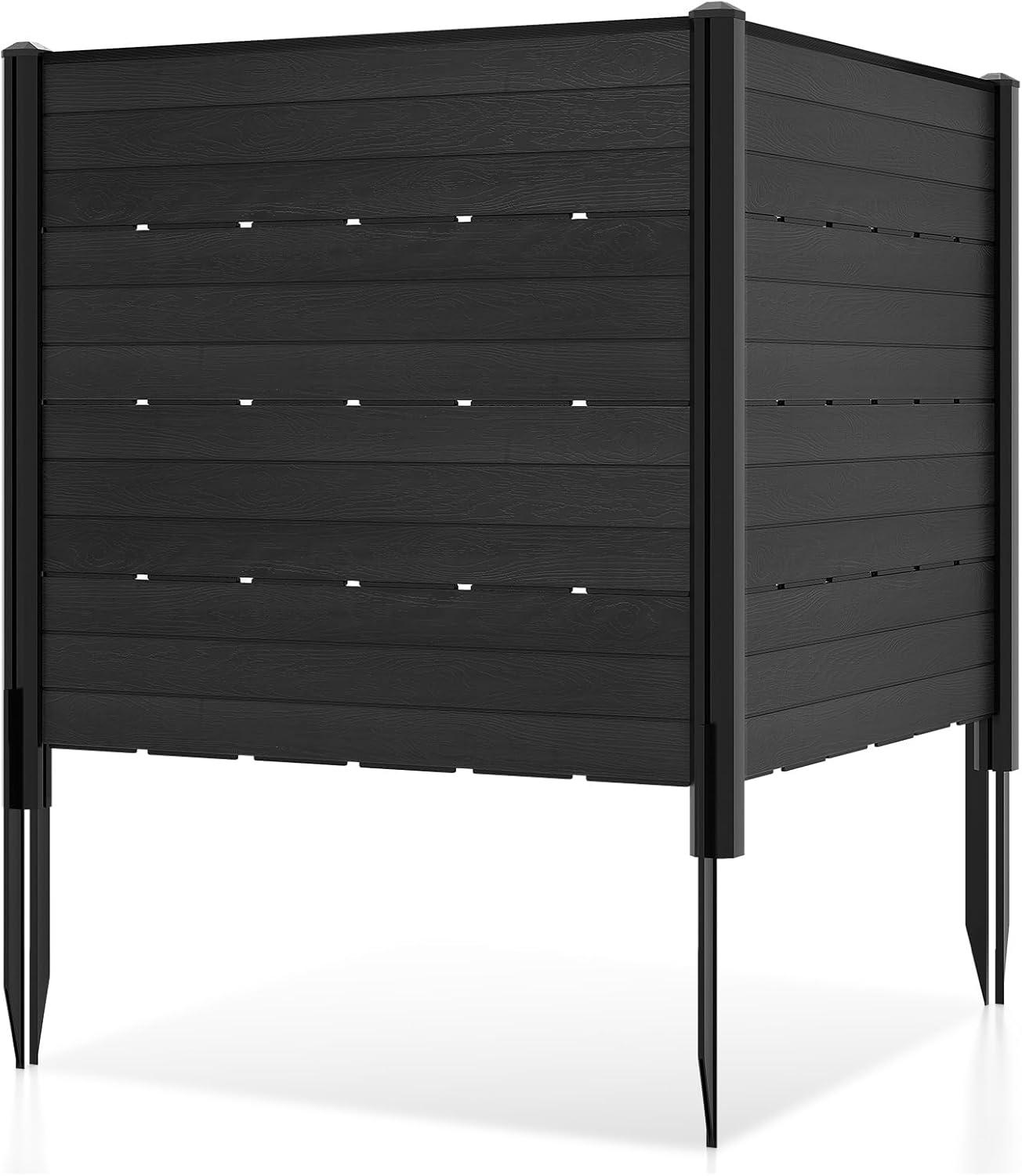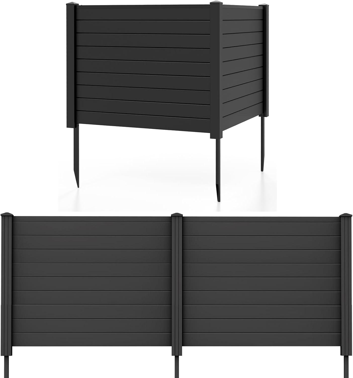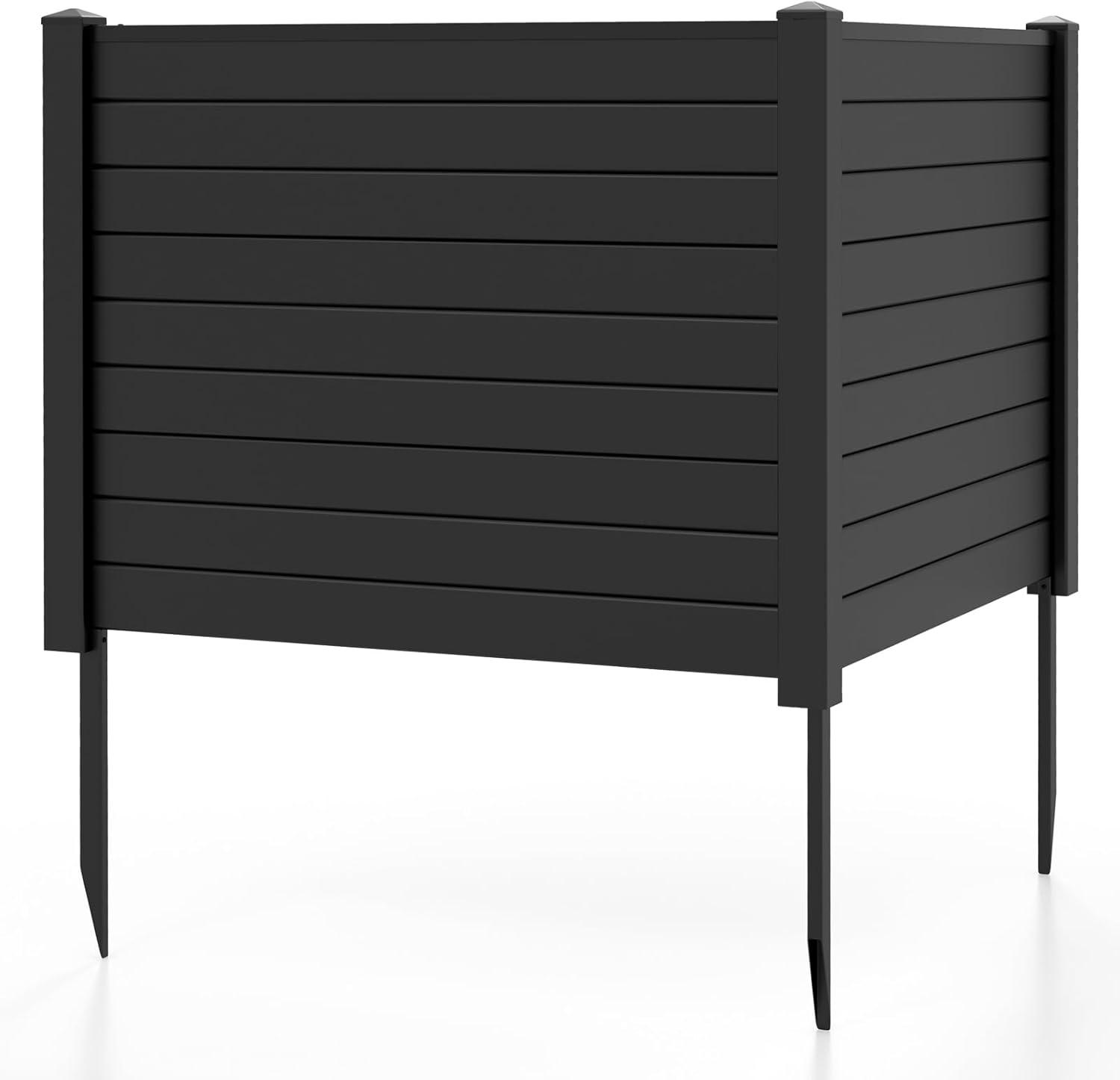 Giantex Outdoor Privacy Screen 2 Panels, 48”W x 48”H Decorative Air Conditioner Fence Trash Can Enclosure with 3 Stakes, Easy Assembly, PVC Vinyl Picket Fences for Garden Patio Lawn, White(Black)