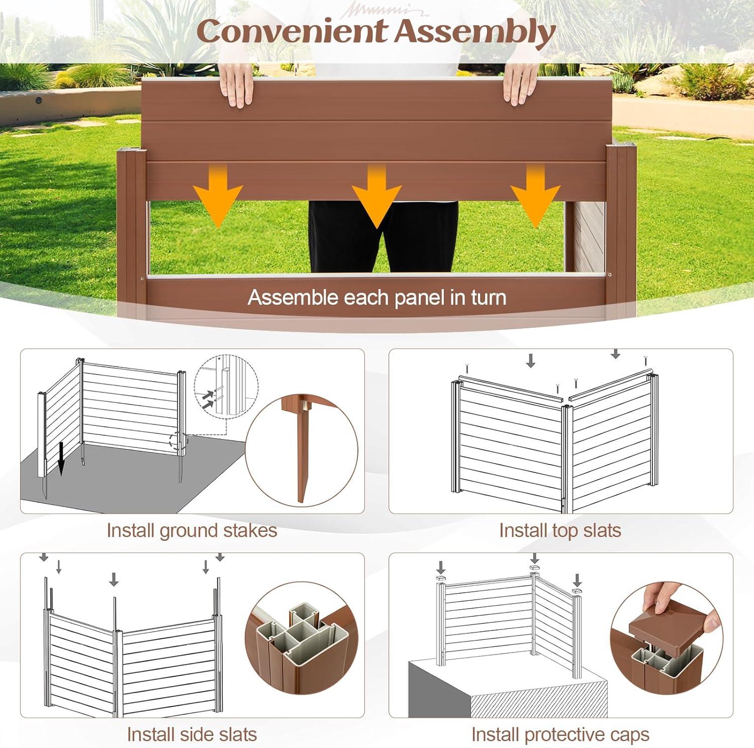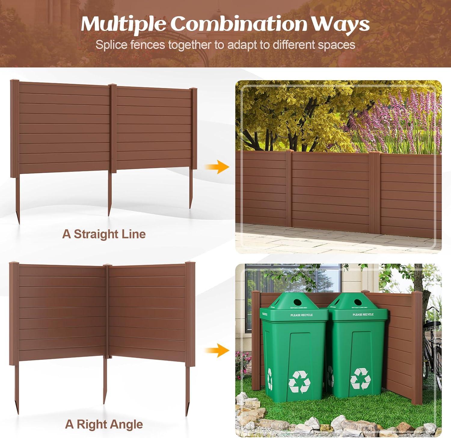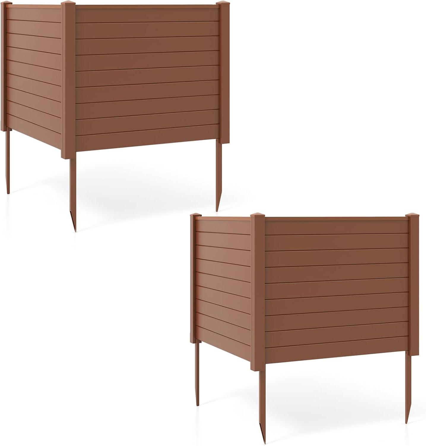 Giantex Outdoor Privacy Screen 2 Panels, 48''W x 48''H Decorative Air Conditioner Fence Trash Can Enclosure with 3 Stakes, Easy Assembly, PVC Vinyl Picket Fences for Garden Patio Lawn, White(Brown)