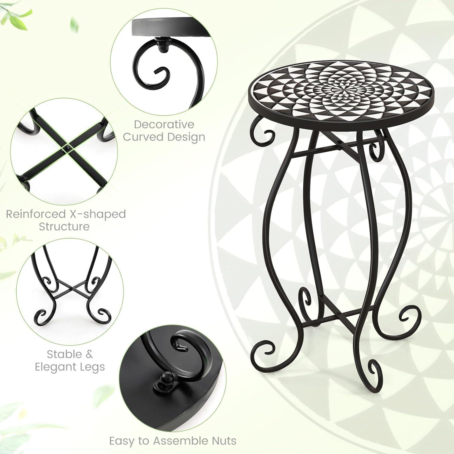 imageGiantex Outdoor Side Table Mosaic Patio Table 14inch Accent Table Plant Stand Ceramic Tile Top Metal Frame Small End Table Porch Beach Patio Garden Balcony PoolsideMonochrome