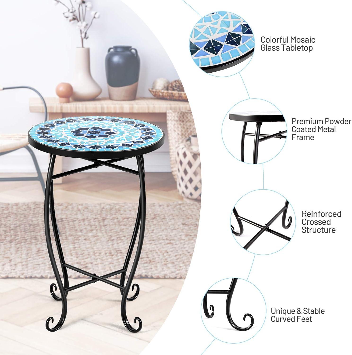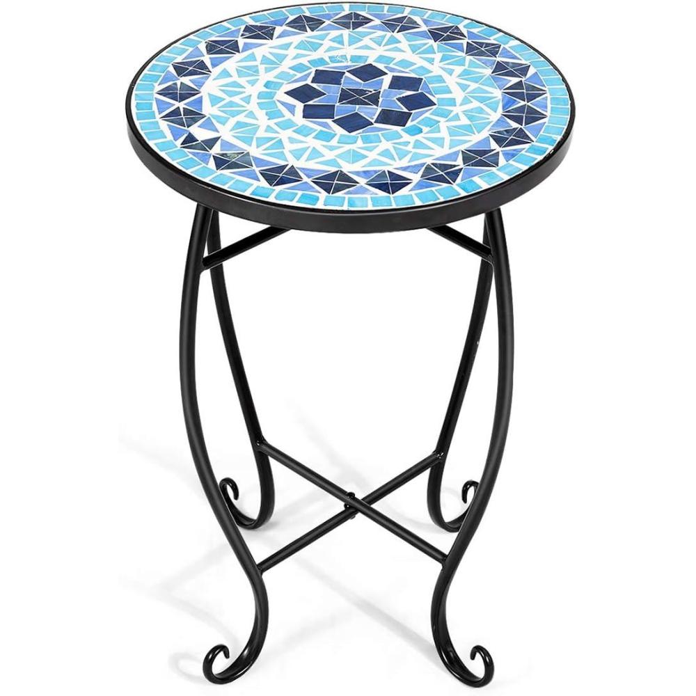 imageGiantex Outdoor Side Table Mosaic Patio Table 14inch Accent Table Plant Stand Ceramic Tile Top Metal Frame Small End Table Porch Beach Patio Garden Balcony PoolsideOcean
