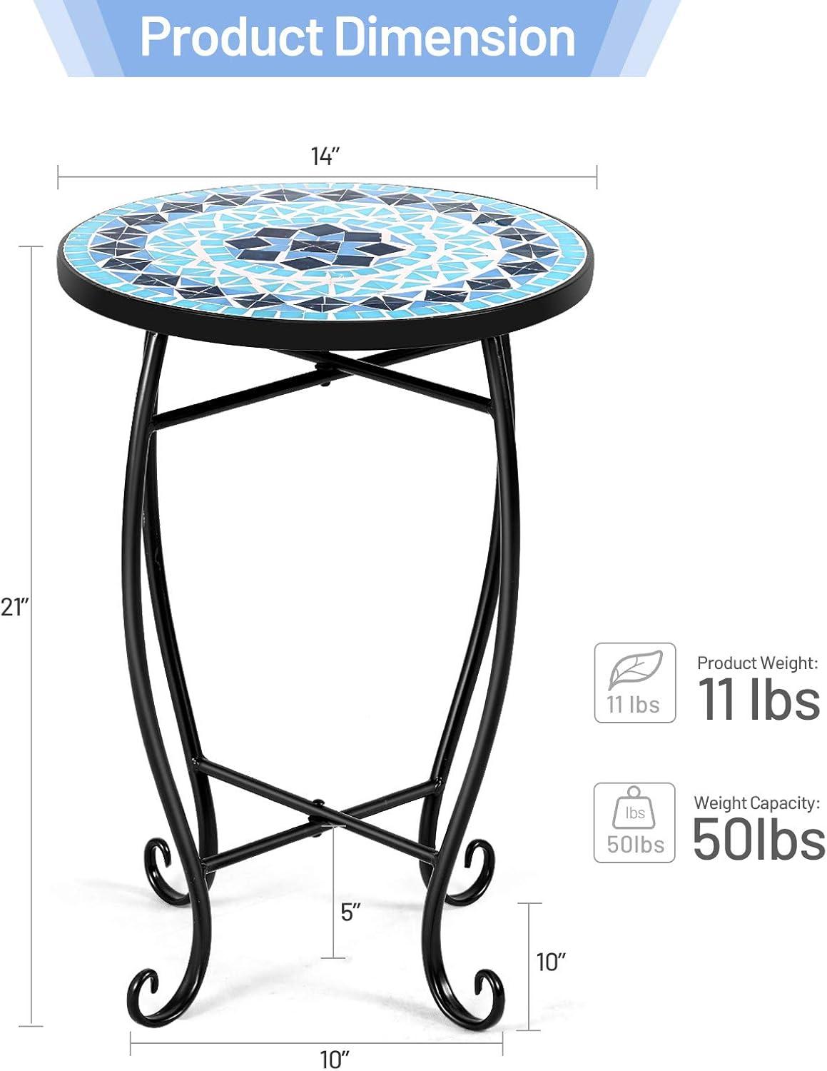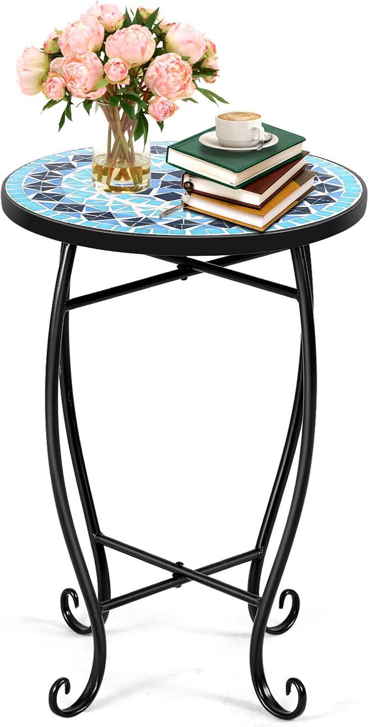 Giantex Outdoor Side Table, Mosaic Patio Table, 14inch Accent Table Plant Stand, Ceramic Tile Top Metal Frame, Small End Table Porch Beach Patio Garden Balcony Poolside(Ocean)