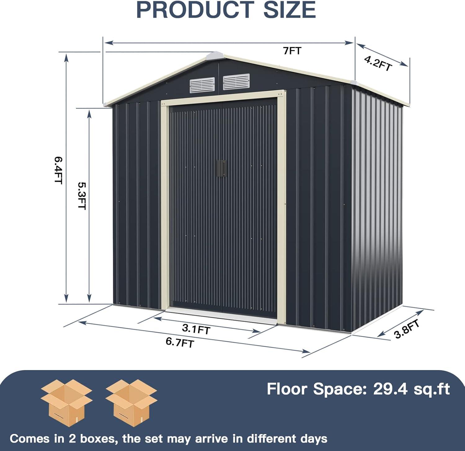 『Simple Assembly & Product Information』: Easy assembly is required. The storage shed is easy to put all parts together according to the detailed instruction. Moreover, comes in 4 boxes, the set may arrive in different days.