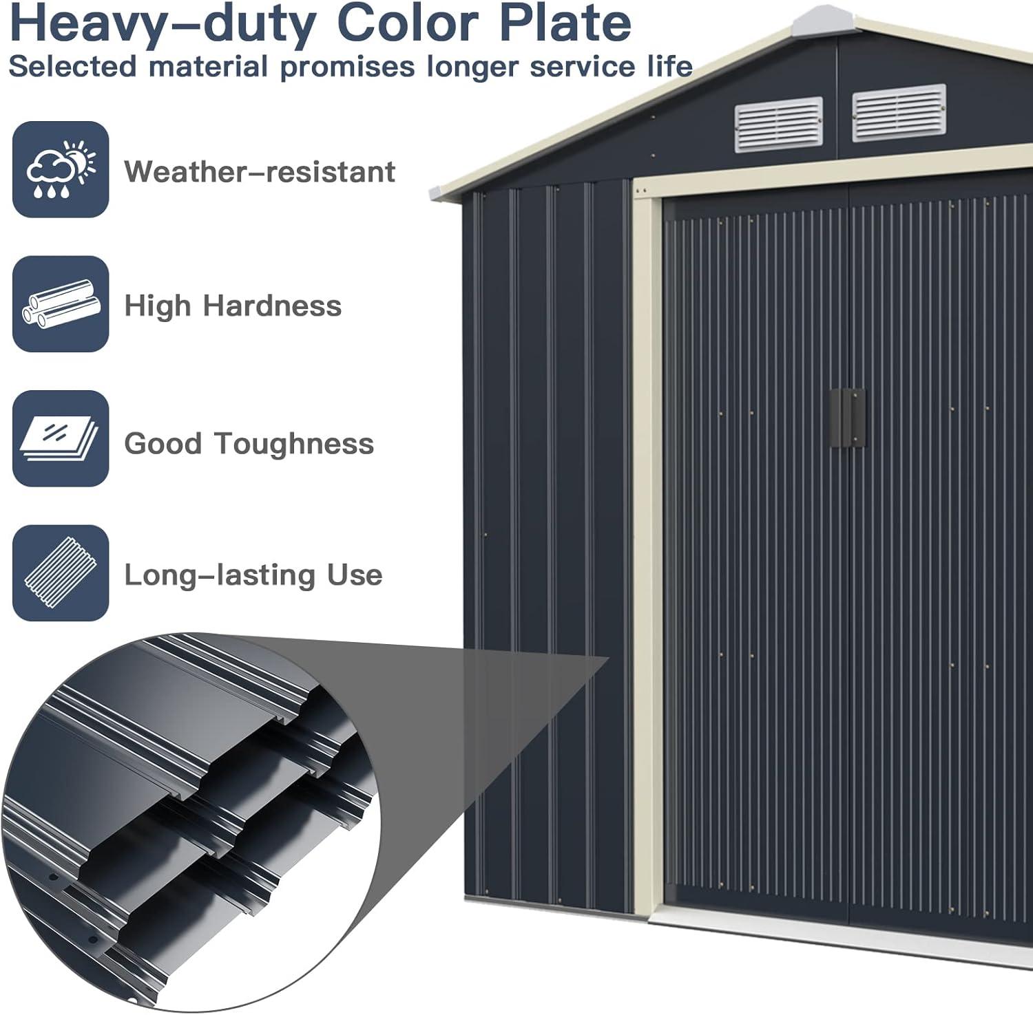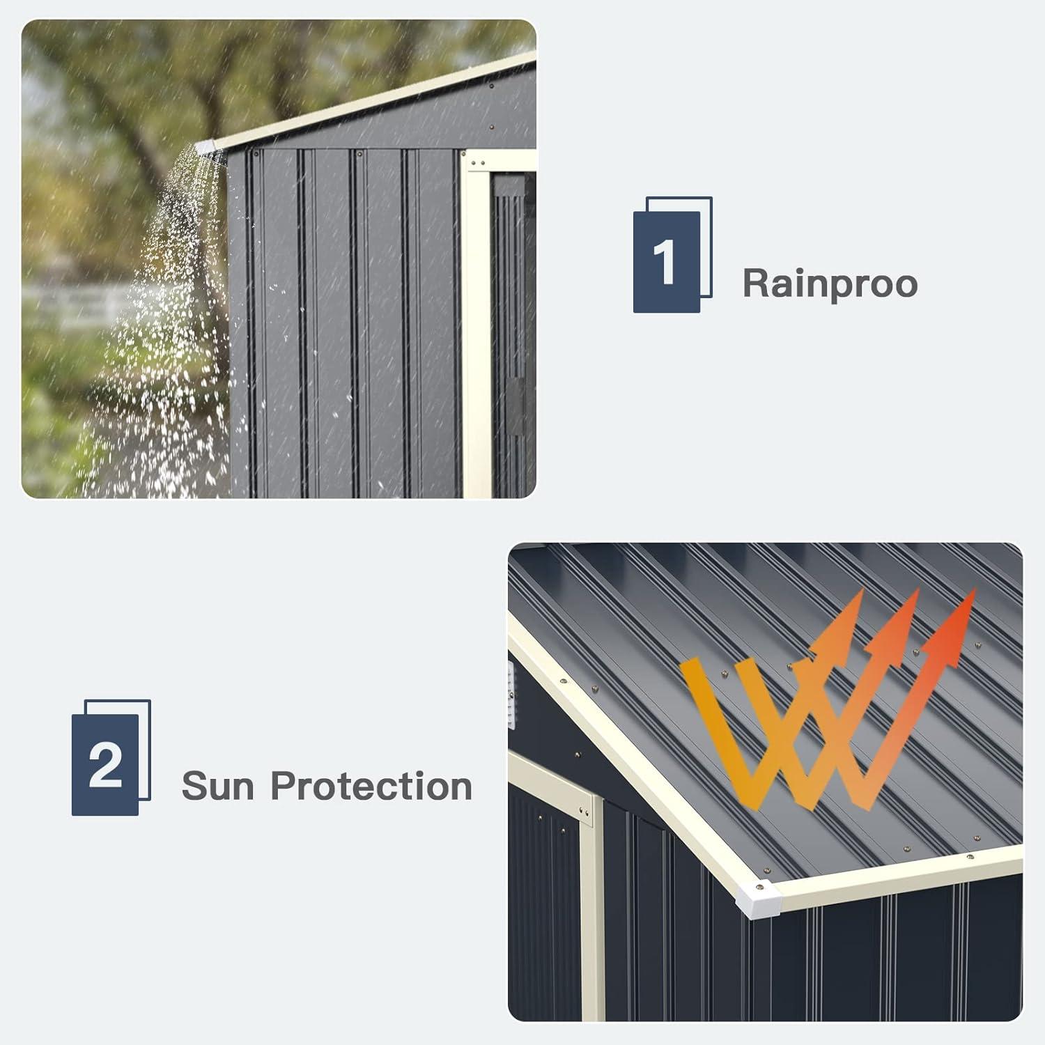 『Rugged & Stable Construction』: Constructed with heavy-duty cold steel frame, the storage shed features great sturdiness and high strength. Plus, the painted surface has the characteristics of rustproof and weather-resistant, ensuring long outdoor use. The galvanized steel pipe takes the stability into a higher level.