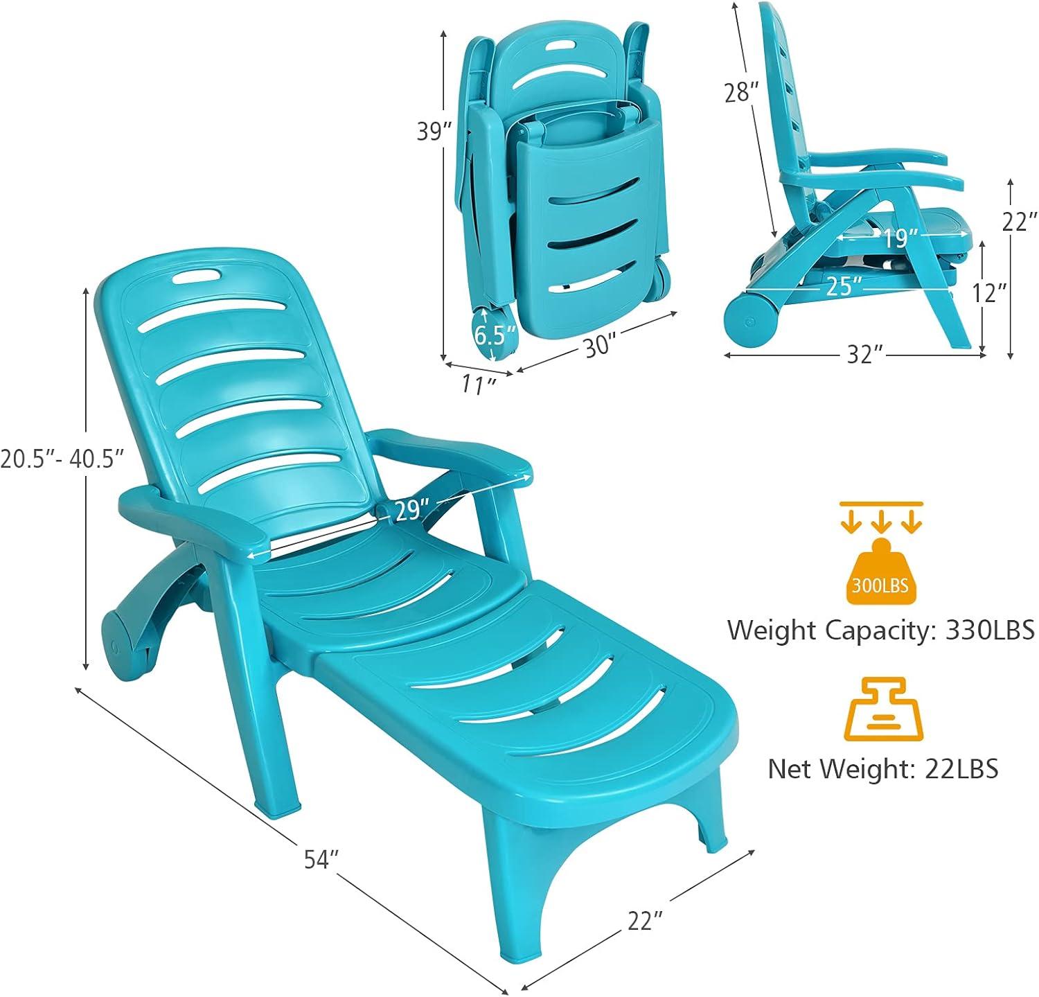 Giantex Patio Chaise Lounge Recliner on Wheels, Folding Deck Chair with Armrests, 5 Adjustable Positions for Poolside, Yard, Garden Rolling Outdoor Lounger Sunbathing Beach Chair(1, Gray)(Turquoise)