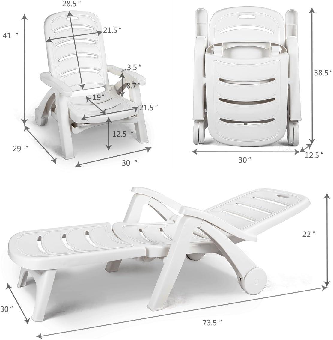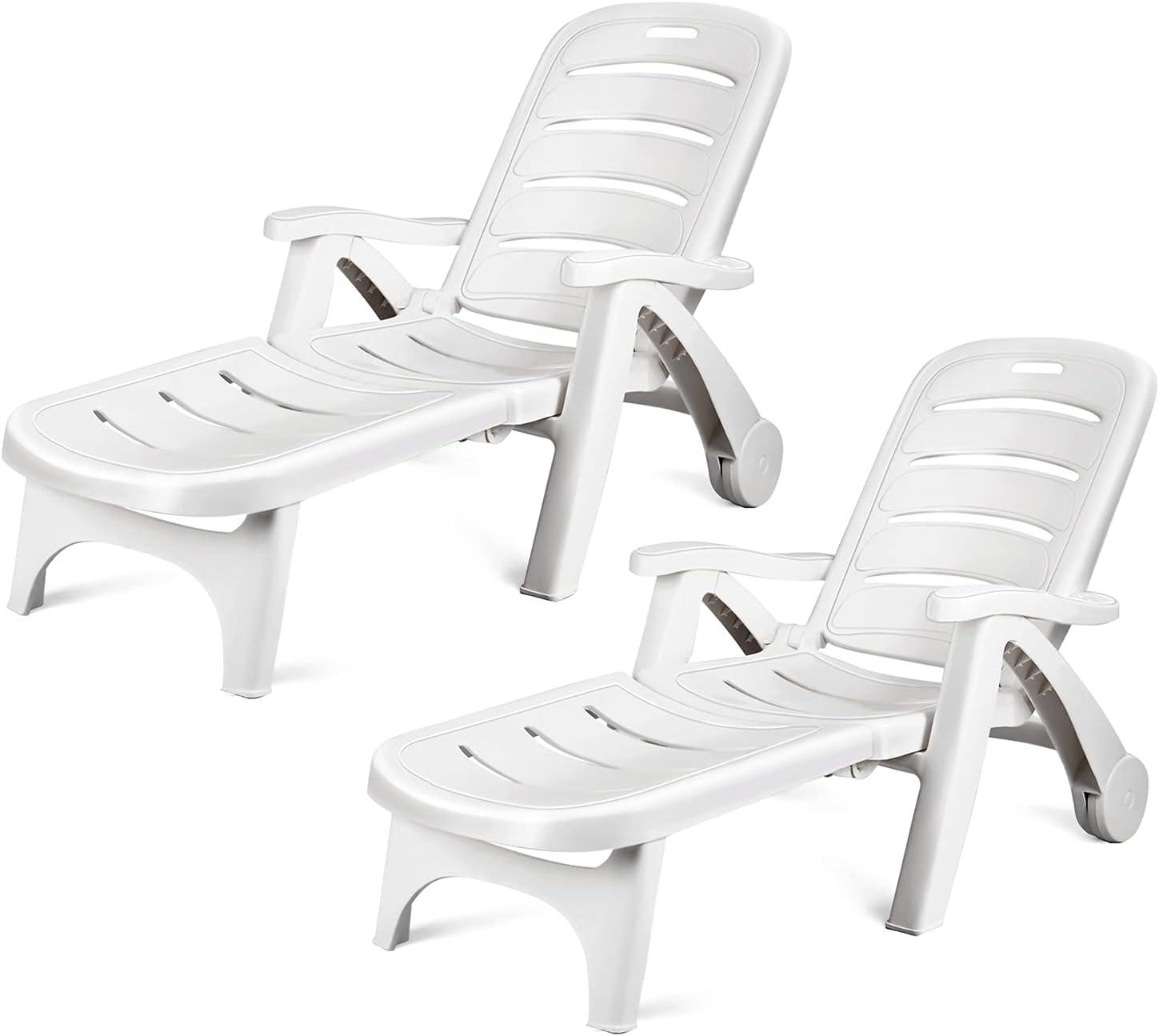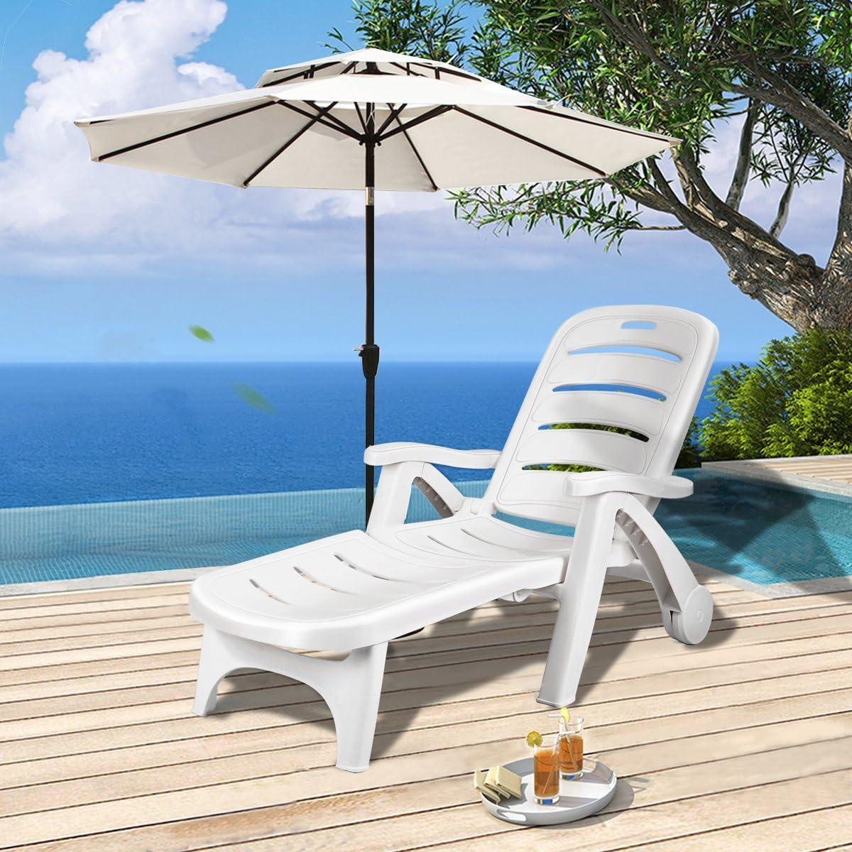 Giantex Patio Chaise Lounge Recliner on Wheels, Folding Deck Chair with Armrests, 5 Adjustable Positions for Poolside, Yard, Garden Rolling Outdoor Lounger Sunbathing Beach Chair(1, Gray)(White)