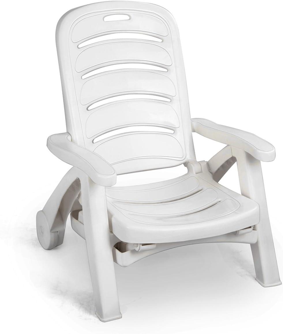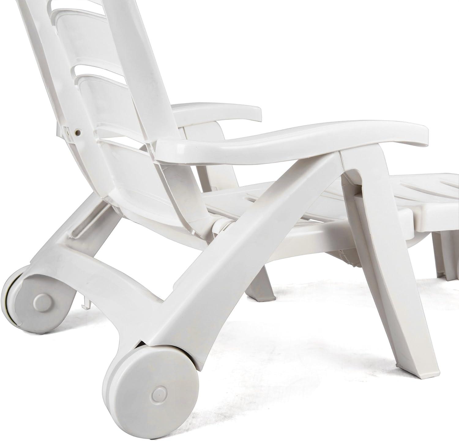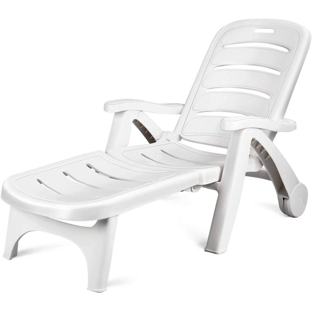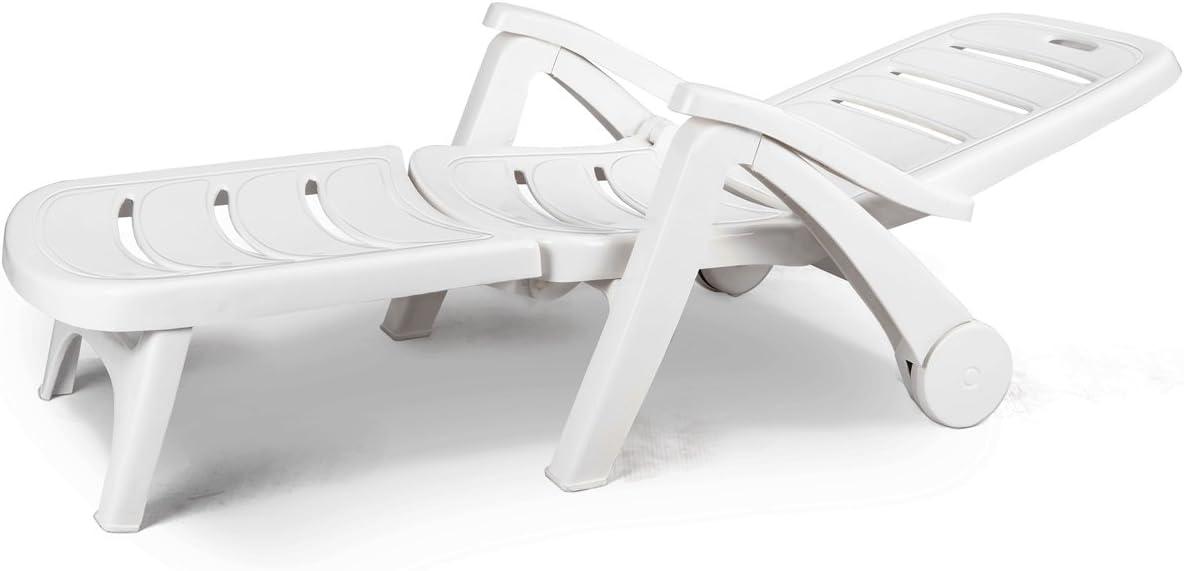 Giantex Patio Chaise Lounge Recliner on Wheels, Folding Deck Chair with Armrests, 5 Adjustable Positions for Poolside, Yard, Garden Rolling Outdoor Lounger Sunbathing Beach Chair(1, Gray)(White)