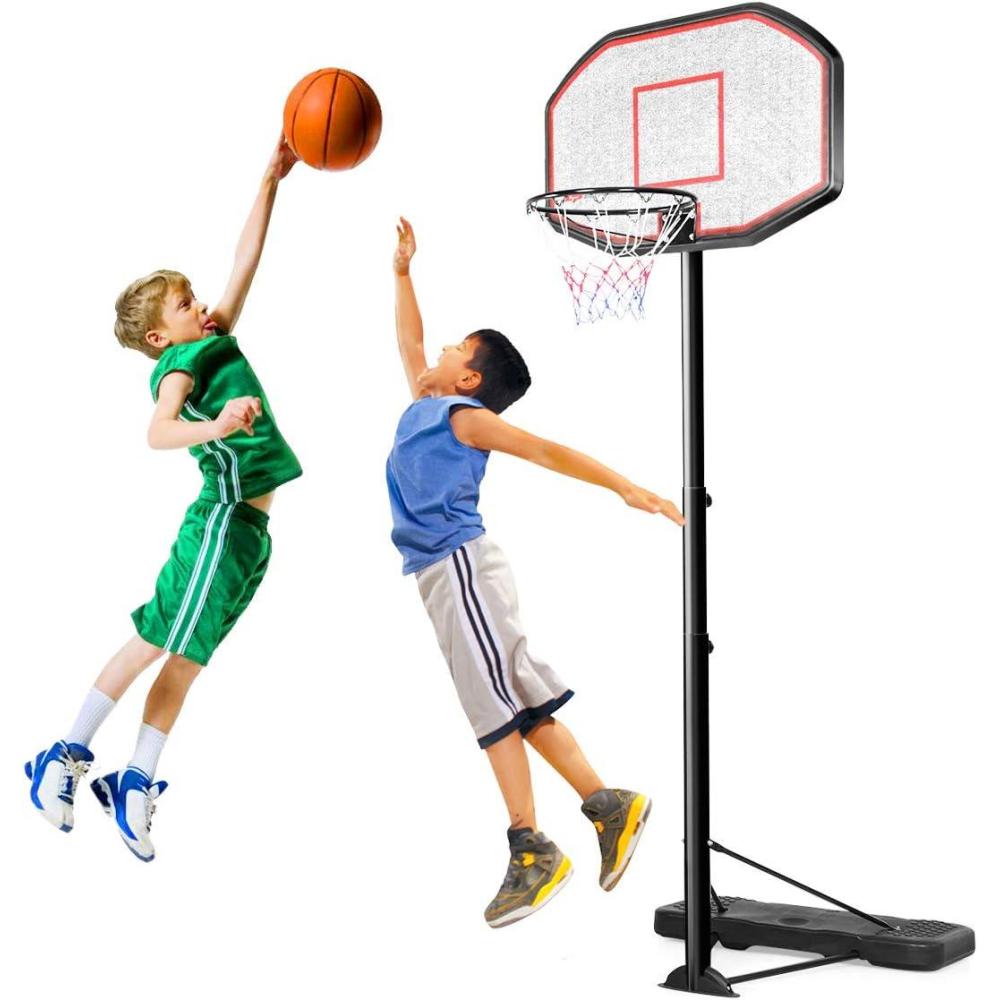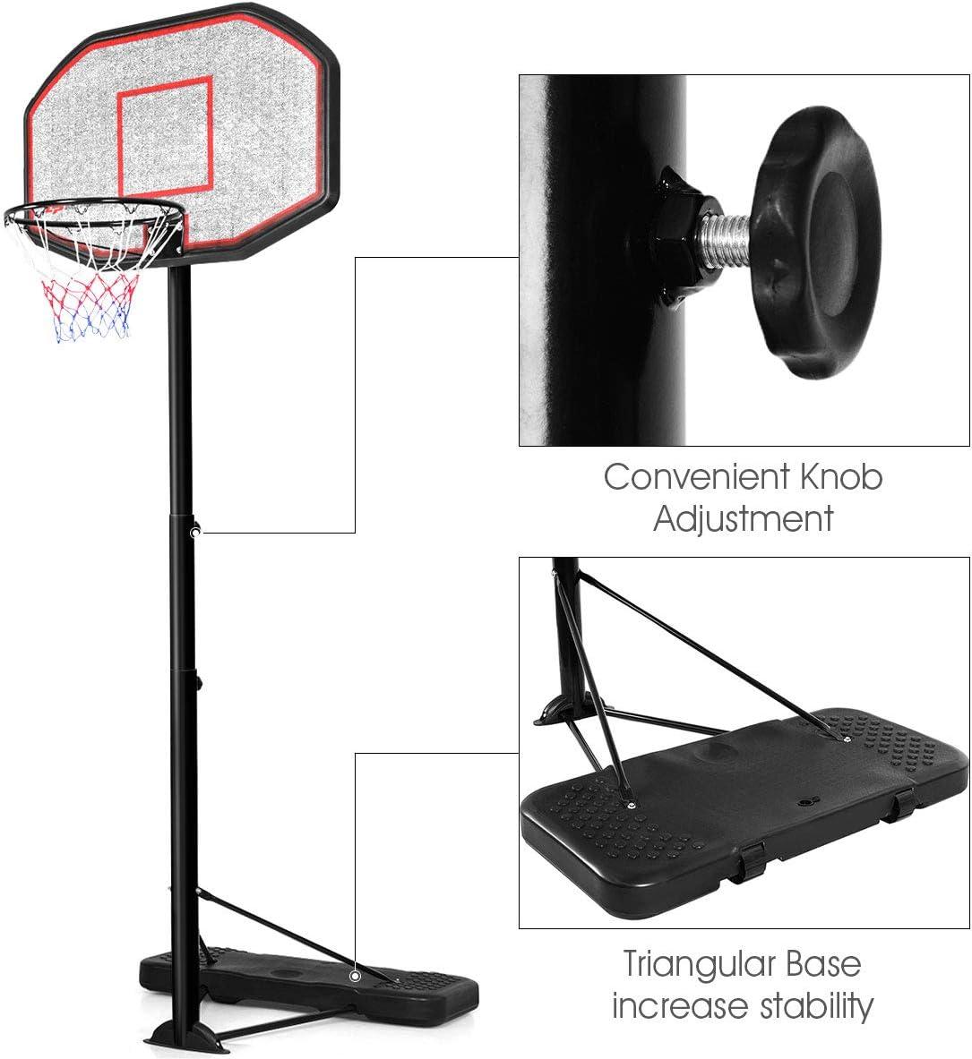 [ EASY TO MOVE ] : Equipped with 2 wheels that allows you to move Giantex basketball hoop easily. 66 lbs base filed with water that ensures safety when kids play the big rebound or the dunk.