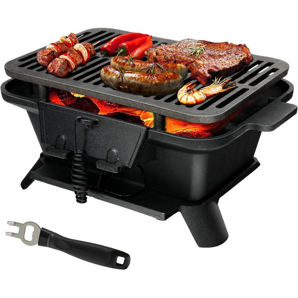 Giantex Portable Hibachi Grill, Double-sided Cast Iron Grill with Air Regulating Door & Fire Gate, Grate Lifter, Ideal for Outdoor Picnic, Camping & Backyard Barbecue Cooking(Rectangle Grill)