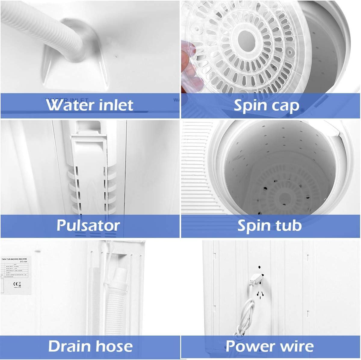 Giantex Portable Mini Compact Twin Tub Washing Machine 20lbs Washer Spain Spinner Portable Washing Machine, Blue+ White(White & Blue)
