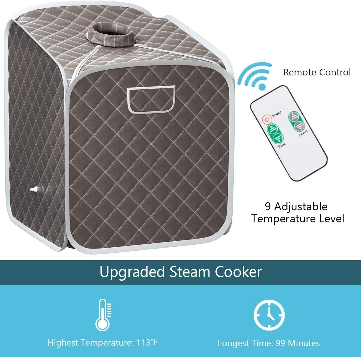 【9 Adjustable Temperature Levels】Our portable steam sauna is equipped with a remote control, so that you can adjust the temperature according to your needs. In addition, 9 levels of temperature regulating, maximum steam temperature 113℉ and 0-99 minutes timing range can meet the needs of different groups.