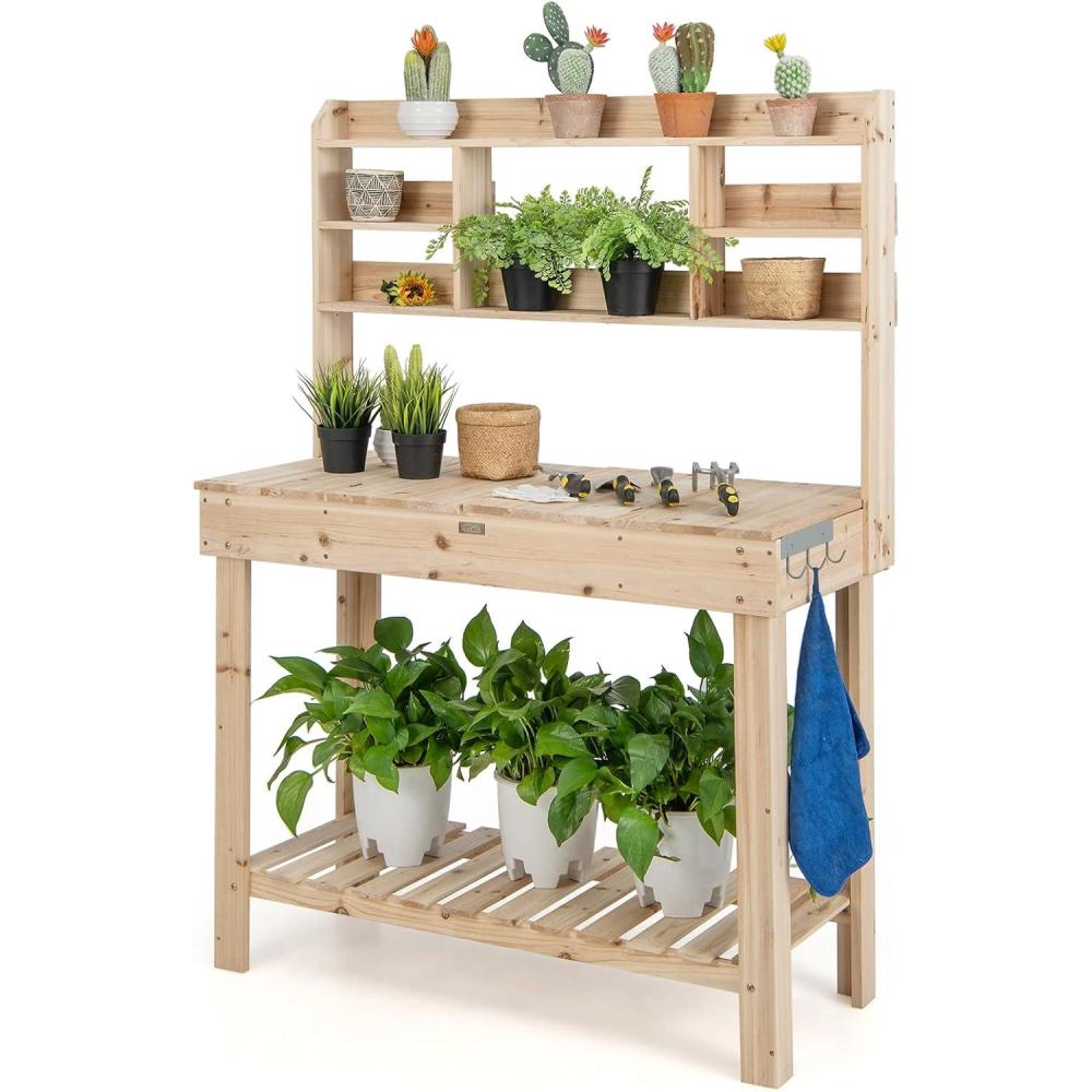 Be the first to review “Giantex Potting Bench Table, Outside Solid Wood Gardening Table with Flip-up Tabletop, Storage Shelves, Indoor Outdoor Wooden Workstation for Patio Porch Balcony, Potted Plant Display Rack (Brown)(Natural)”