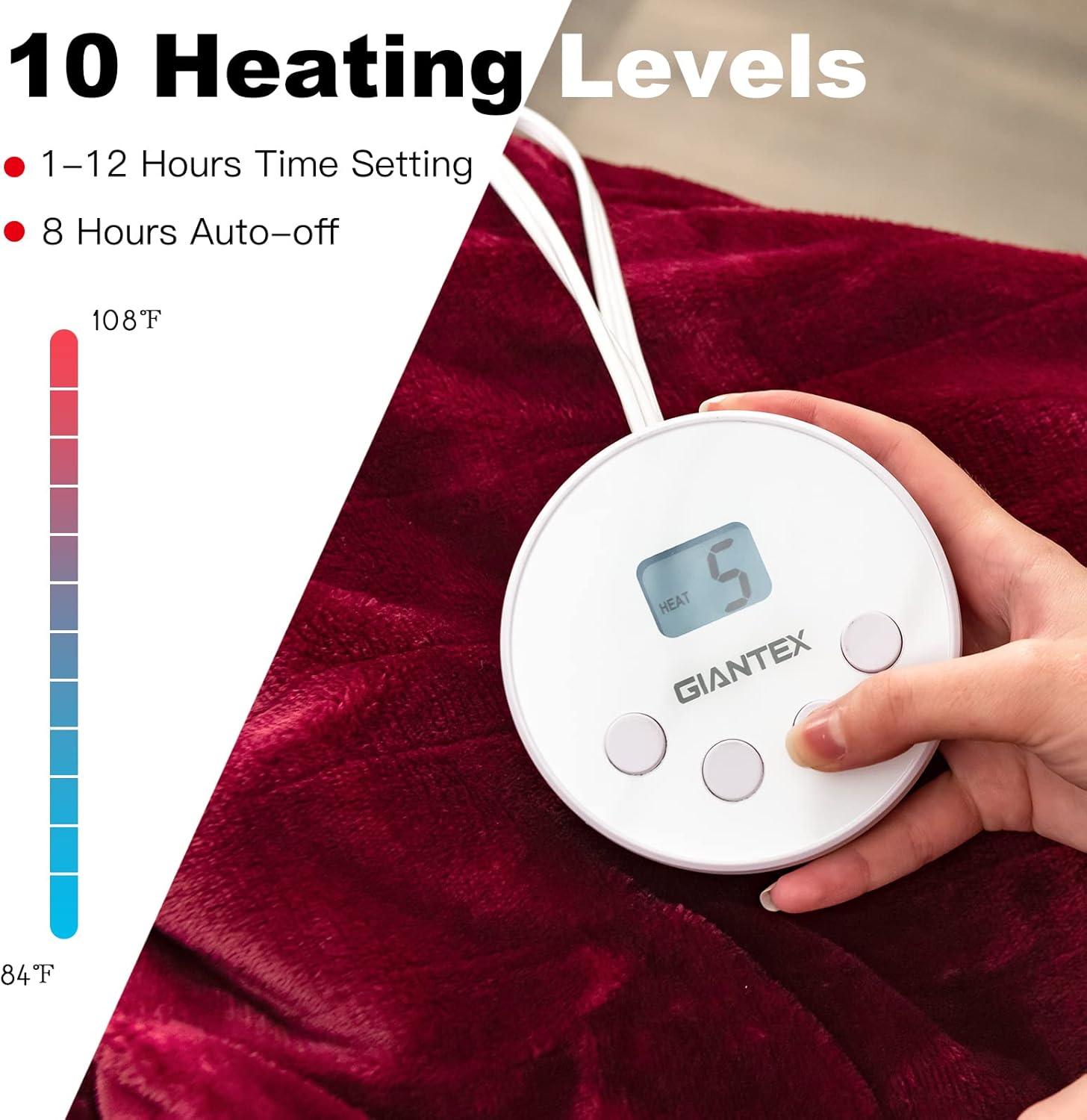 Giantex Queen Size Flannel Heated Blanket w/ 10 Heating Levels, 12H Auto Off, ETL Certified & Machine Washable, Thermal Blanket for Bed, Couch, Red