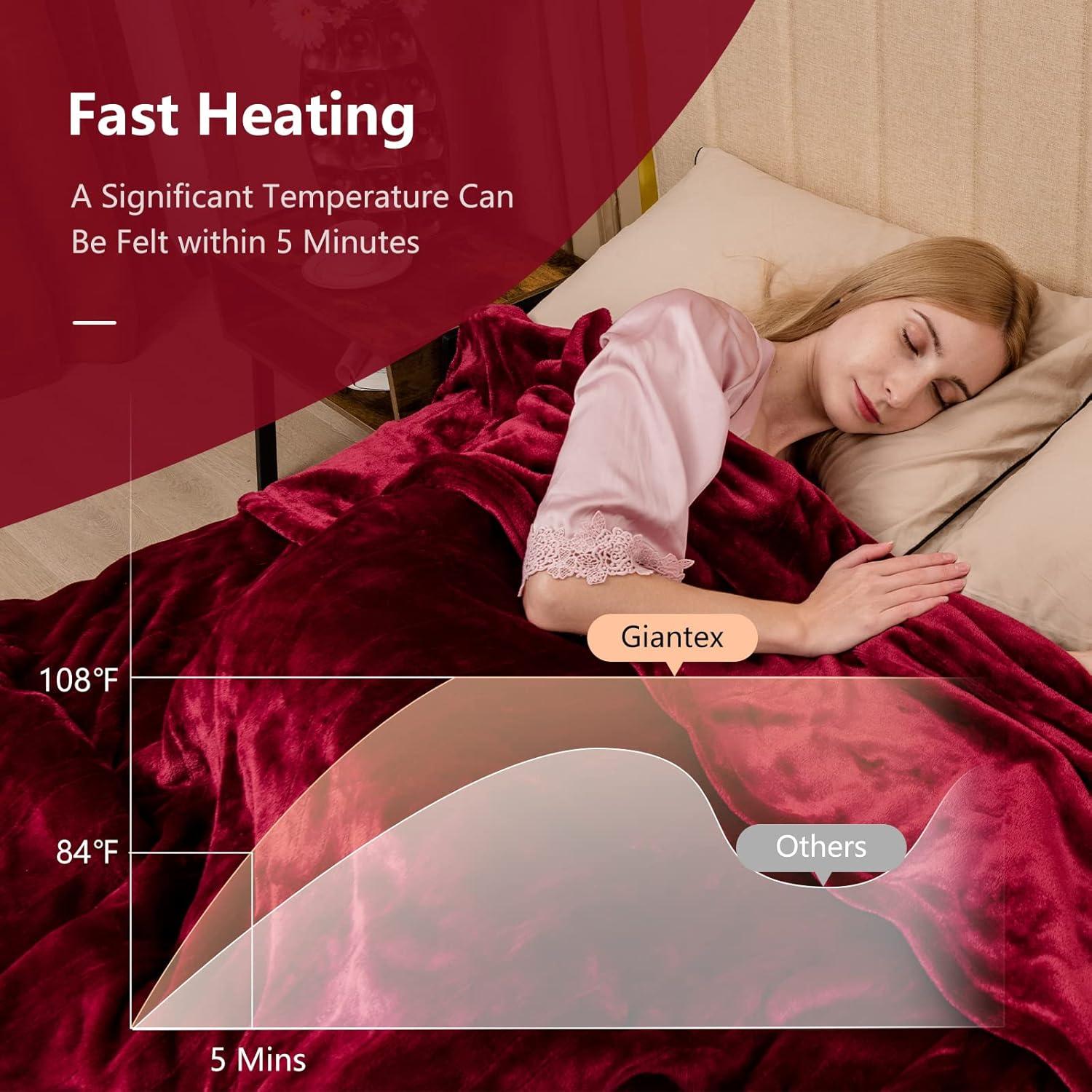 imageGiantex Queen Size Flannel Heated Blanket w 10 Heating Levels 12H Auto Off ETL Certified ampamp Machine Washable Thermal Blanket for Bed Couch Red