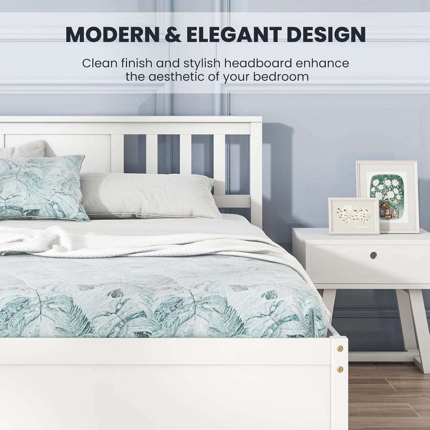 [Attractive Headboard]: The queen size bed is equipped with a stylish headboard that not only adds an elegant touch to the bedroom but also provides a supportive backrest while sitting up in bed.