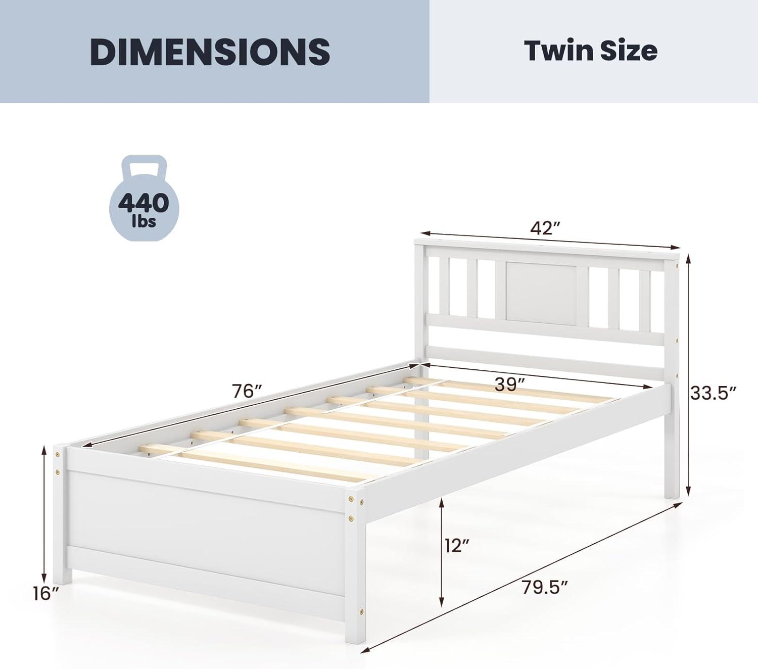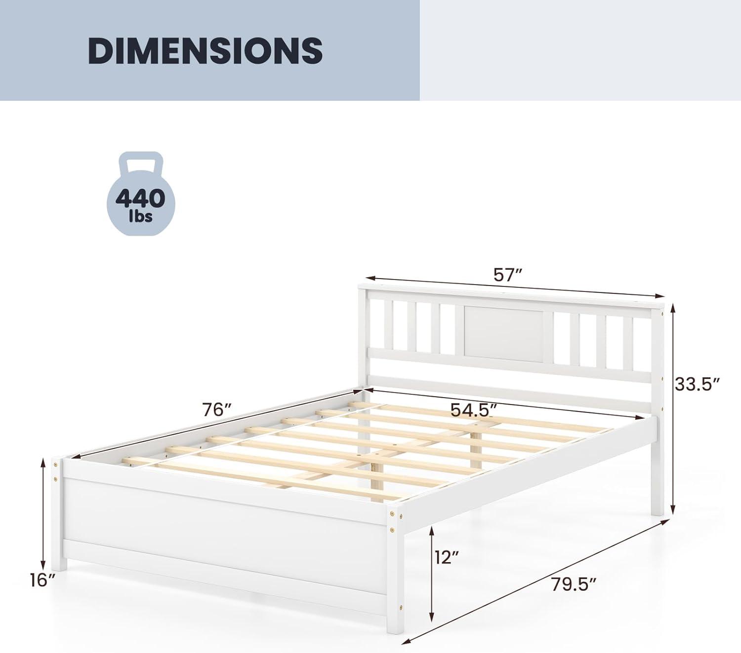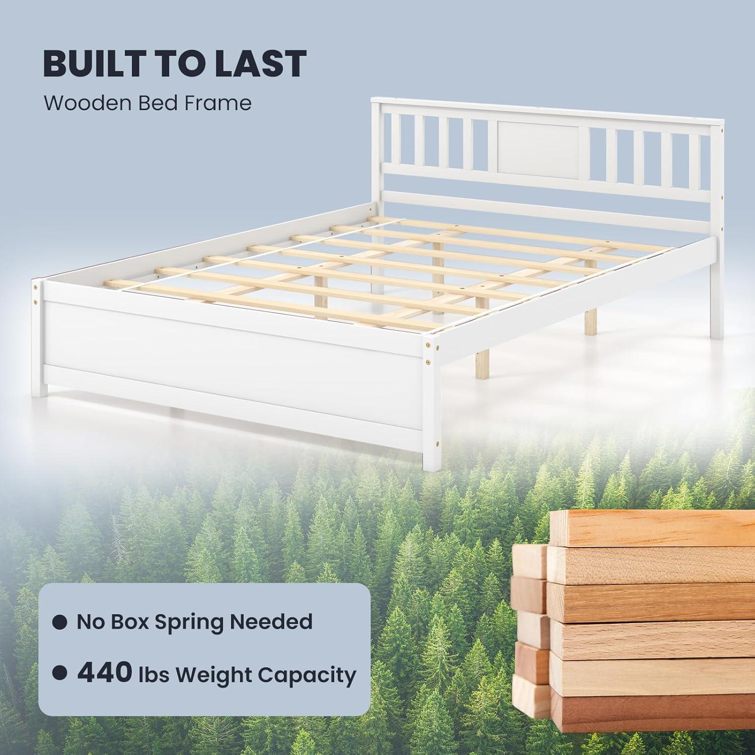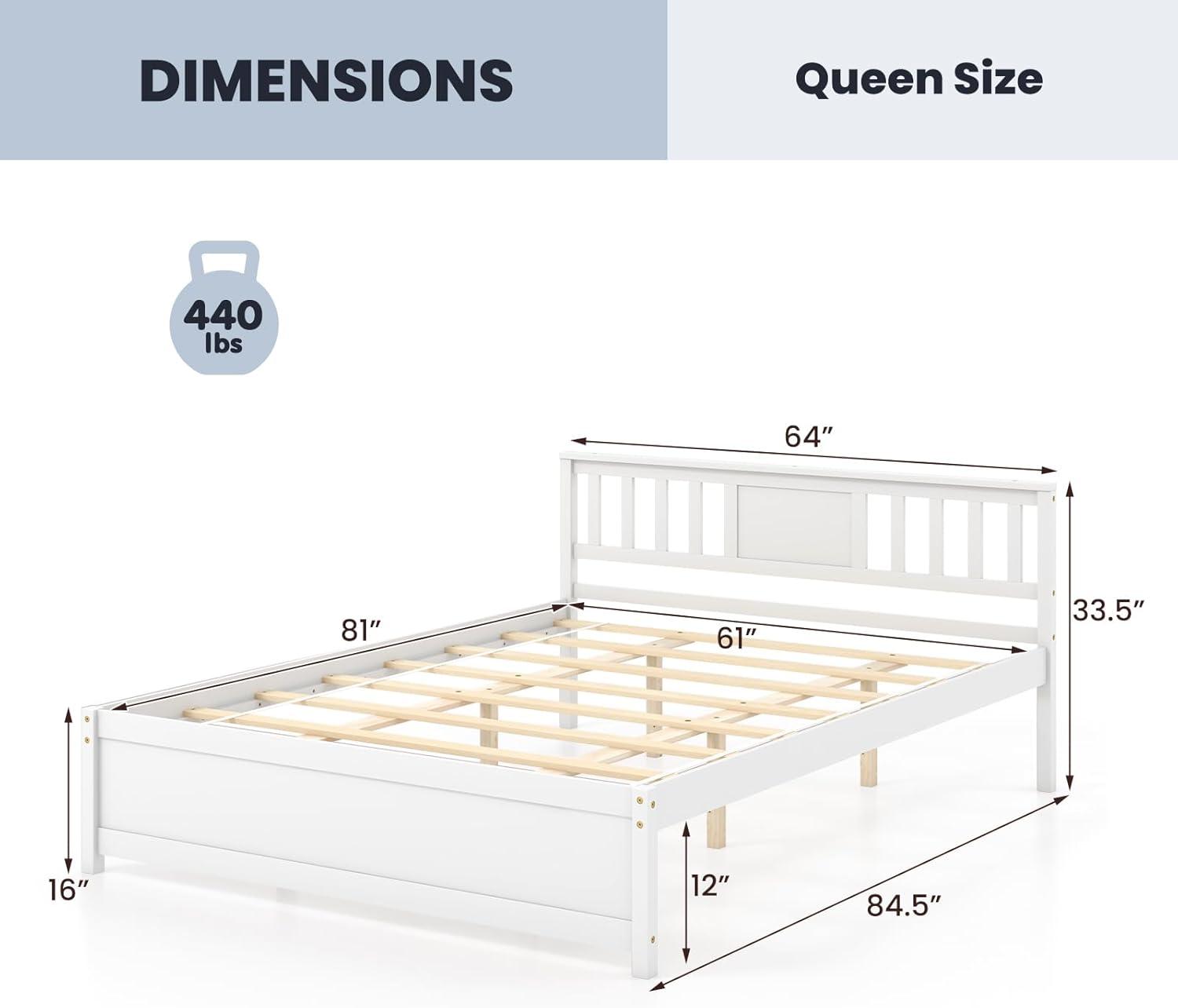 [Solid Wooden Construction]: Crafted from solid wood materials, the queen bed frame ensures long-lasting strength and stability. The platform bed that consists of 8 plywood slats provides reliable support for mattress.The bed frame features a sturdy construction that support up to 440 lbs.