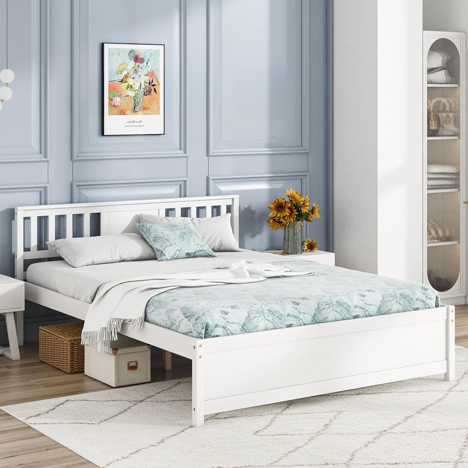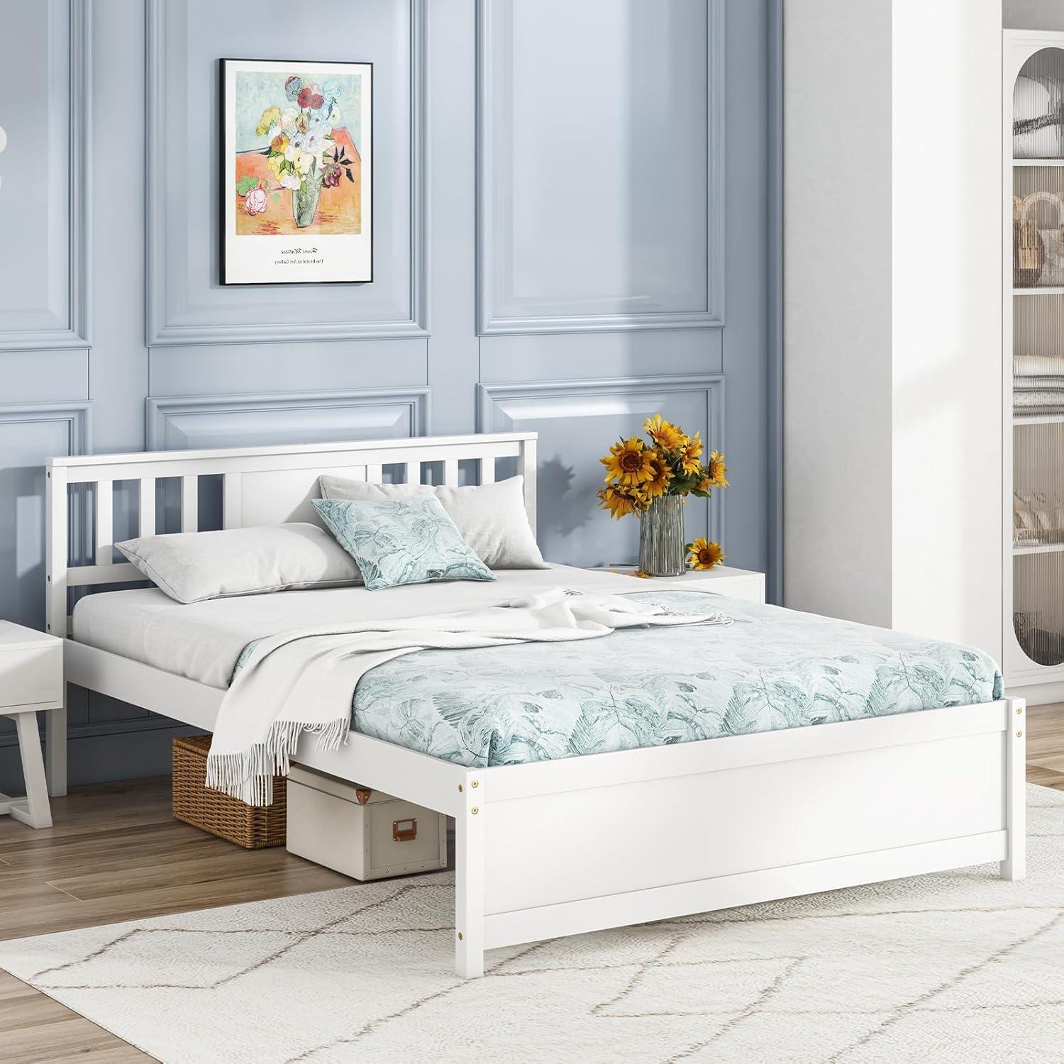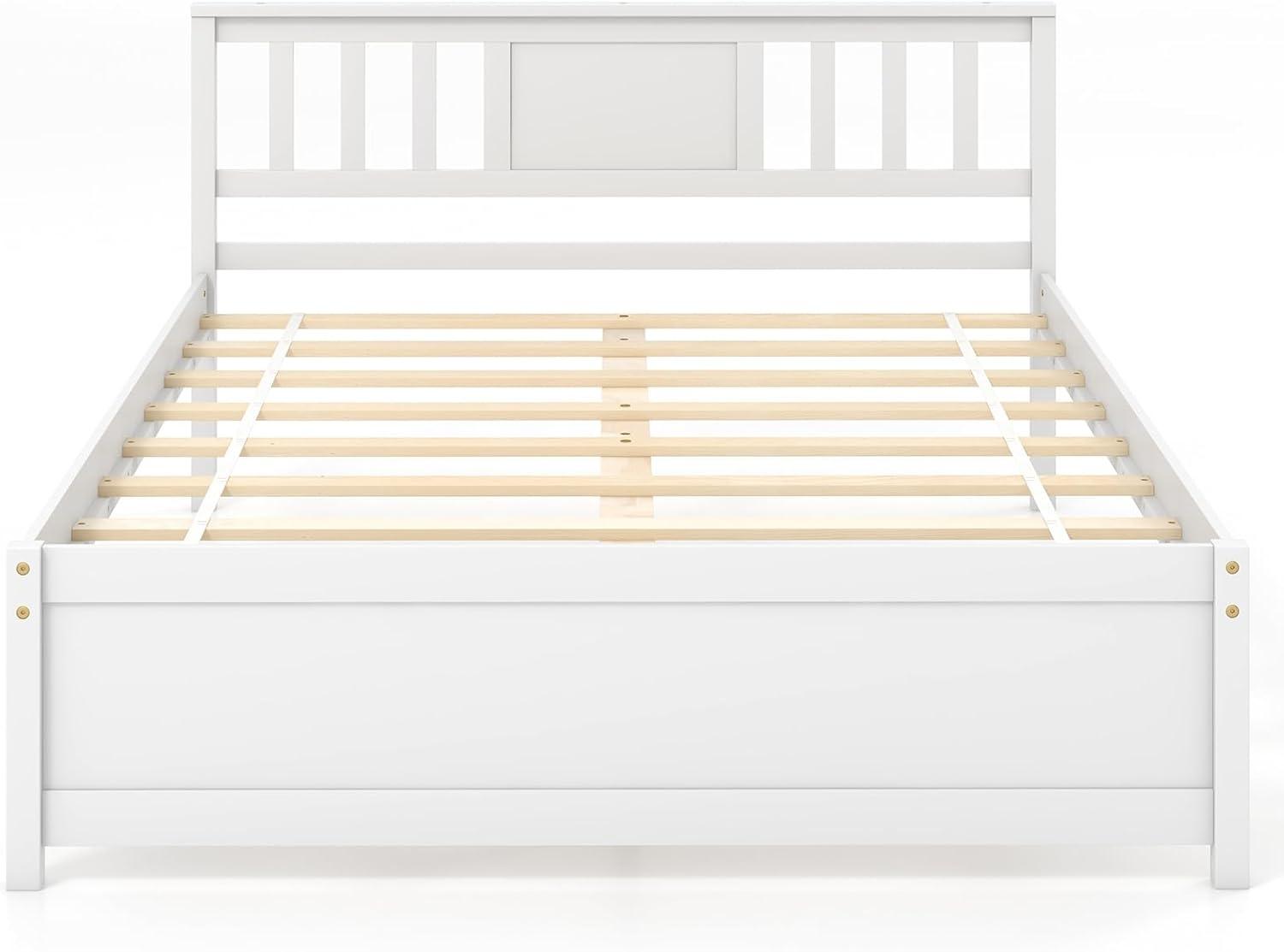 Giantex Queen Size Solid Wood Platform Bed Frame, Mid Century Queen Bed Frame with Headboard, Wood Slat Support, Panel Bed, No Box Spring Needed, Easy Assembly, Walnut(White)