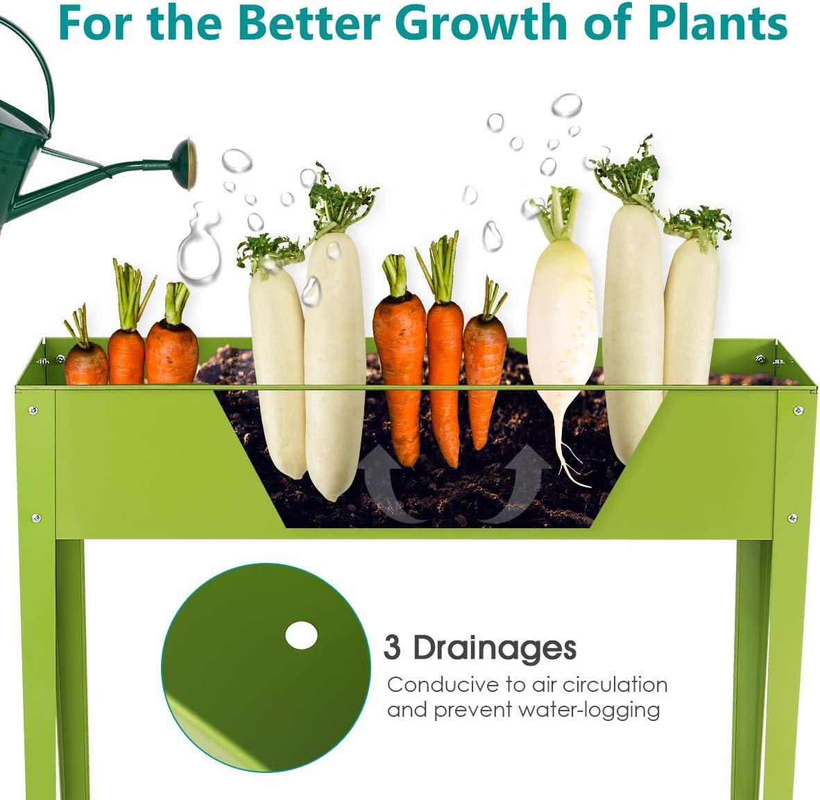 Giantex Raised Garden Bed, Elevated Planter, Metal Plant Box with Legs, Standing Garden Stand,Drainage Holes, Vegetables & Flowers Growing Container for Indoor and Outdoor Use (40''L x13W'' x 31.5''H)(25"Lx13W"x18"H)