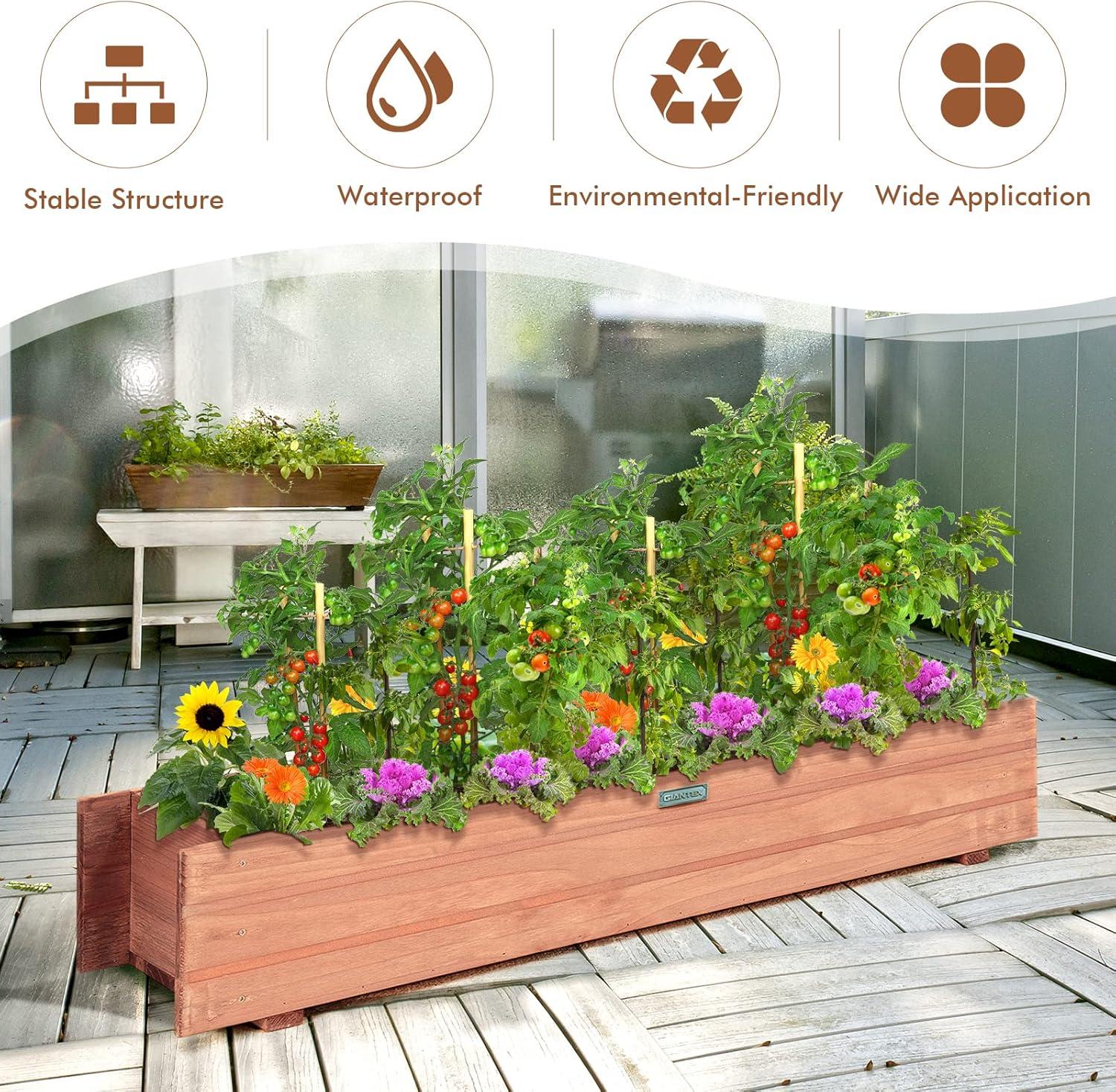 imageGiantex Raised Garden Bed Flower or Vegetable Planter Window Mounted Plant Box for Garden Yard Wood Box for Planting 28quot LX9 WX10 H36LX7WX65H