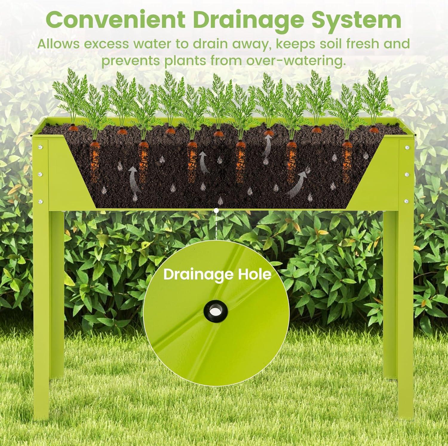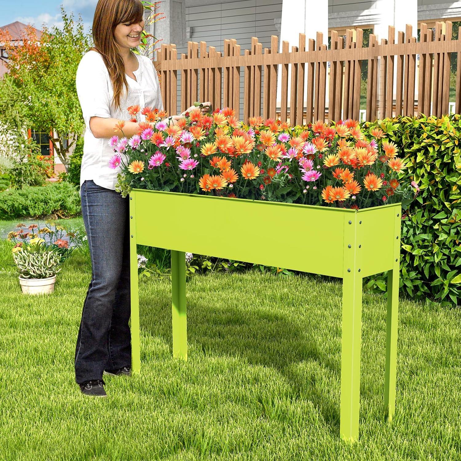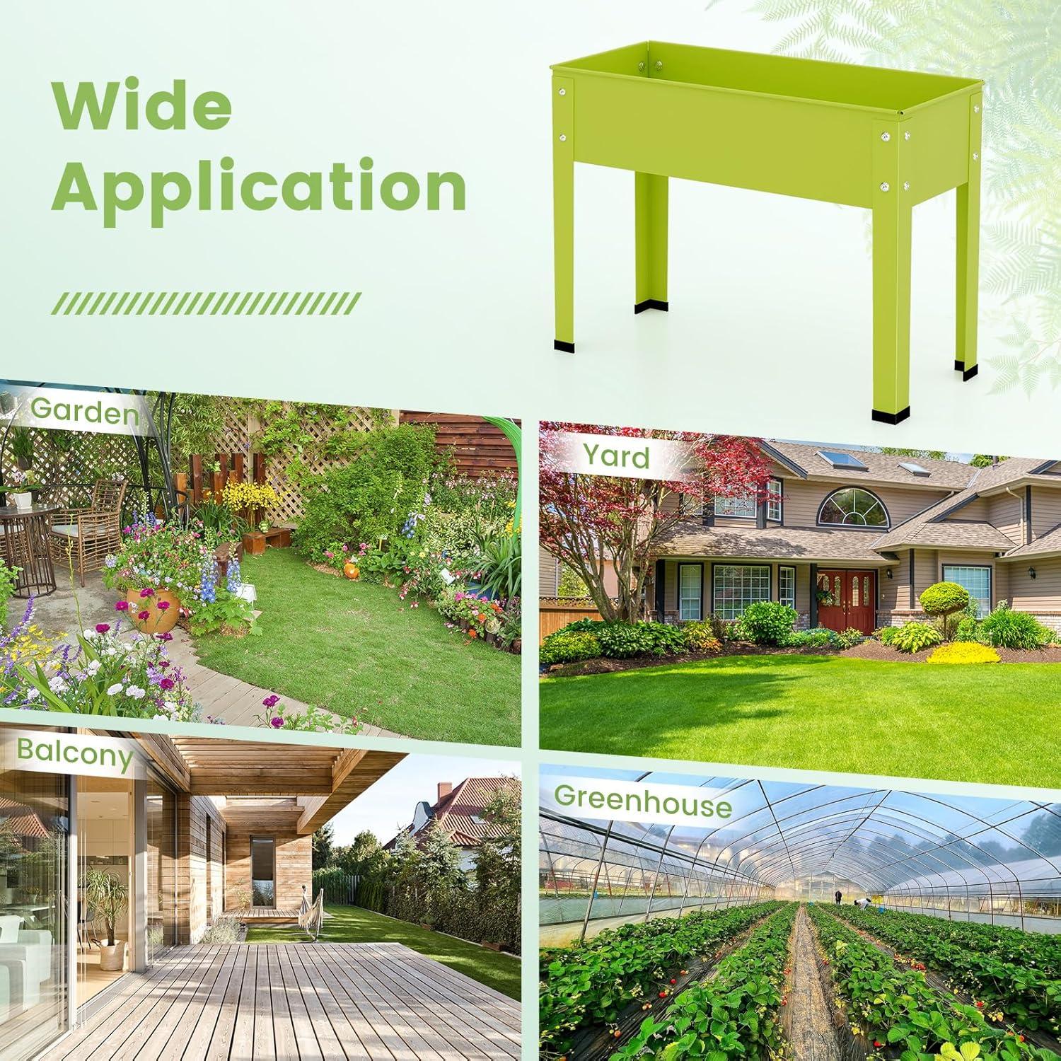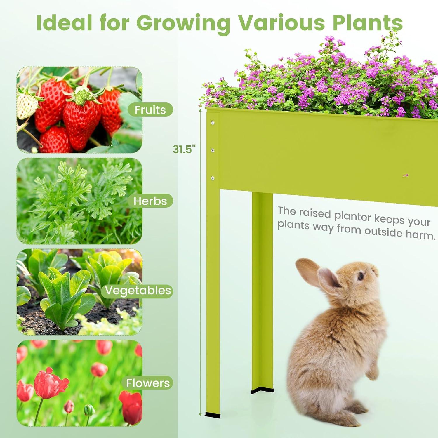 Giantex Raised Garden Bed, Metal Planter Box with Legs, Drain Hole, Outdoor Indoor Elevated Garden Box for Vegetable Flower Herb Fruit, Standing Raised Beds for Backyard Porch Balcony Green(Green)