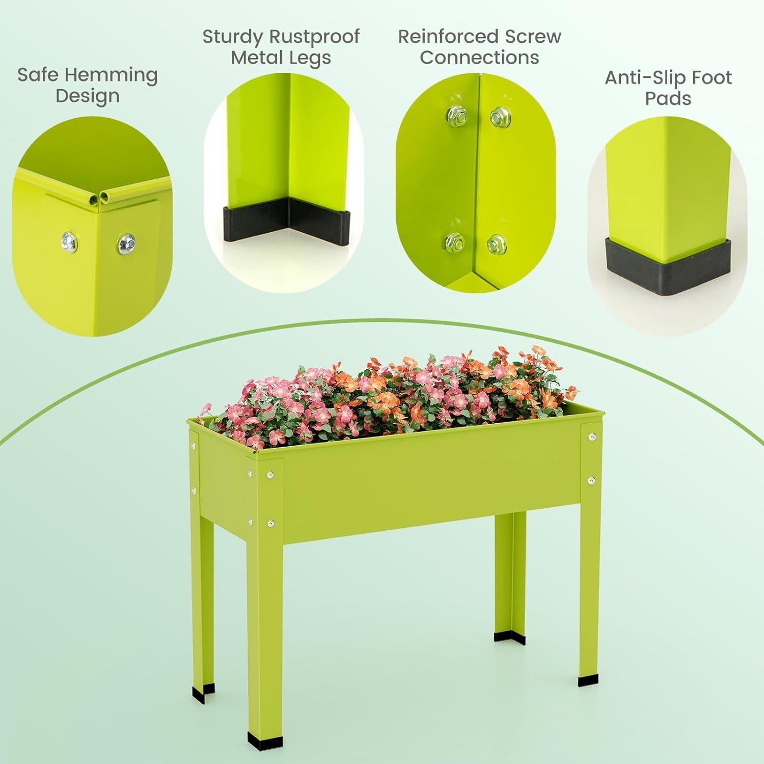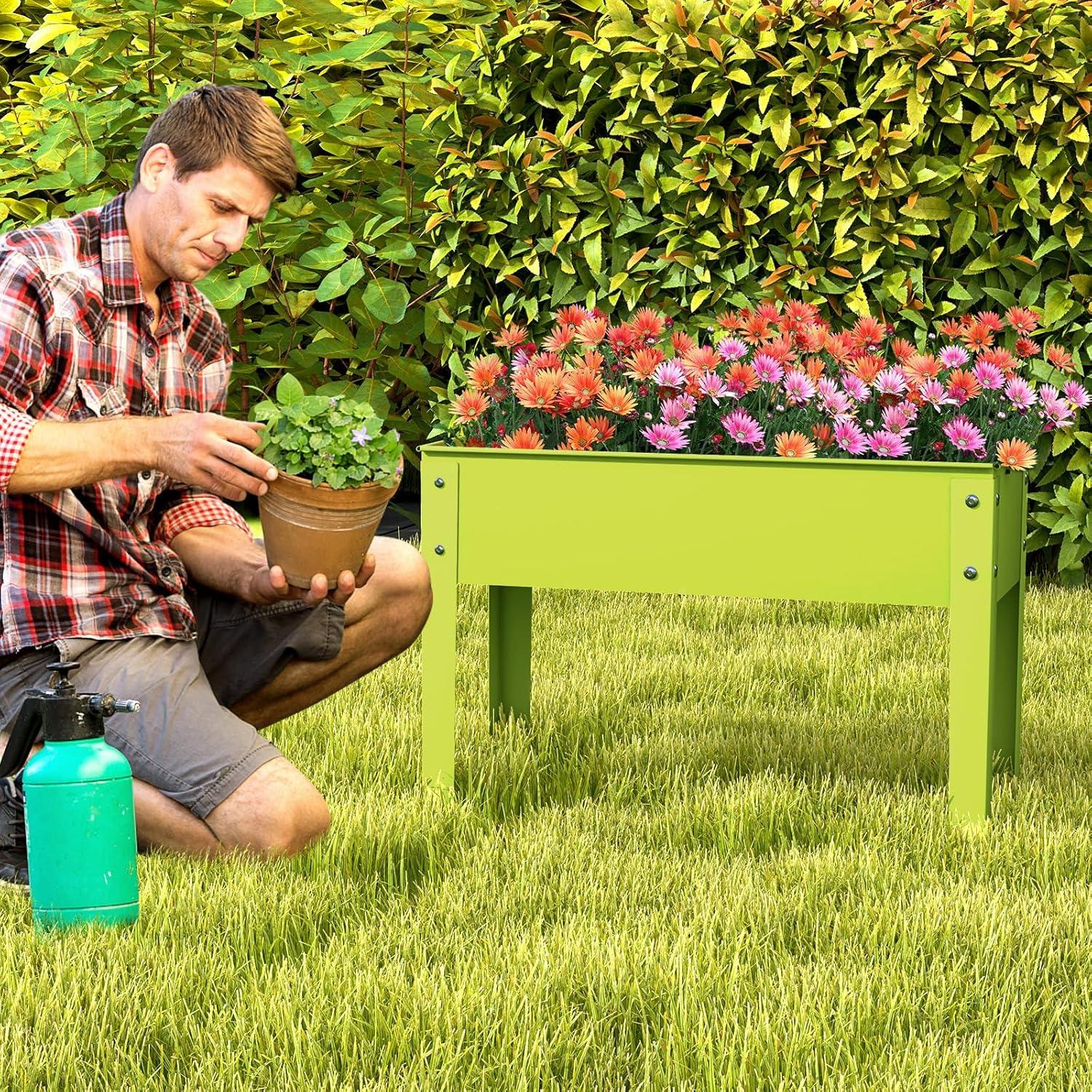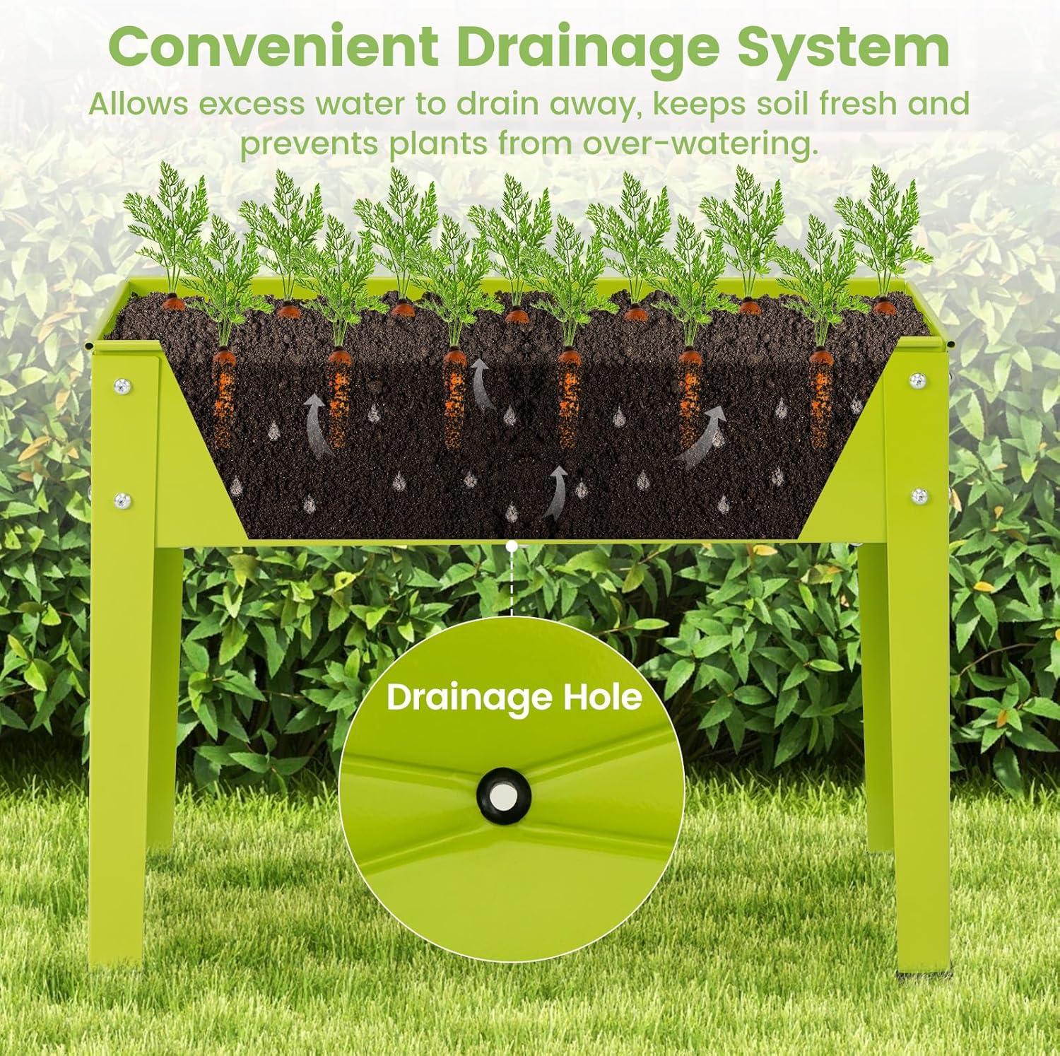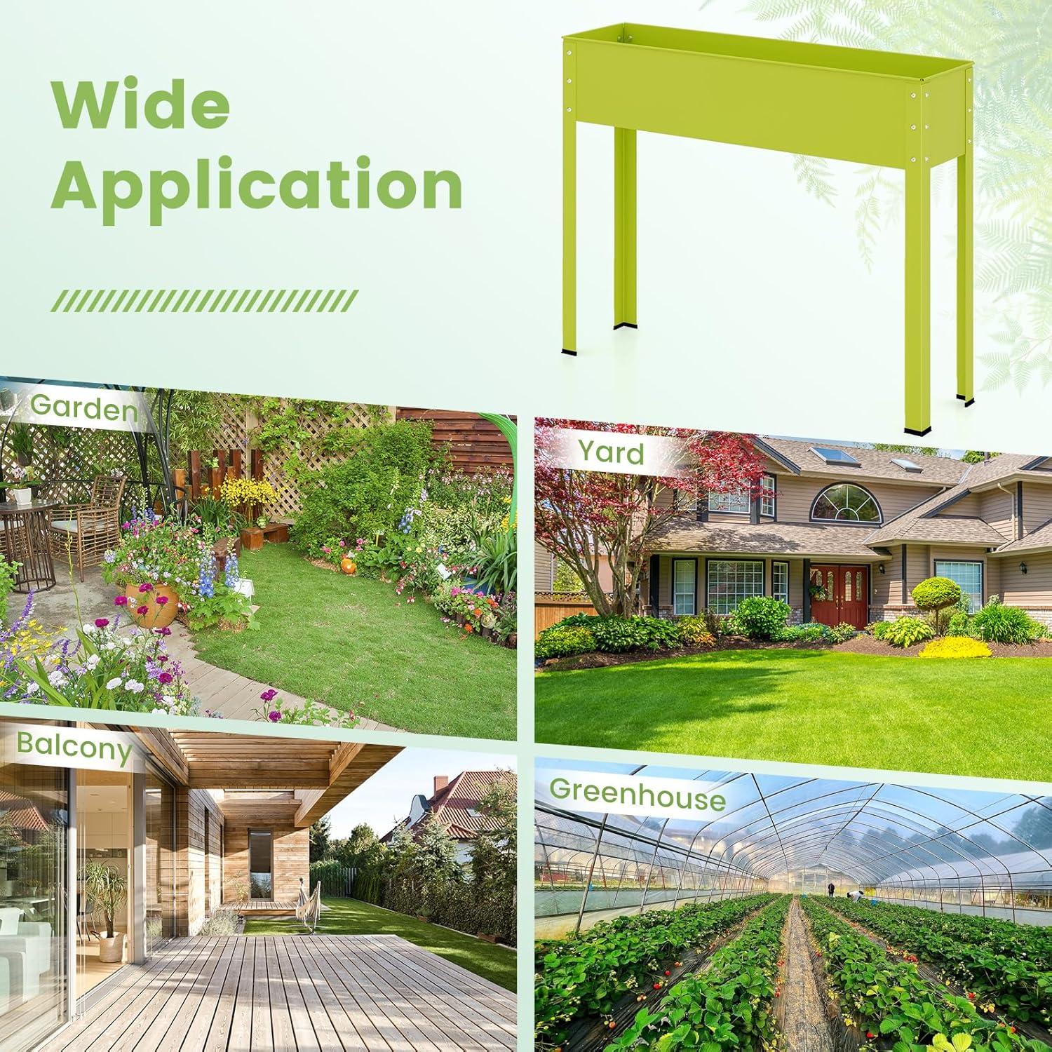 Giantex Raised Garden Bed, Metal Planter Box with Legs, Drain Hole, Outdoor Indoor Elevated Garden Box for Vegetable Flower Herb Fruit, Standing Raised Beds for Backyard Porch Balcony Green(Green)