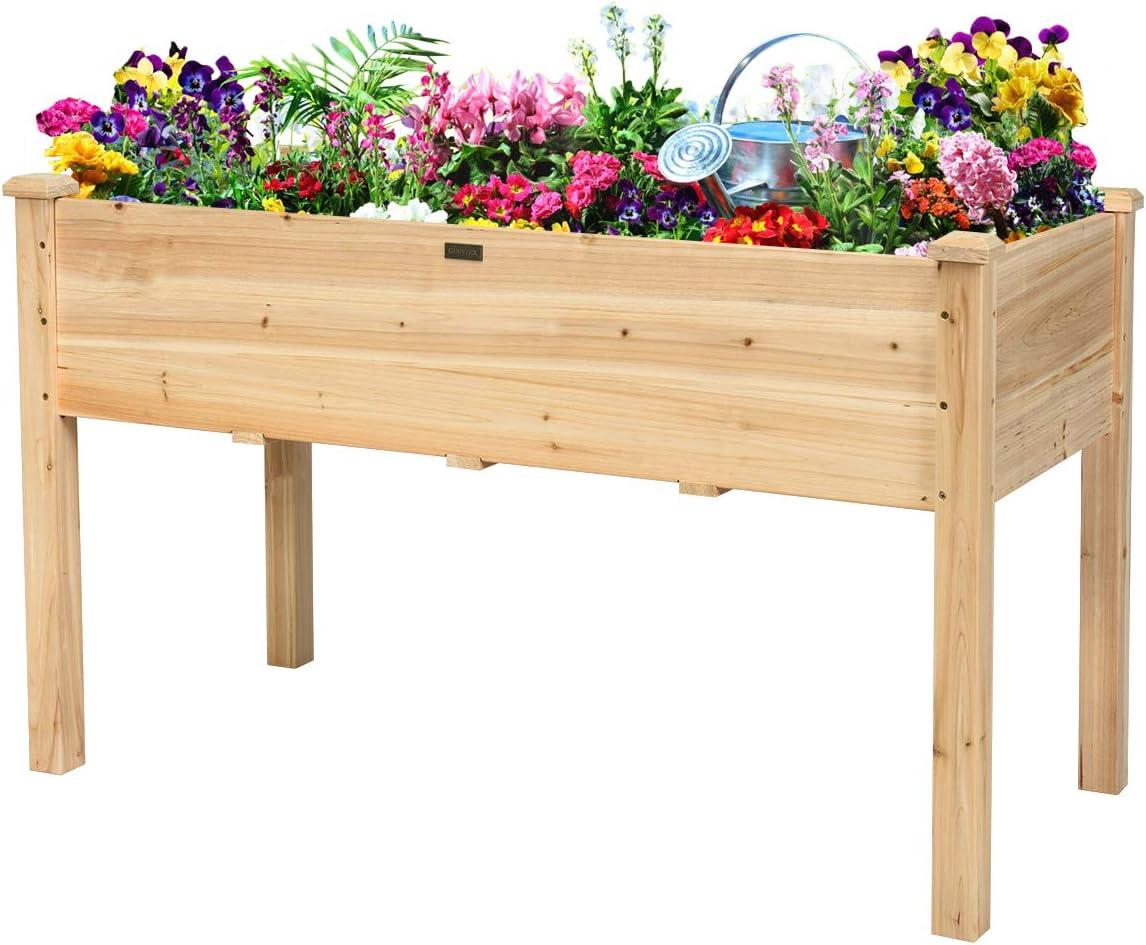 Giantex Raised Garden Bed on Wheels, Wood Planter Box with Legs, Liner, Drain Holes, Elevated Garden Bed for Vegetables, Standing Garden Container for Backyard, Patio, 47.5″ LX 23.5″ WX 33″ H(47.5″LX 23.5″WX 33″H)