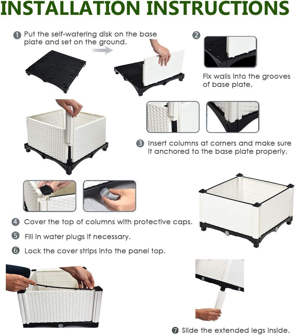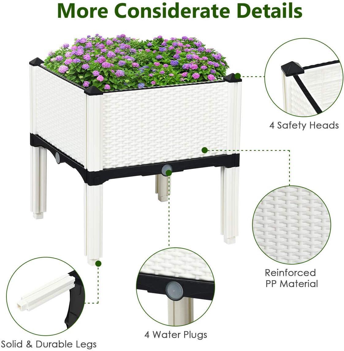 【Self-watering Device】: The garden bed is equipped with self-watering disk and drain holes, which provide space for reserving excess water and allowing roots to absorb water and nutrition completely. And each side of box has a water plug for draining or retaining excess water easily.