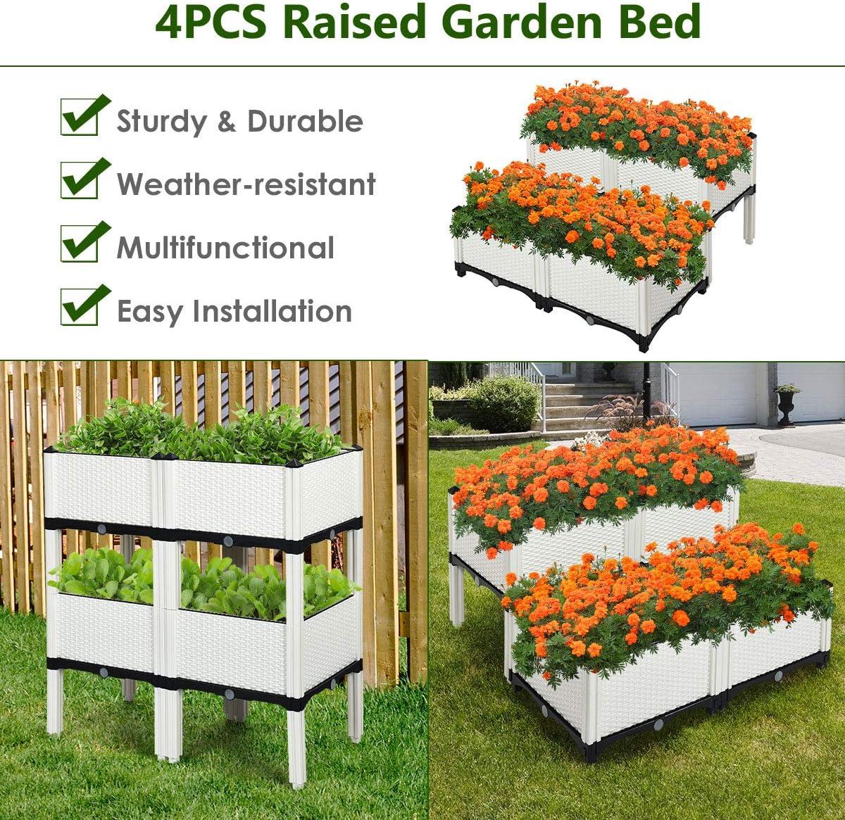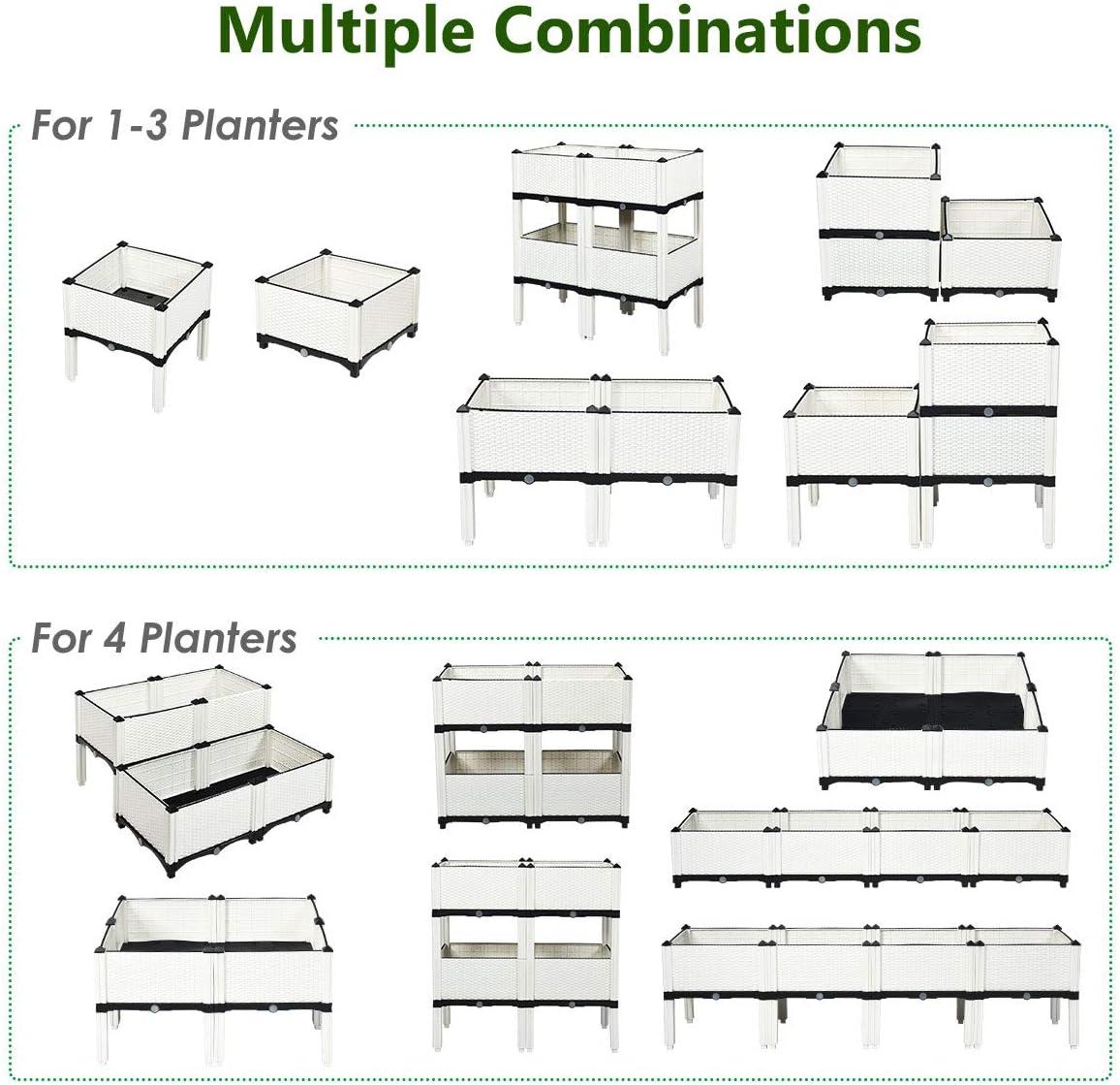 Giantex Raised Garden Bed, Set of 4 Planter Raised Beds Kits with Drain Holes for Fruit Flowers Vegetables, Outdoor Elevated Planting Box for Lawn Patio Balcony, Easy Assembly, Rattan-Like Look, Brown(White)