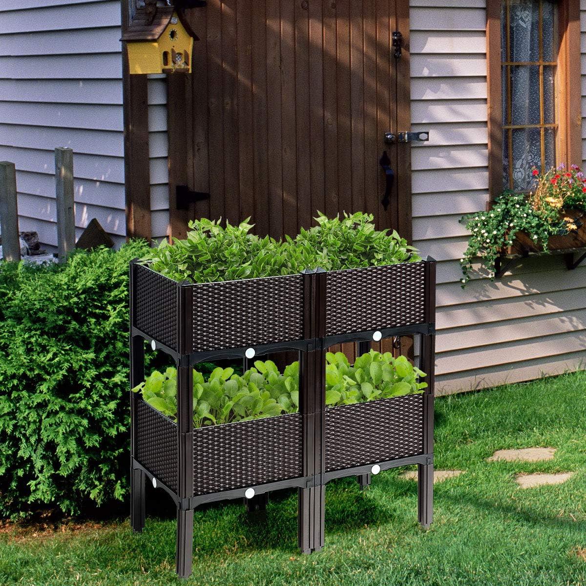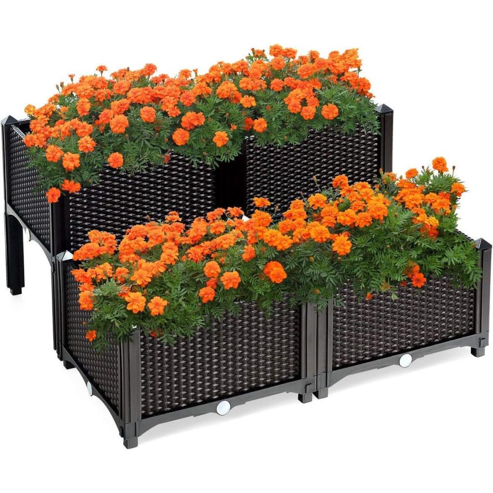 【Reinforced Material for Durable Use】: Made of premium polyethylene, the raised garden box is sturdy and not easy to be deformed. And these planters not only contact with soil and water well but they also not deteriorated by the weather outdoors to provide long time service for you.