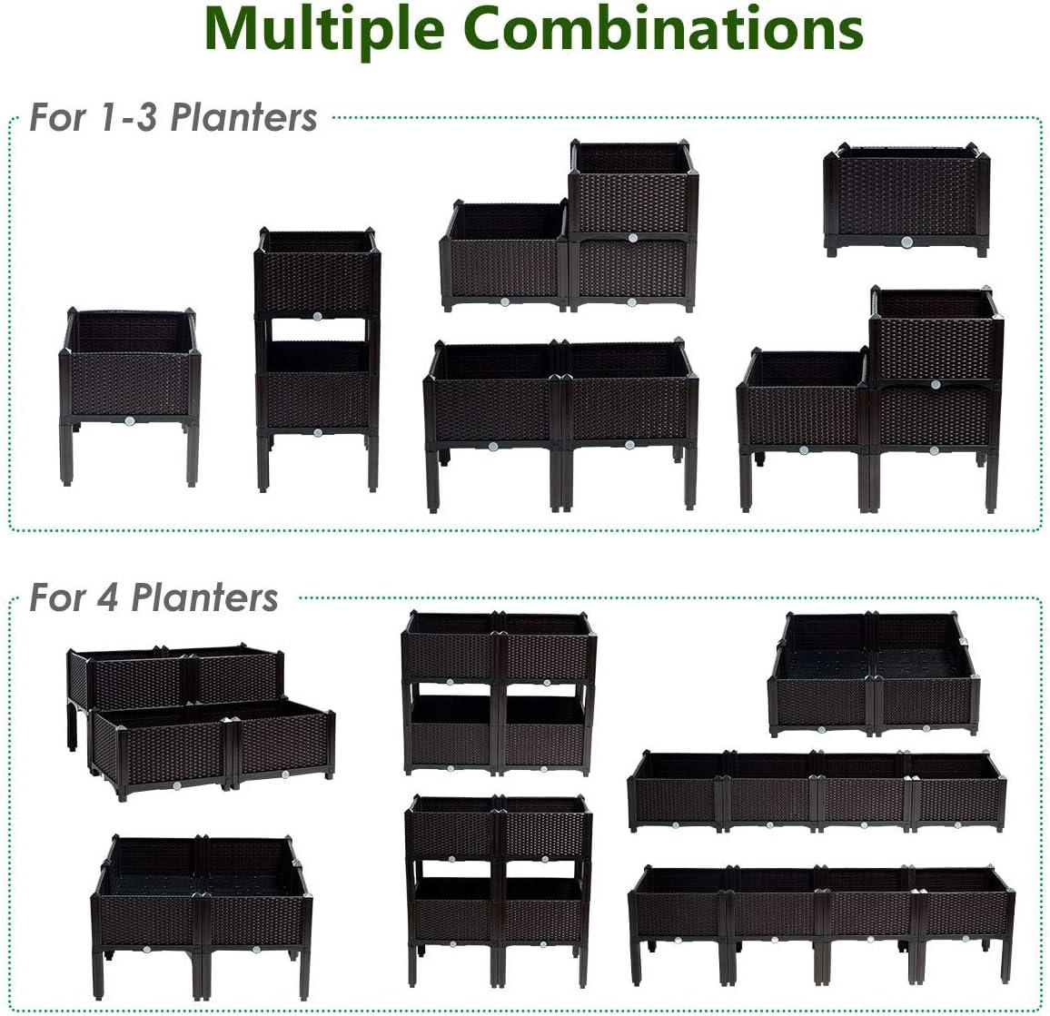 【4 Planters for Various Combinations】: There are four planter boxes which can be installed in a variety of shapes. Multiple pieces of planter boxes can be used to produce large square or rectangle garden bed. And two beds are easy to stack to create higher wall for special plants.