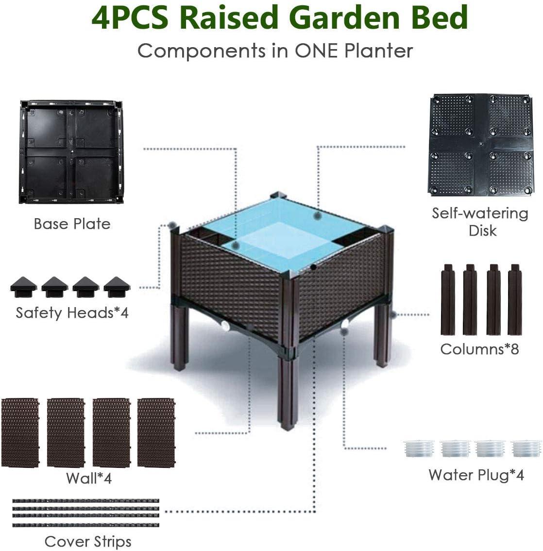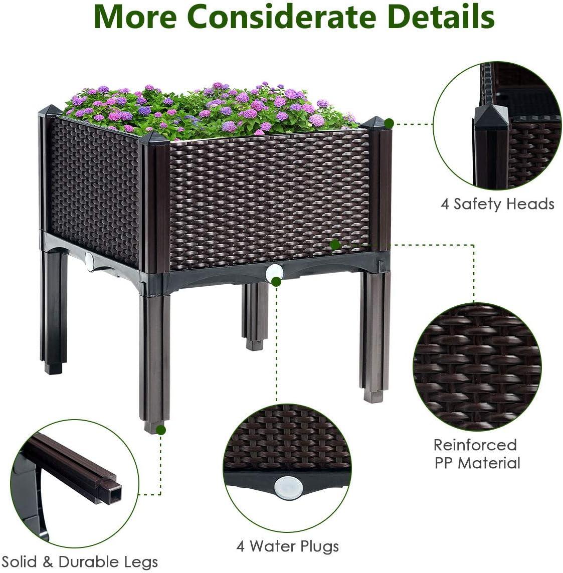 【Self-watering Device】: The garden bed is equipped with self-watering disk and drain holes, which provide space for reserving excess water and allowing roots to absorb water and nutrition completely. And each side of box has a water plug for draining or retaining excess water easily.