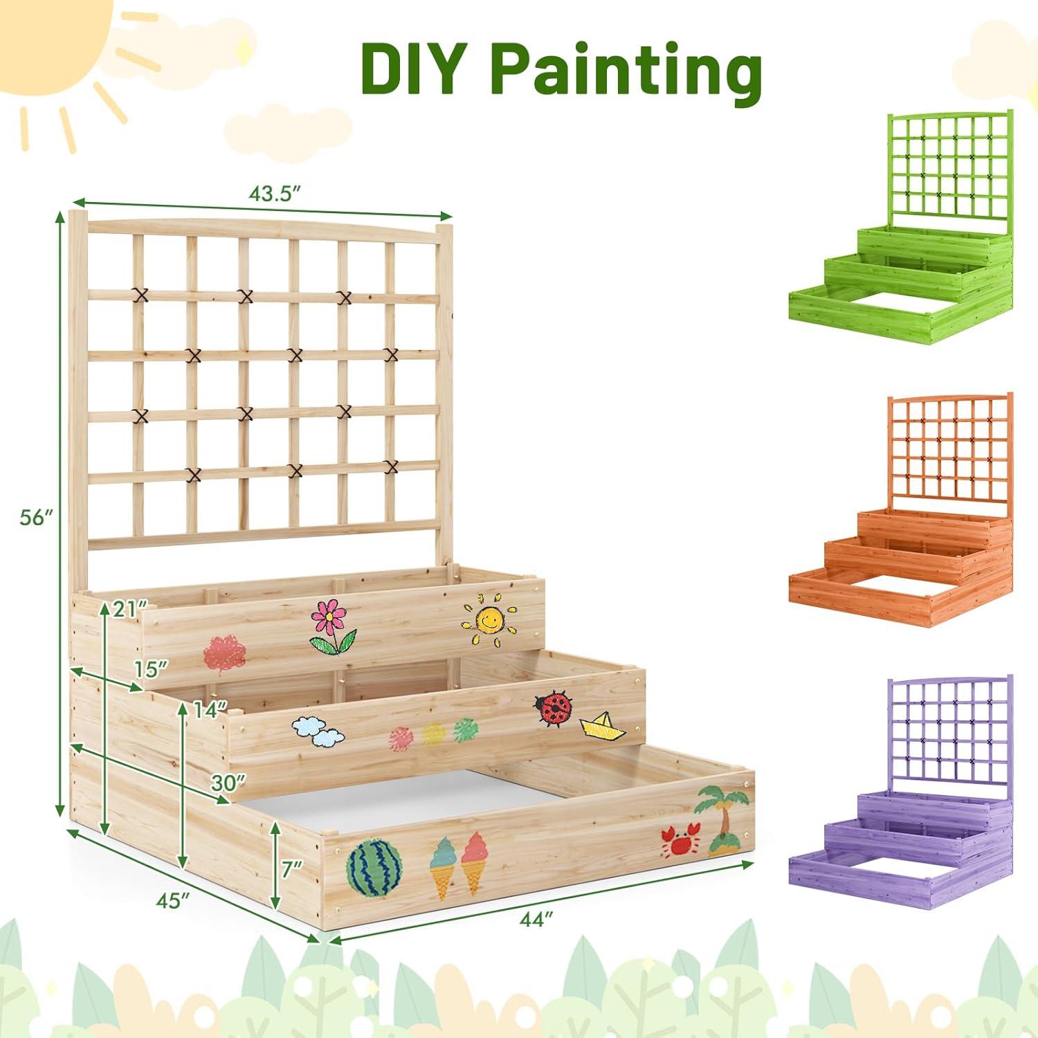 [Customizable Garden Experience]: Equipped with convenient and flexible dovetail interlocking joints, this planter allows you to choose any side to assemble the trellis on and has 4 sides slots on each corner post for unlimited connections. You can also paint the planter in your favorite color for seamless integration into your garden.