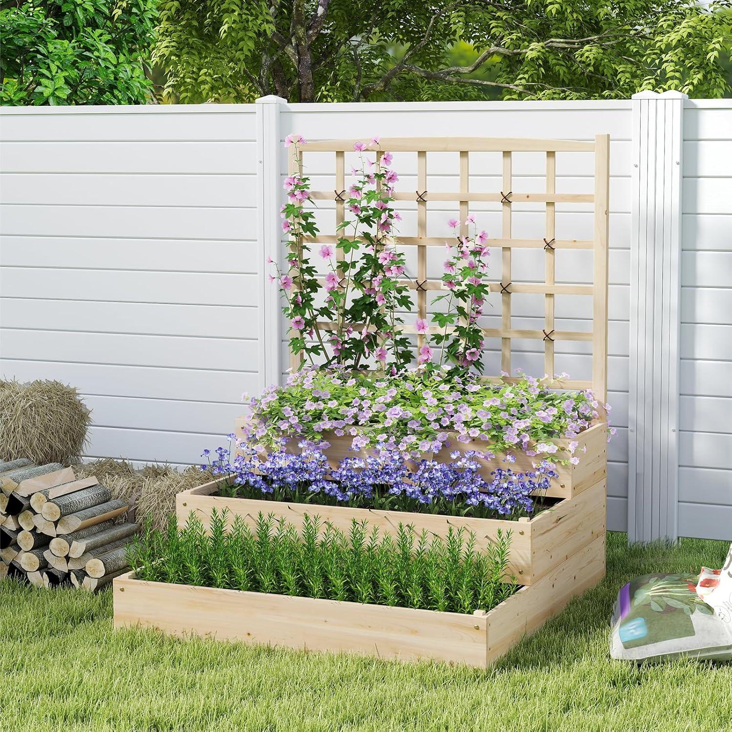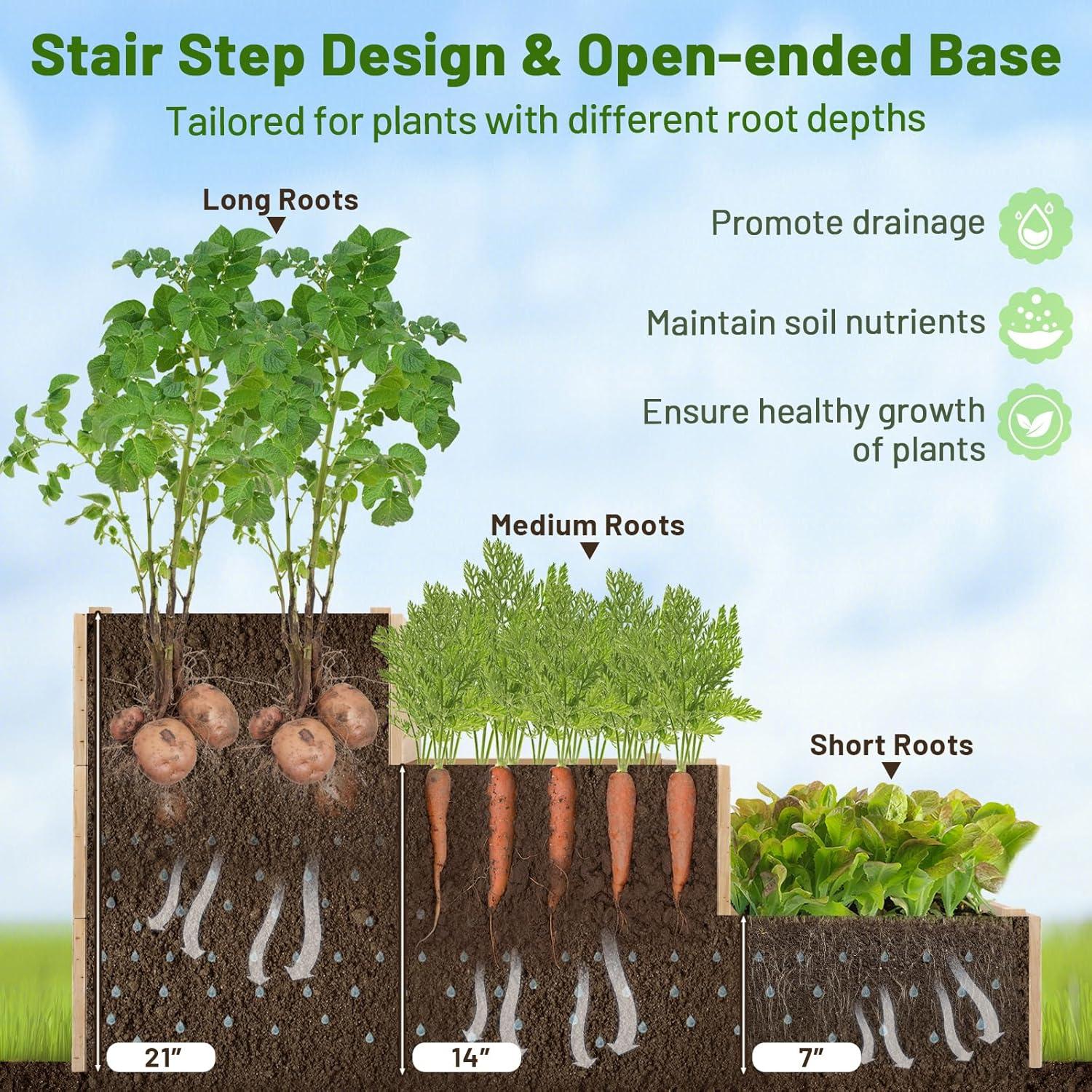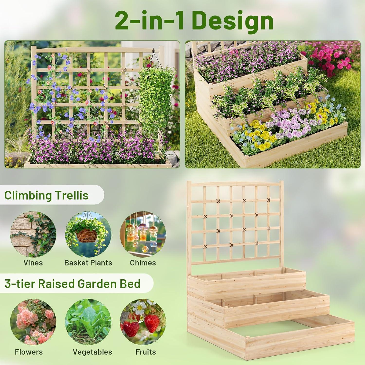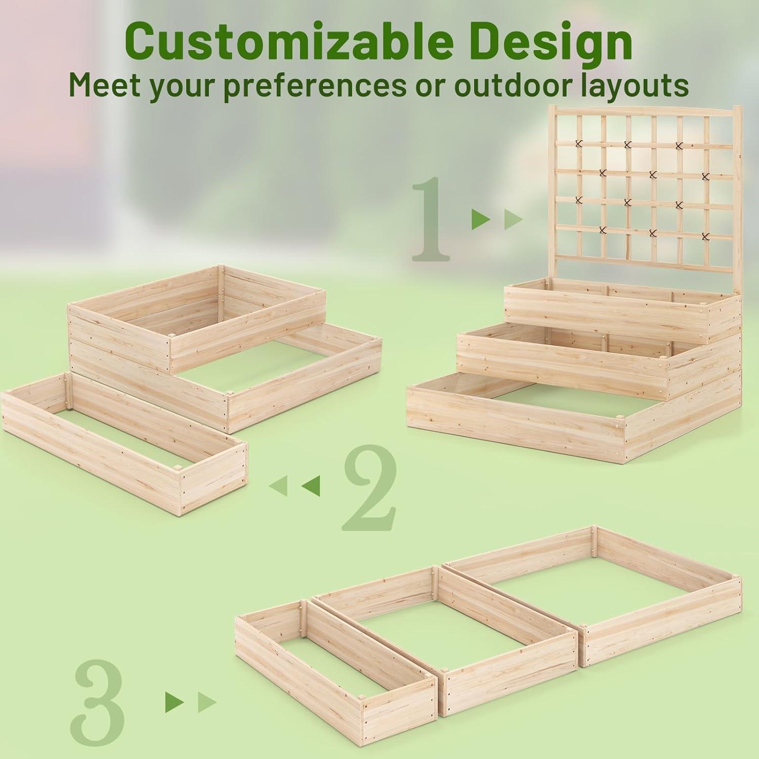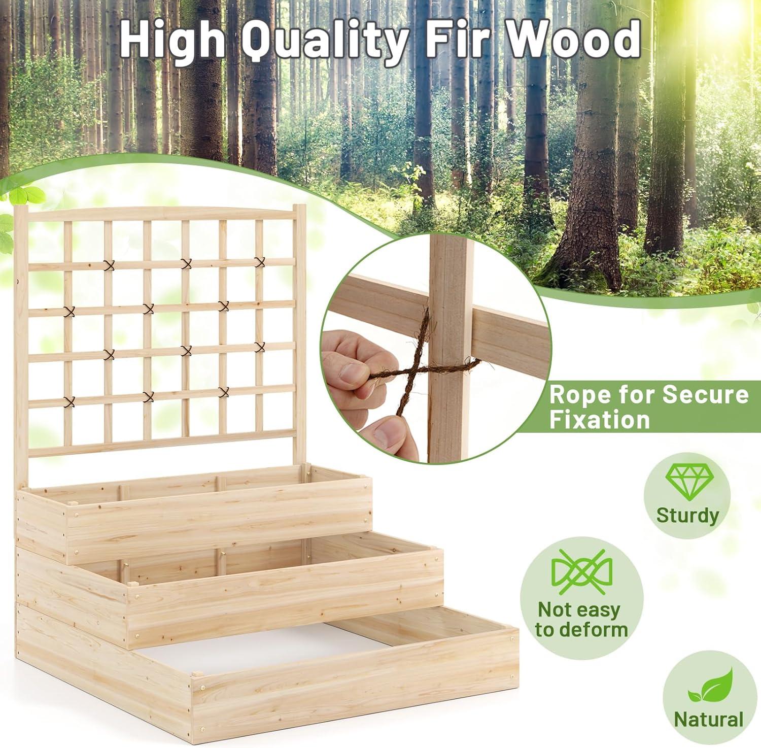 [100% Natural Fir Wood]: Made from natural fir wood, our raised garden bed is constructed with solid side panels that promise a long life in outdoor environments. In addition, the planter offers a smooth, paint-free surface, making it a safe and environmentally friendly choice.