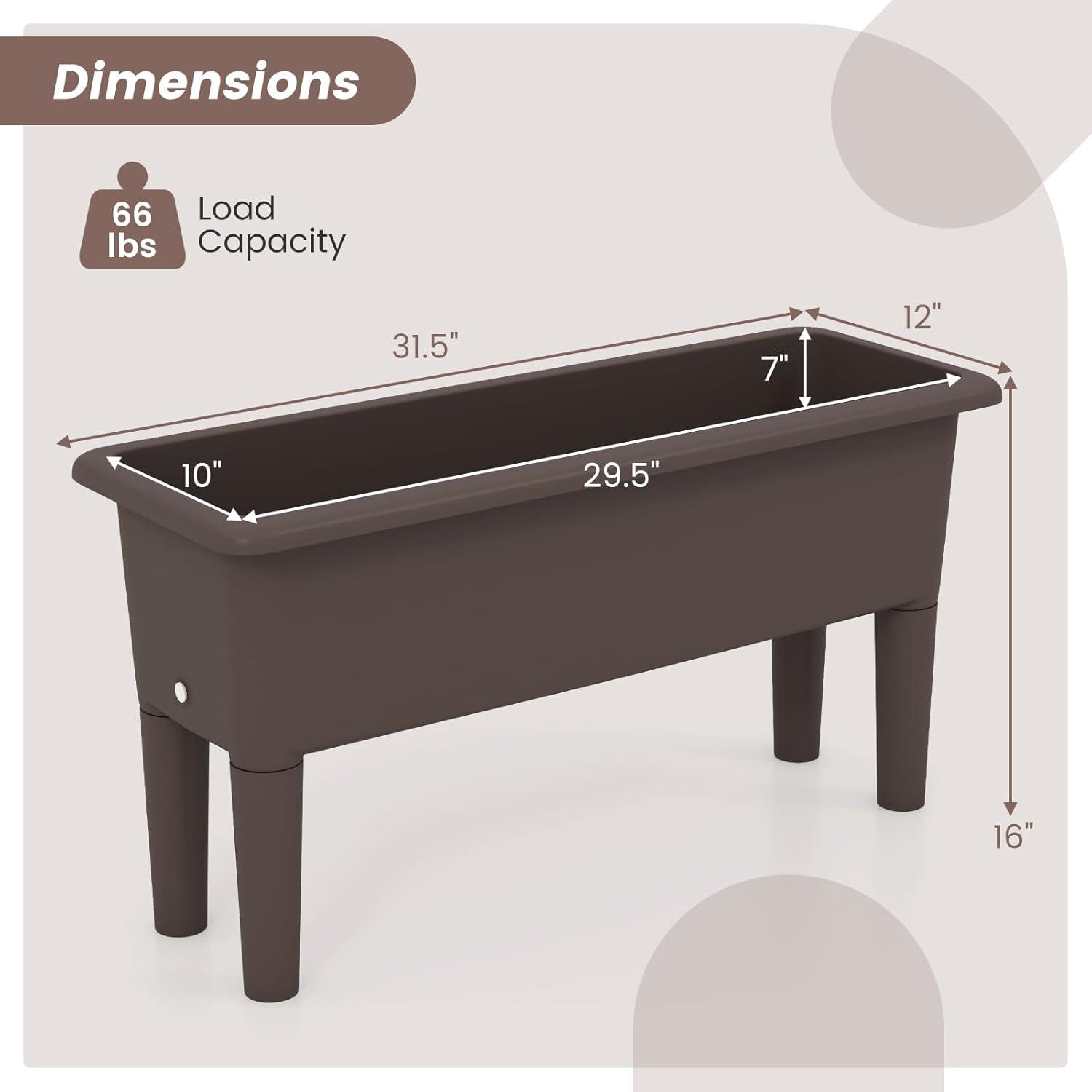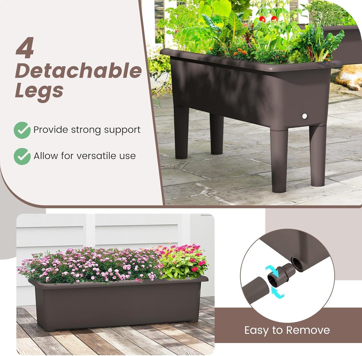 Discover a gardening revolution with our self-watering elevated planter box, boasting a roomy 7.7-gallon capacity tailored for a myriad of plant varieties. The integrated 1.1-gallon water reservoir and strategic drainage hole fortify plant health while simplifying care. Constructed with PP, this plant container is anti-fading, all-weather, and anti-crack. The elevated design, complete with detachable legs, caters to ease of use. Enjoy the breeze of gardening with easy assembly and minimal upkeep, allowing you to indulge in your greenery with ease.