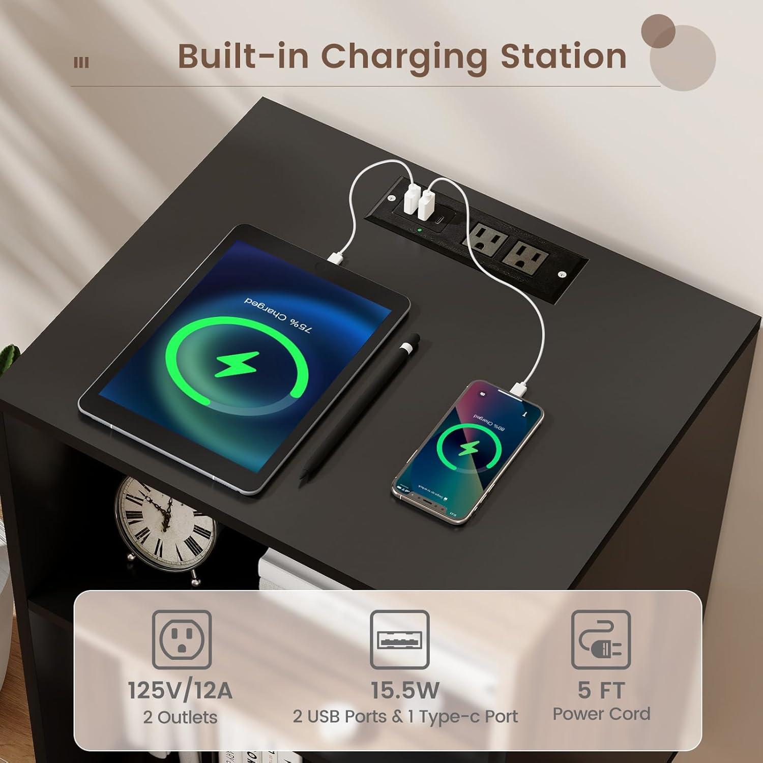 [Enhance Your Vinyl Listening Experience]: Step into the rich sounds of vinyl with our versatile record player table, equipped with a built-in power strip featuring 2 outlets, 2 USB ports, and 1 Type-C port. Charge your devices seamlessly while enjoying your favorite music.