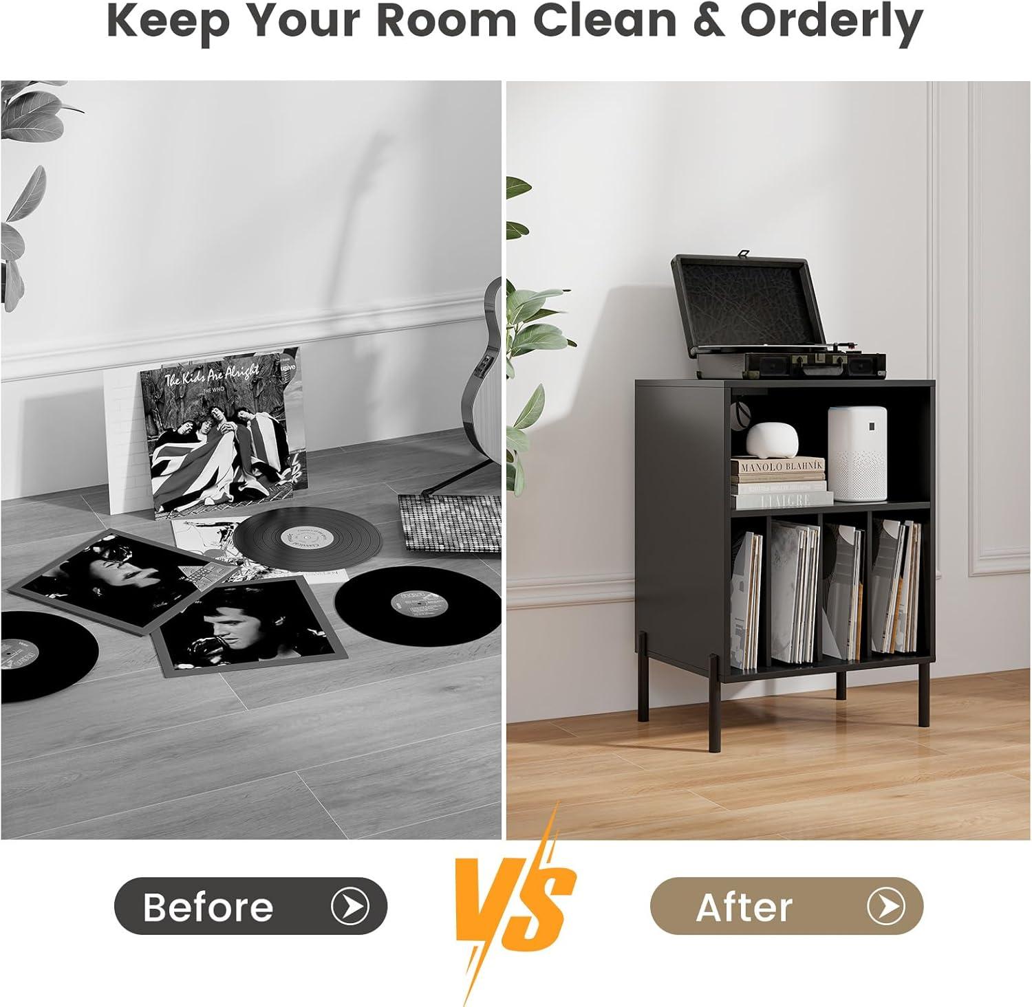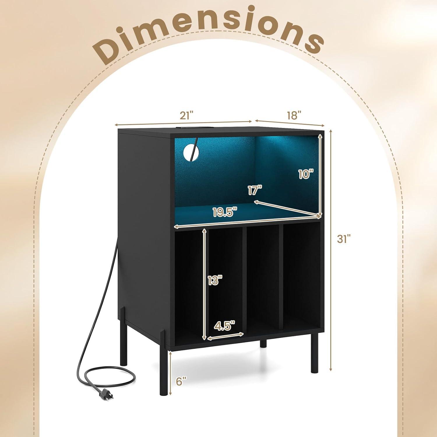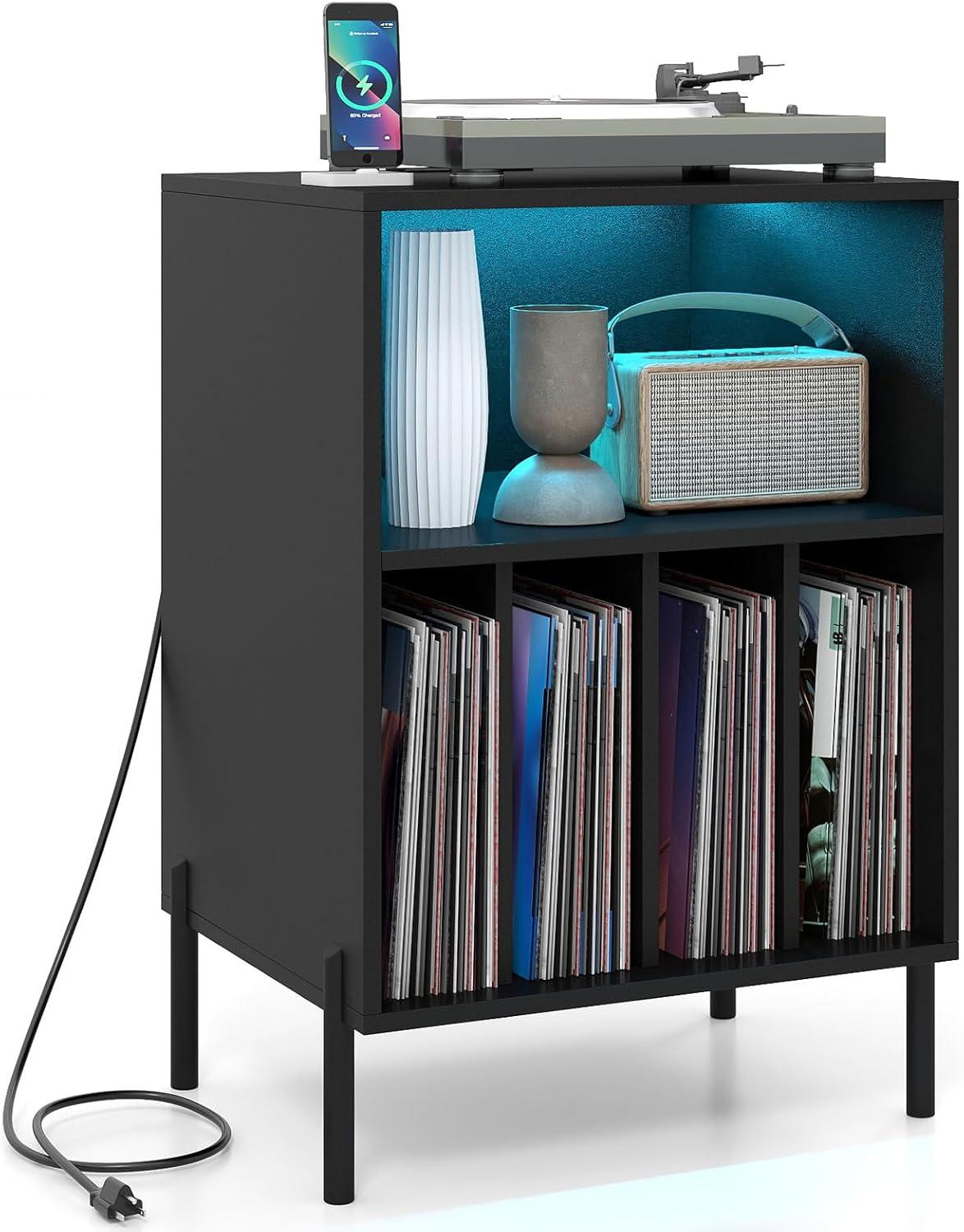 Giantex Record Player Stand with Charging Station, Turntable Stand with Storage Cabinet, Record Player Shelf with Metal Legs, Vinyl Record Storage up to 150 Albums for Living Room, Bedroom (Black)(Black)