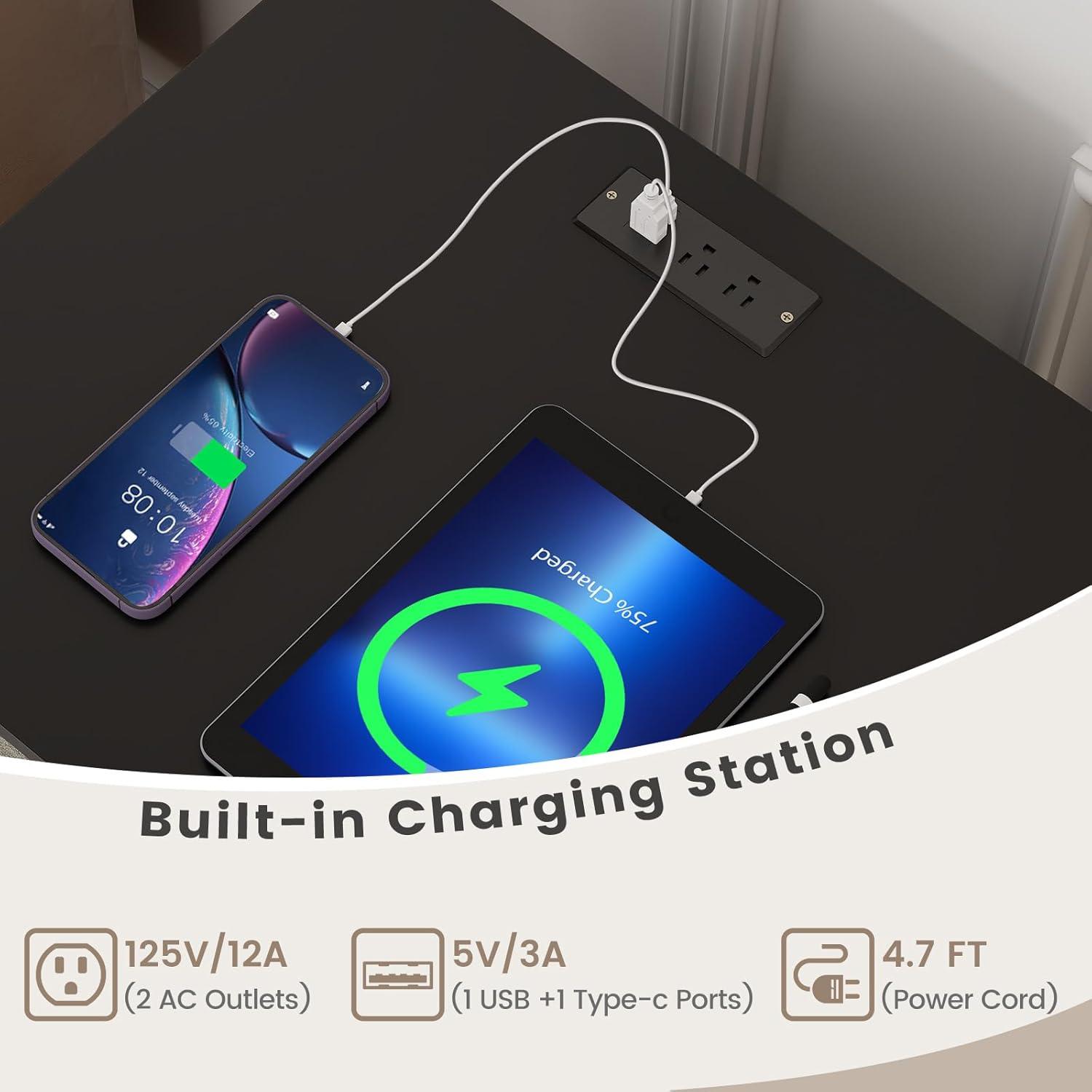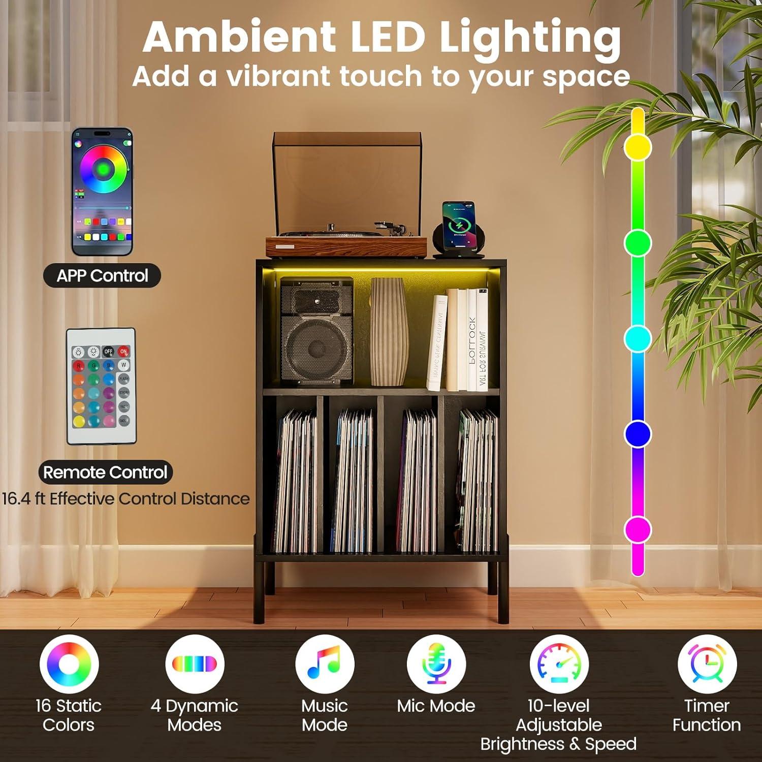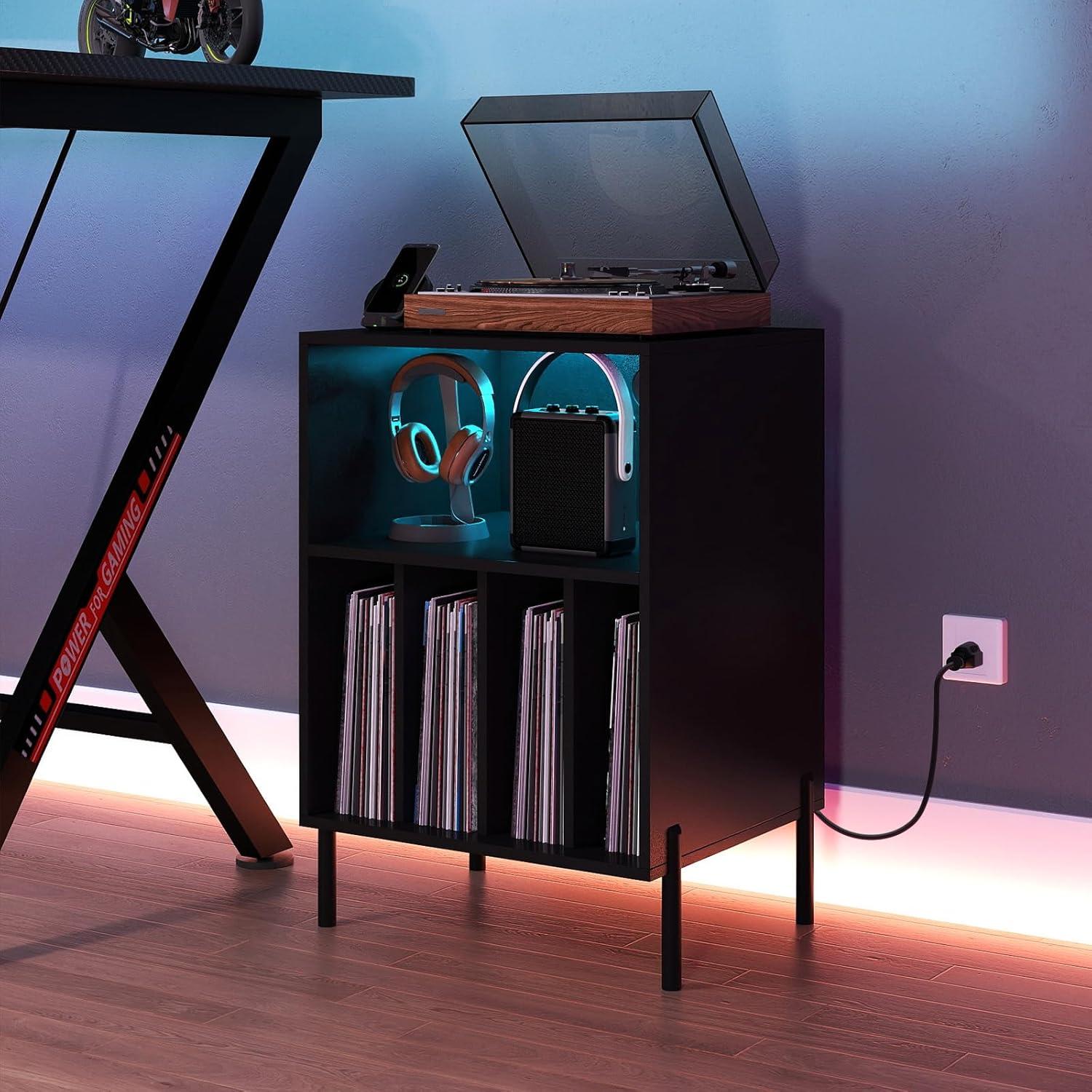 Giantex Record Player Stand with Charging Station, Turntable Stand with Storage Cabinet, Record Player Shelf with Metal Legs, Vinyl Record Storage up to 150 Albums for Living Room, Bedroom (Black)(Black)