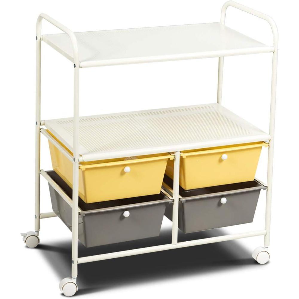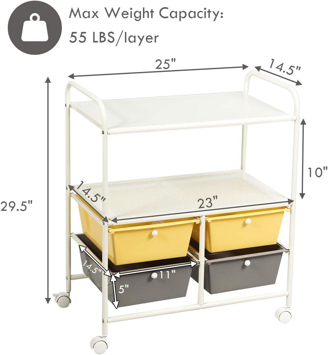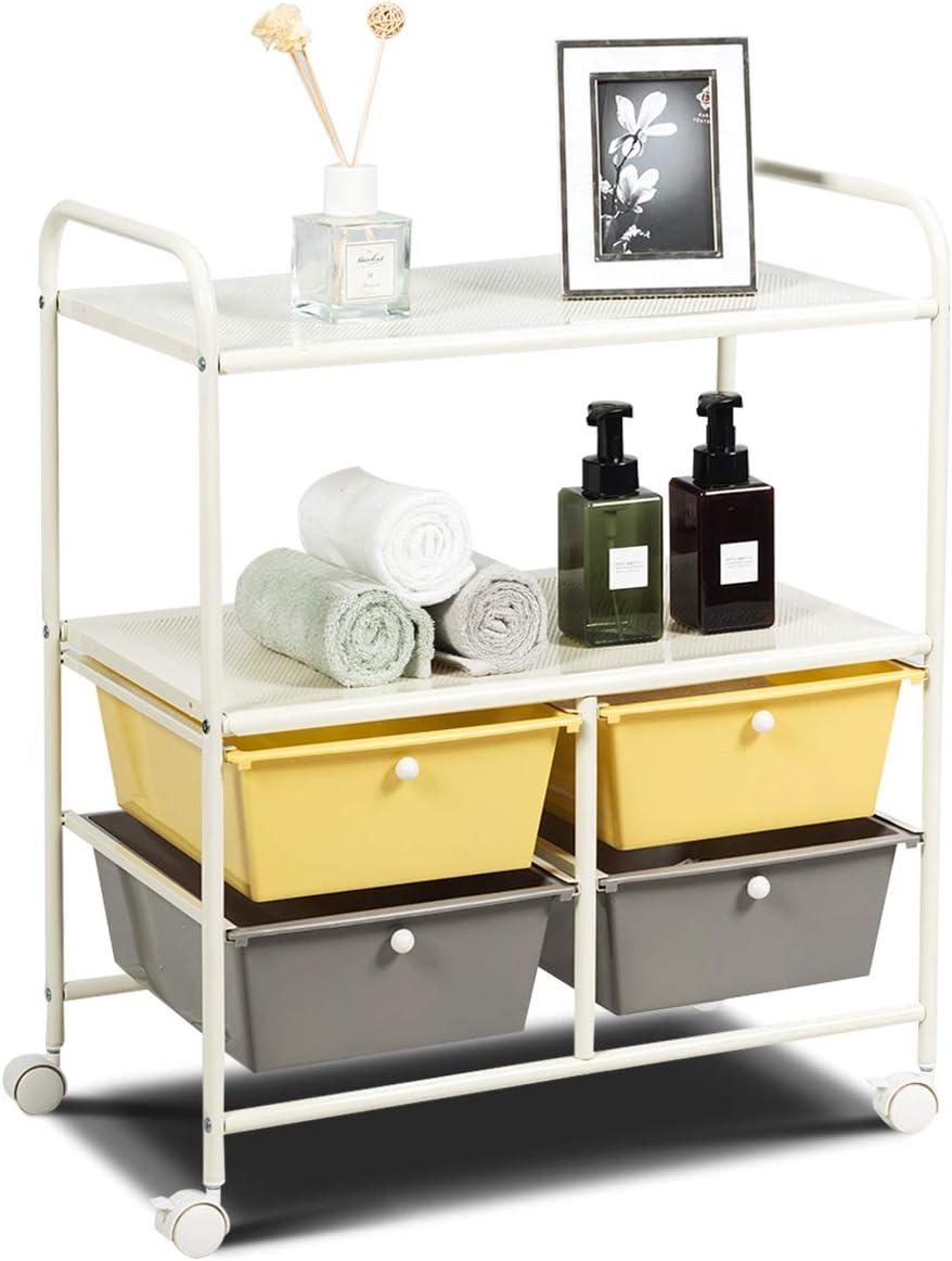 Giantex Rolling Storage Cart w/ 4 Drawers 2 Shelves Metal Rack Shelf Home Office School Beauty Salon Utility Organizer Cart with Wheels (Yellow)(Beige+Yellow+Grey)