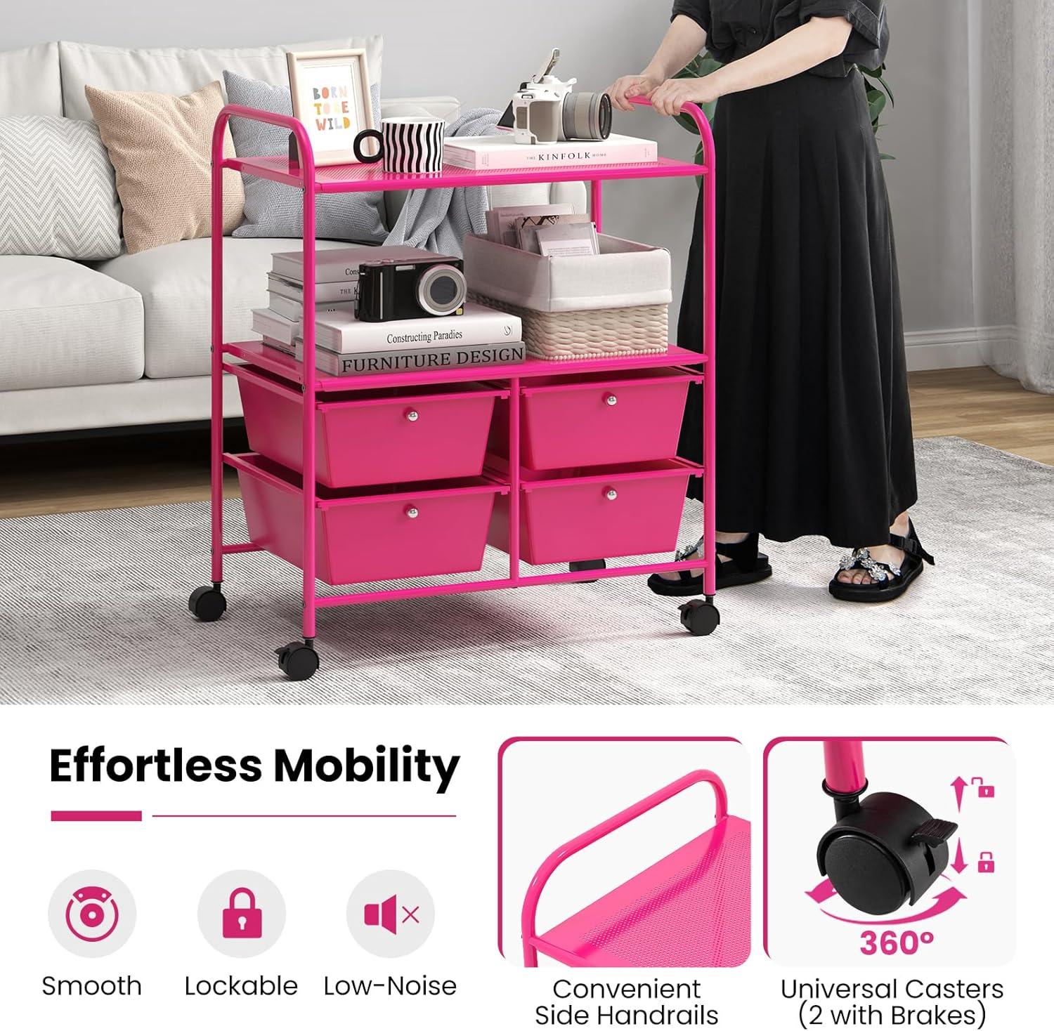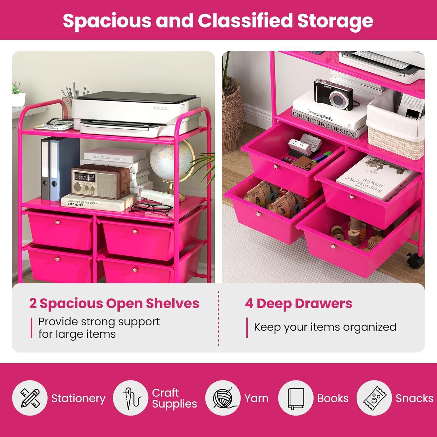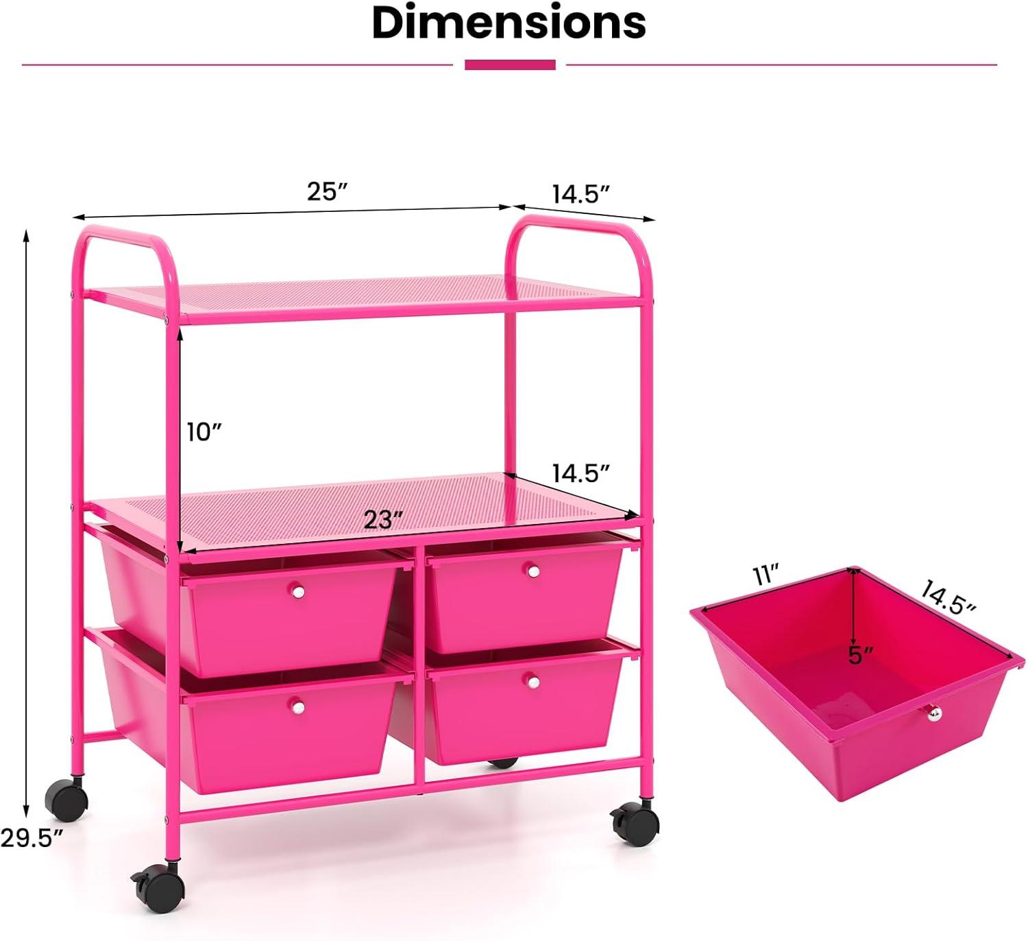 Giantex Rolling Storage Cart w/ 4 Drawers 2 Shelves Metal Rack Shelf Home Office School Beauty Salon Utility Organizer Cart with Wheels (Yellow)(Hot Pink)