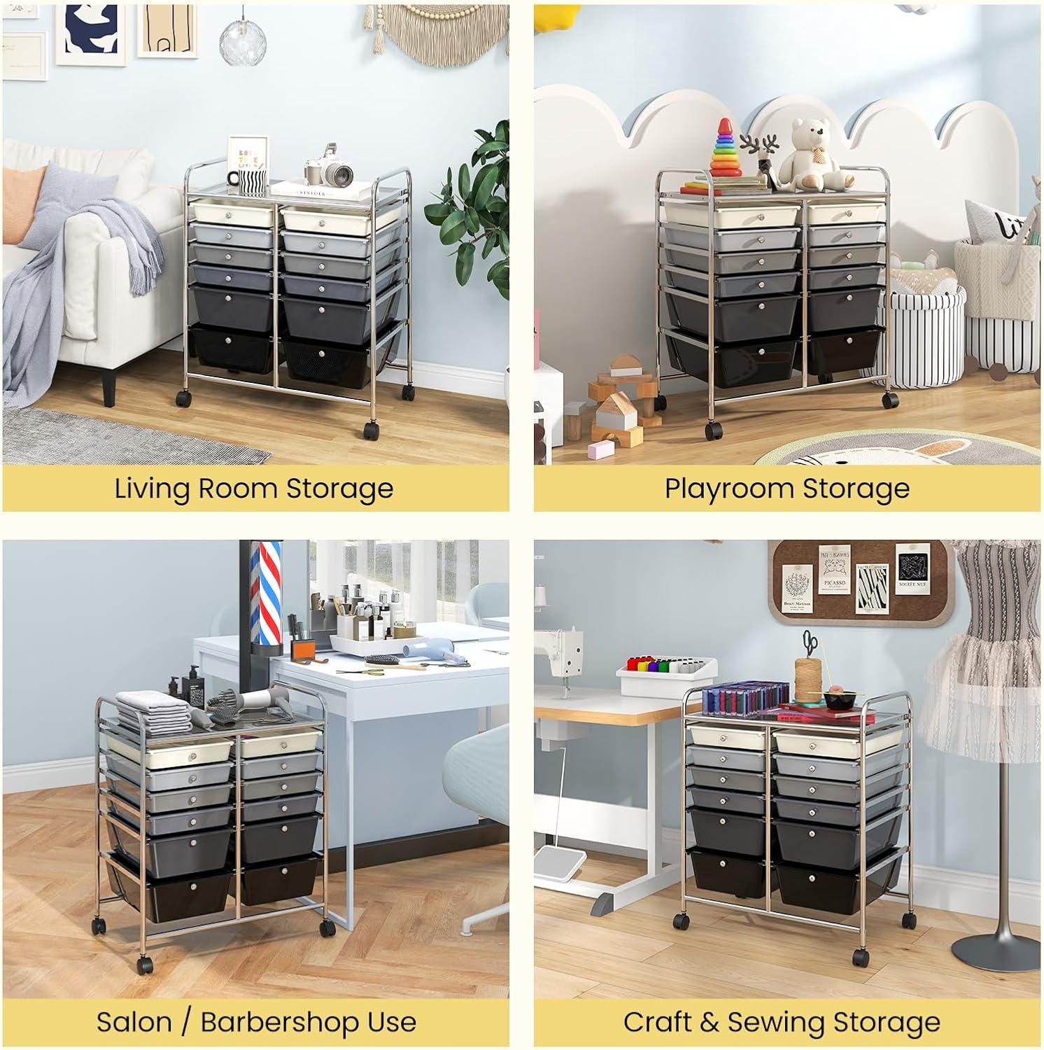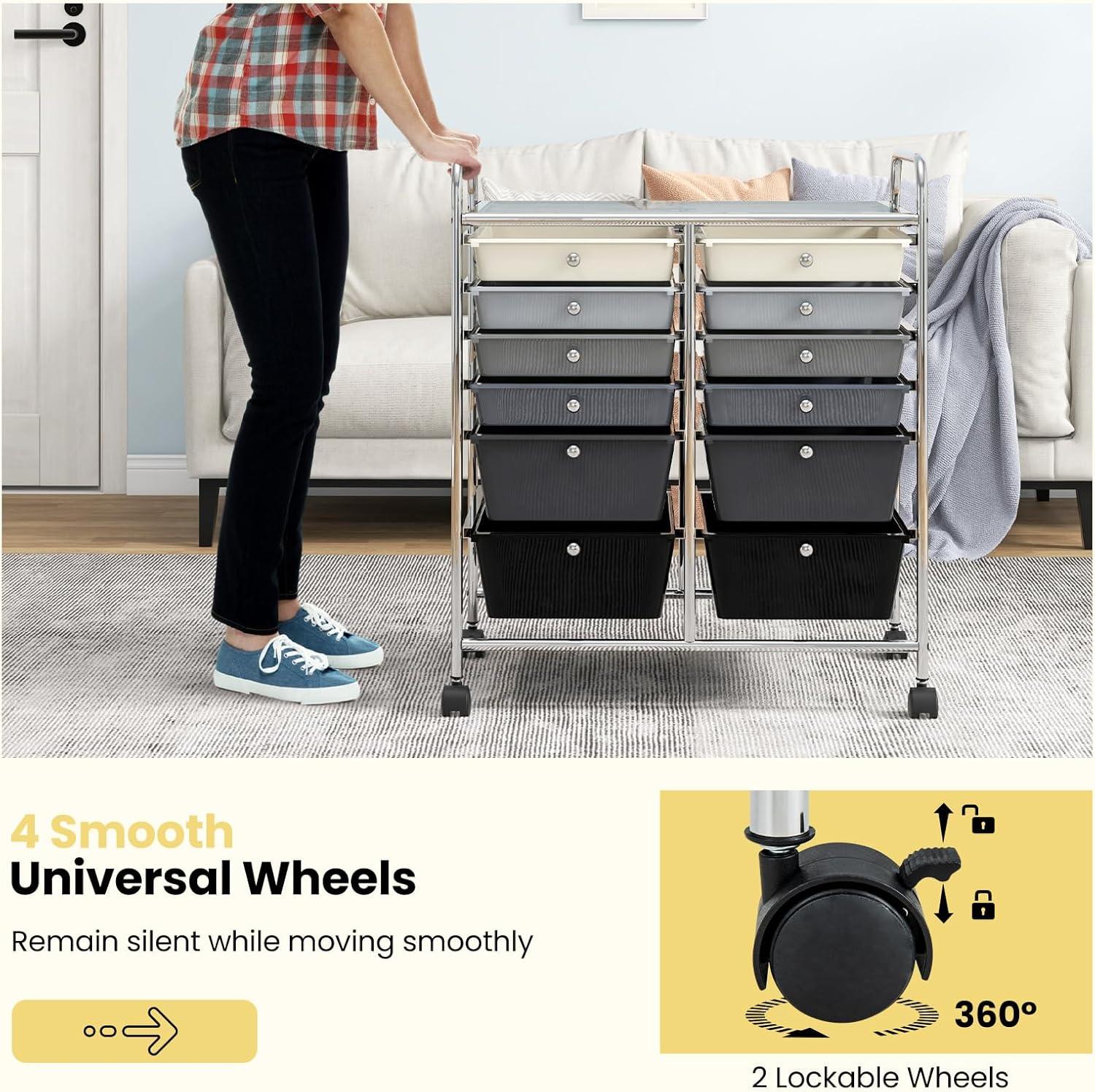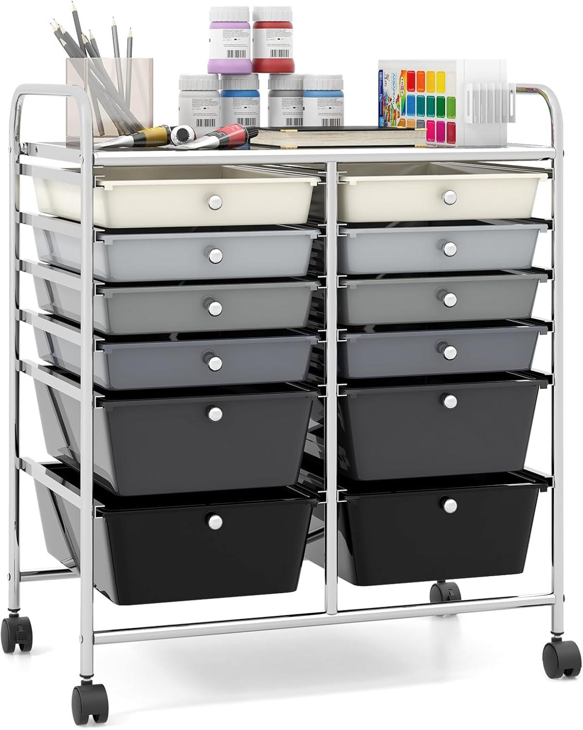 Giantex Rolling Storage Cart with 6 Drawers, Multipurpose Mobile Organizer Cart for Tools Scrapbook Paper Home Office School (Black)(Black Gradient)