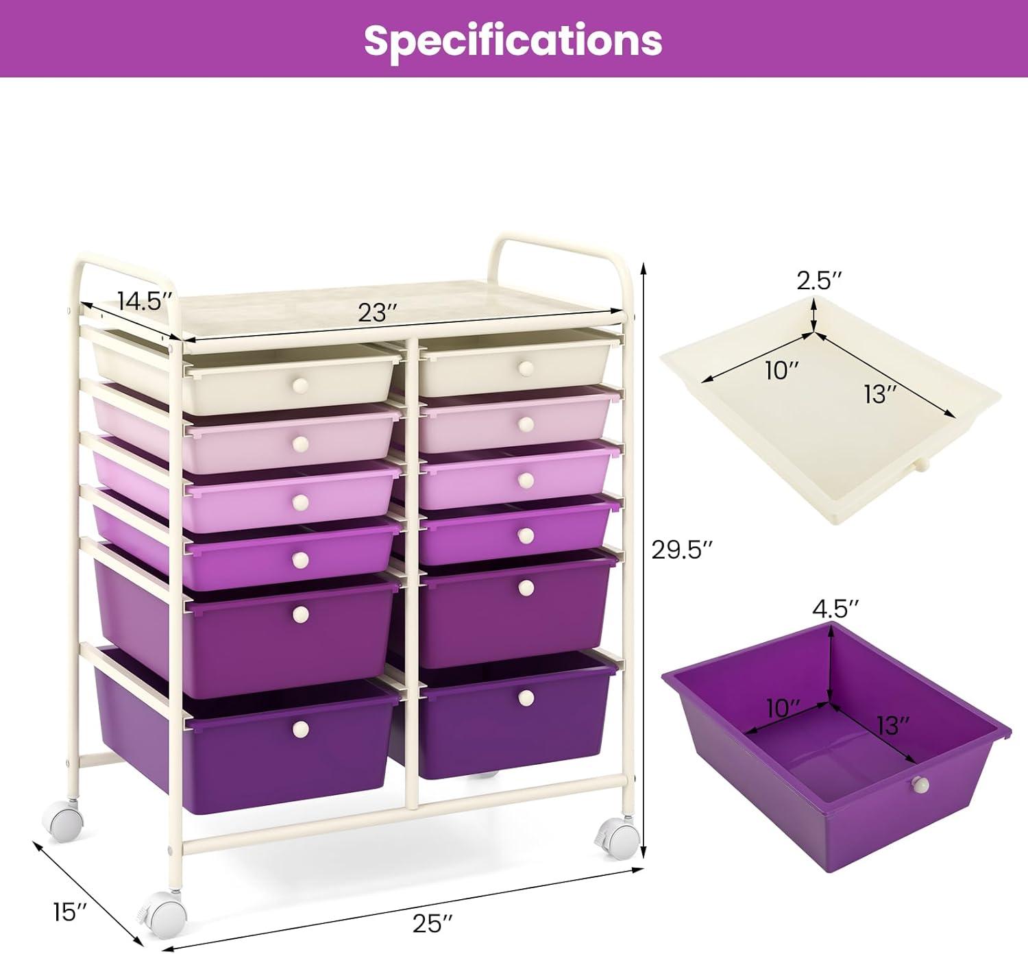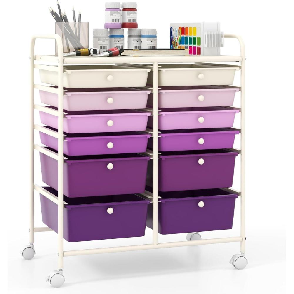Giantex Rolling Storage Cart with 6 Drawers, Multipurpose Mobile Organizer Cart for Tools Scrapbook Paper Home Office School (Black)(Purple Gradient)