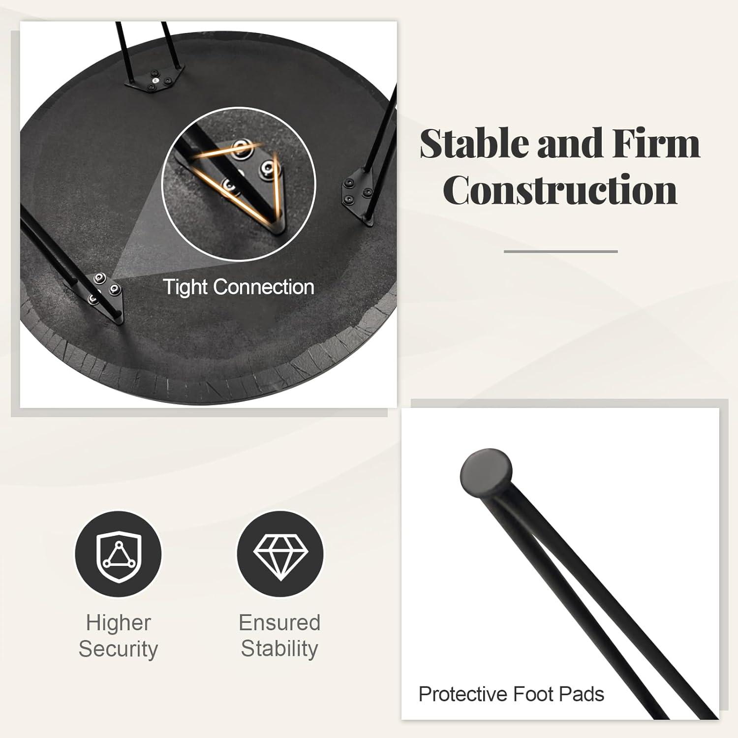 [Stable and Firm Construction]: The heavy-duty metal frame with a black finish is rather premium, sturdy, and rustproof. With the metal pipes forming a high-strength tripod structure, the accent coffee table can support a large bearing capacity.